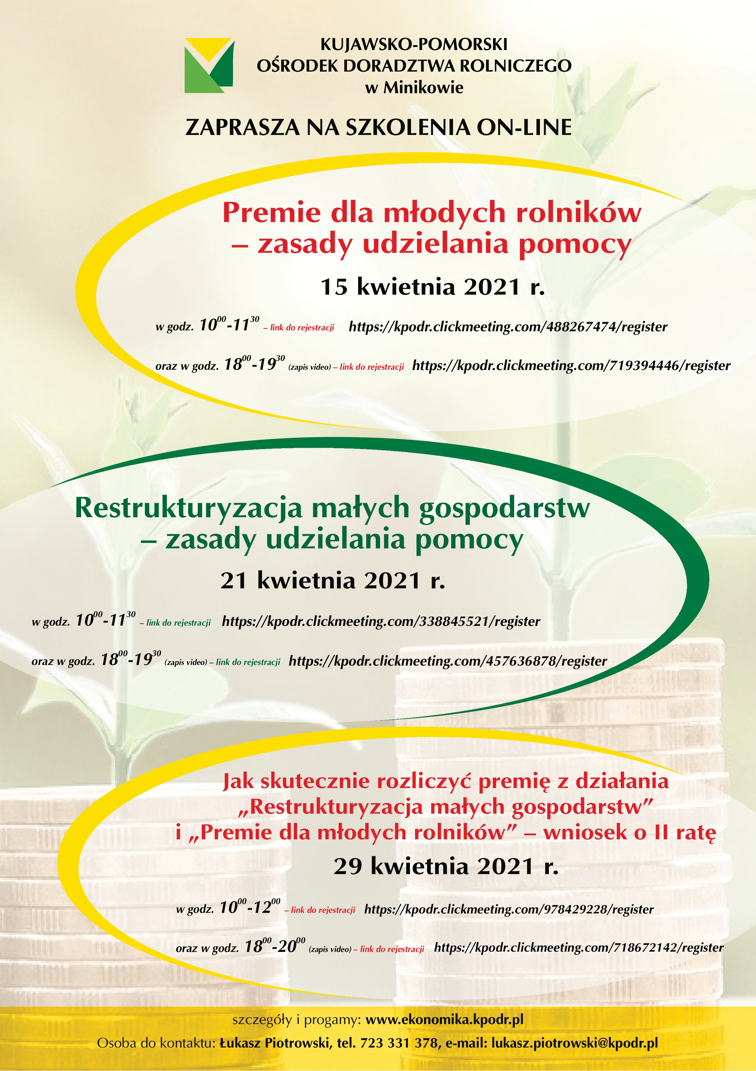 Szkolenia on-line organizowane przez Kujawsko-Pomorski Ośrodek Doradztwa Rolniczego w Minikowie.