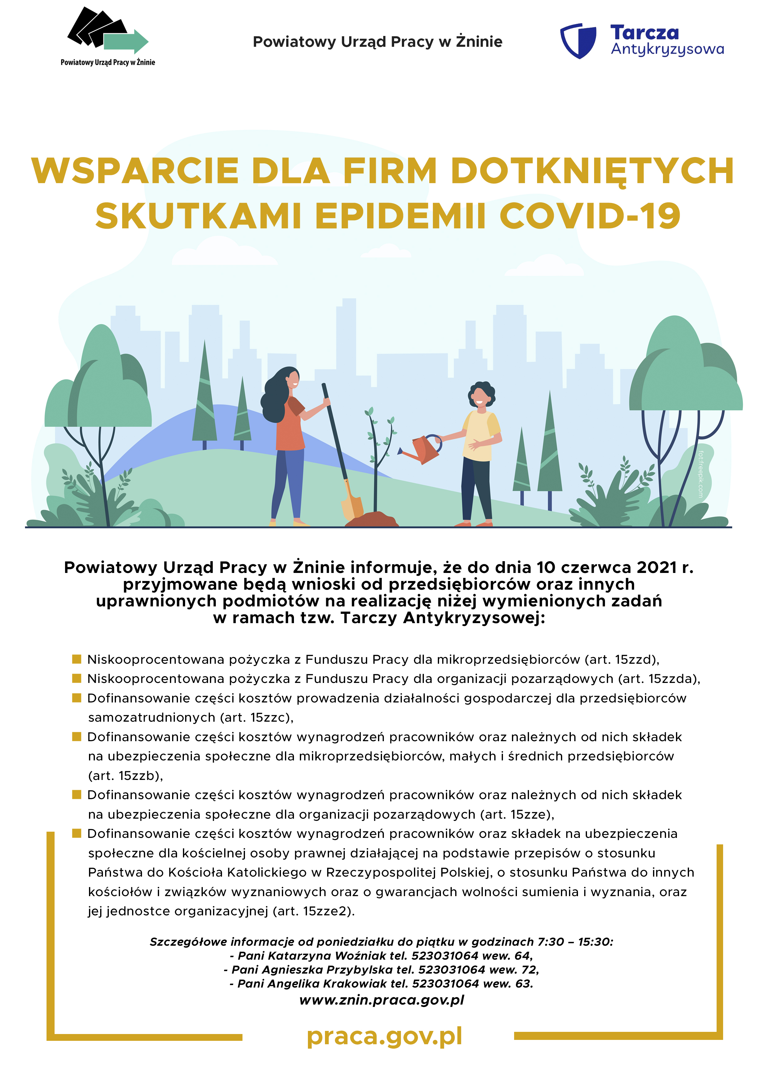 Powiatowy Urząd Pracy w Żninie informuje, że nadal można składać wnioski w ramach: