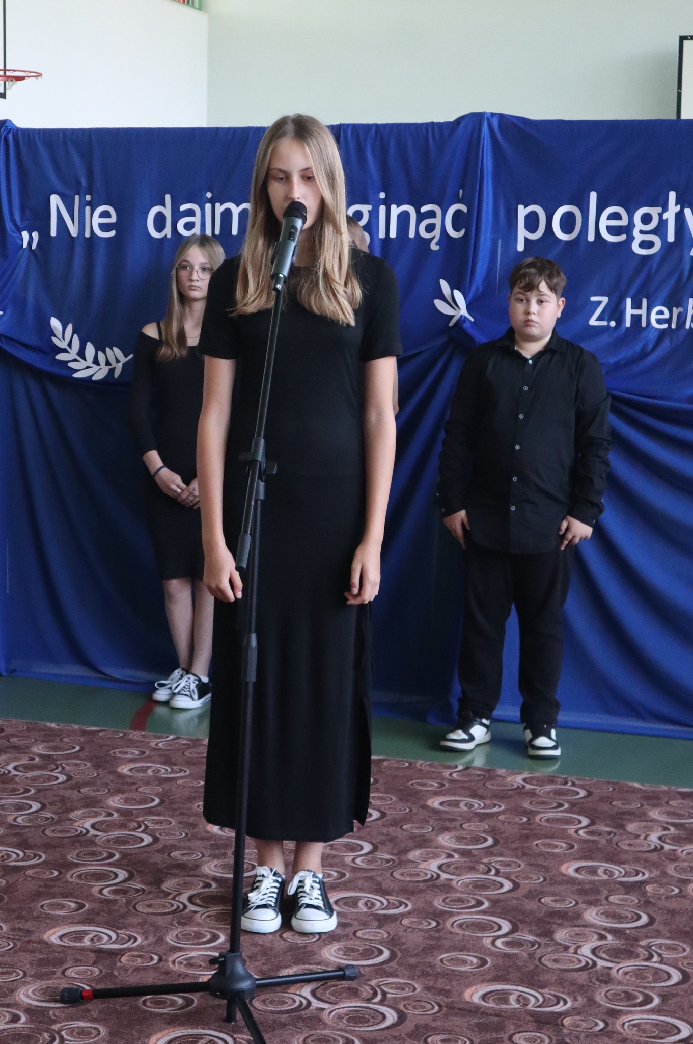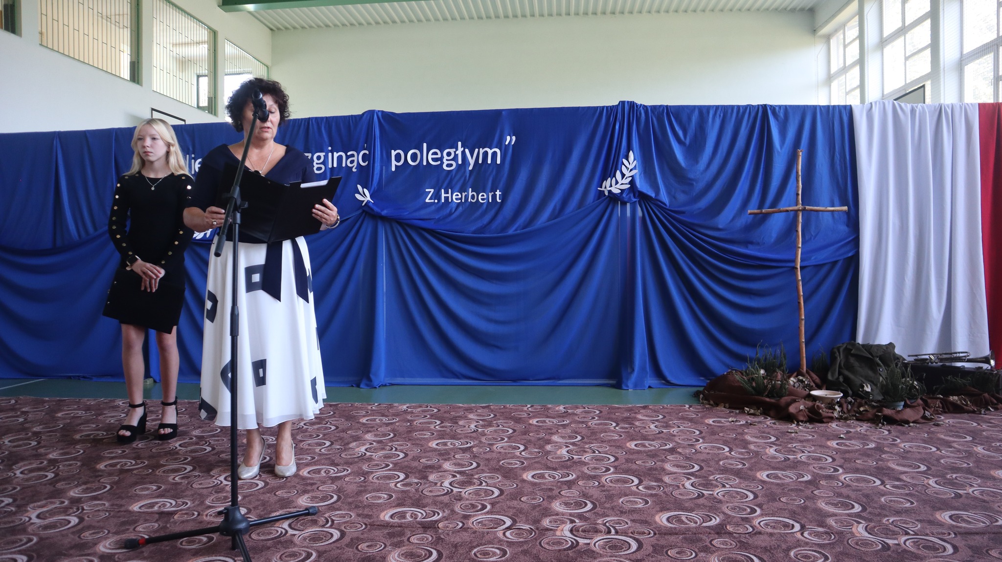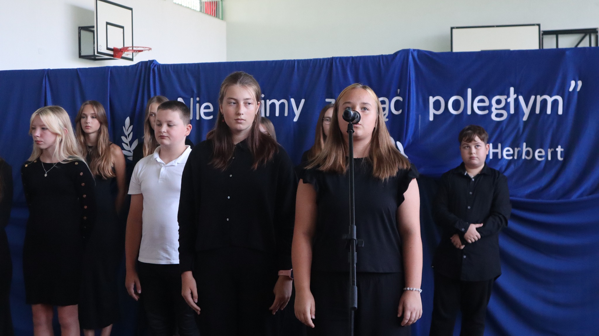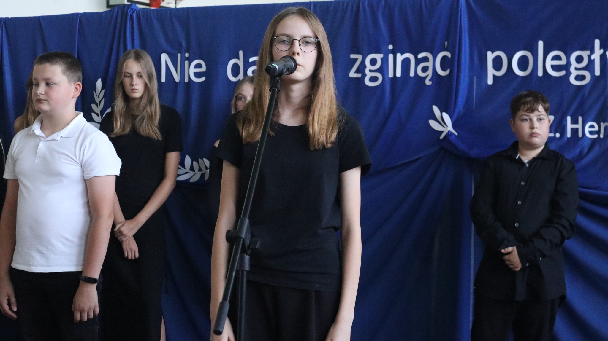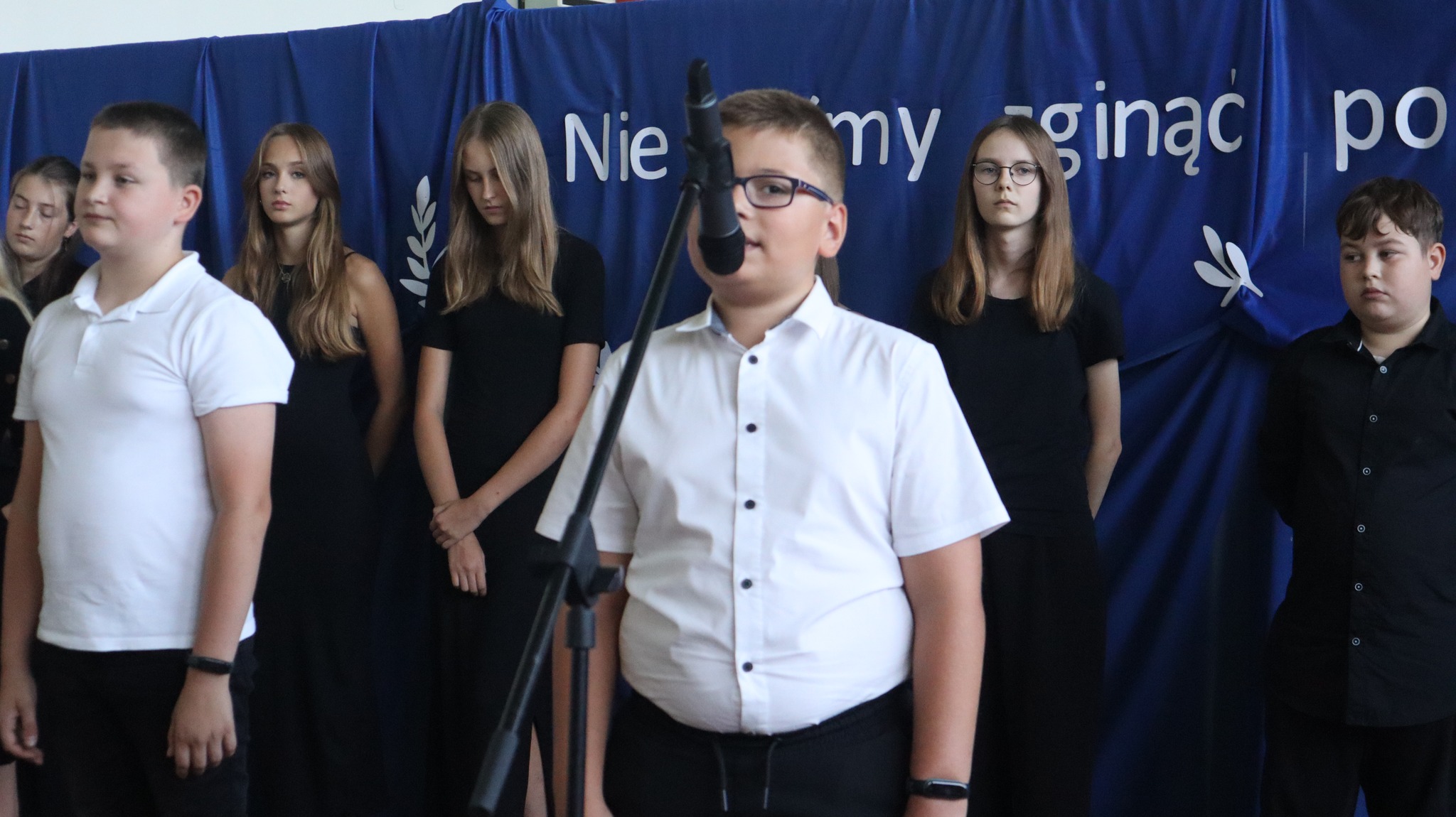 Później uczniowie z klas IV-VIII zaprezentowali program artystyczny przybliżający sylwetkę Kazimierza Mazurczaka, ostatnie godziny życia bohatera samotnie broniącego Niemcom dostępu do Jasła oraz wartości, jakimi kierował się w swoim postępowaniu ten niespełna dwudziestoczteroletni patriota. W wystąpieniu młodzi artyści podkreślili także potrzebę i konieczność pielęgnowania pamięci o ludziach takich jak Kazimierz Mazurczak, powtarzając za Zbigniewem Herbertem słowa: „𝙉𝙞𝙚 𝙙𝙖𝙟𝙢𝙮 𝙯𝙜𝙞𝙣𝙖̨𝙘́ 𝙥𝙤𝙡𝙚𝙜ł𝙮𝙢…”. Po apelu delegacje udały się na pobliski cmentarz, gdzie na grobie dzielnego żołnierza złożyły kwiaty i zapaliły znicze.