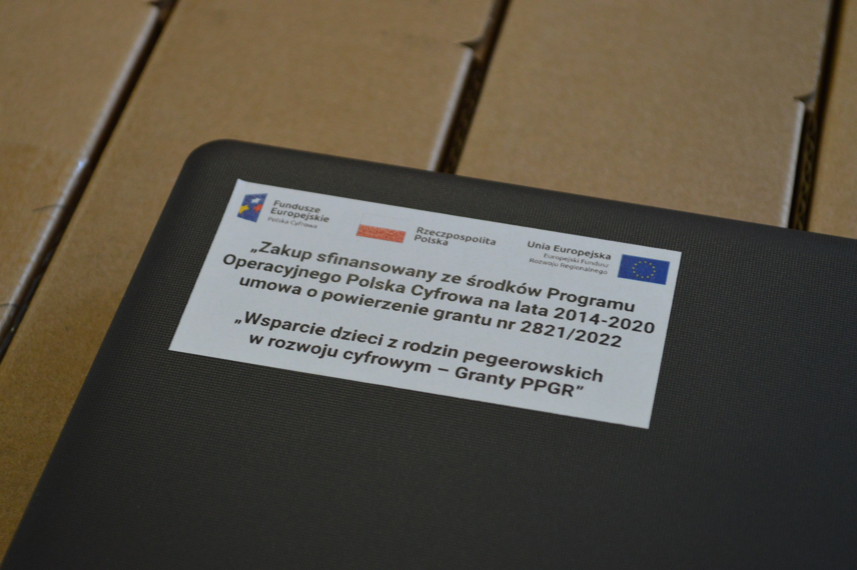Celem przedsięwzięcia jest wyeliminowanie ograniczeń w dostępności cyfrowej dla uczniów z terenów popegeerowskich. Zakup zrealizowany został w ramach Projektu „Cyfrowa Gmina – Wsparcie dzieci z rodzin pegeerowskich w rozwoju cyfrowym – „Granty PPGR” realizowanego w ramach Programu Operacyjnego Polska Cyfrowa na lata 2014-2020 Oś Priorytetowa V: Rozwój cyfrowy JST oraz wzmocnienie cyfrowej odporności na zagrożenia REACT-EU.