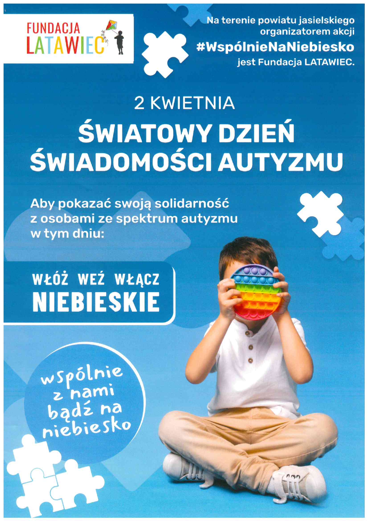 Kwiecień jest miesiącem, w którym ze szczególnym naciskiem akcentuje się problemy osób dotkniętych autyzmem oraz ich rodzin. Gmina Jasło we współpracy z Fundacją „LATAWIEC” włączyła się w działania popularyzujące wiedzę i akceptację dla osób z autyzmem.
