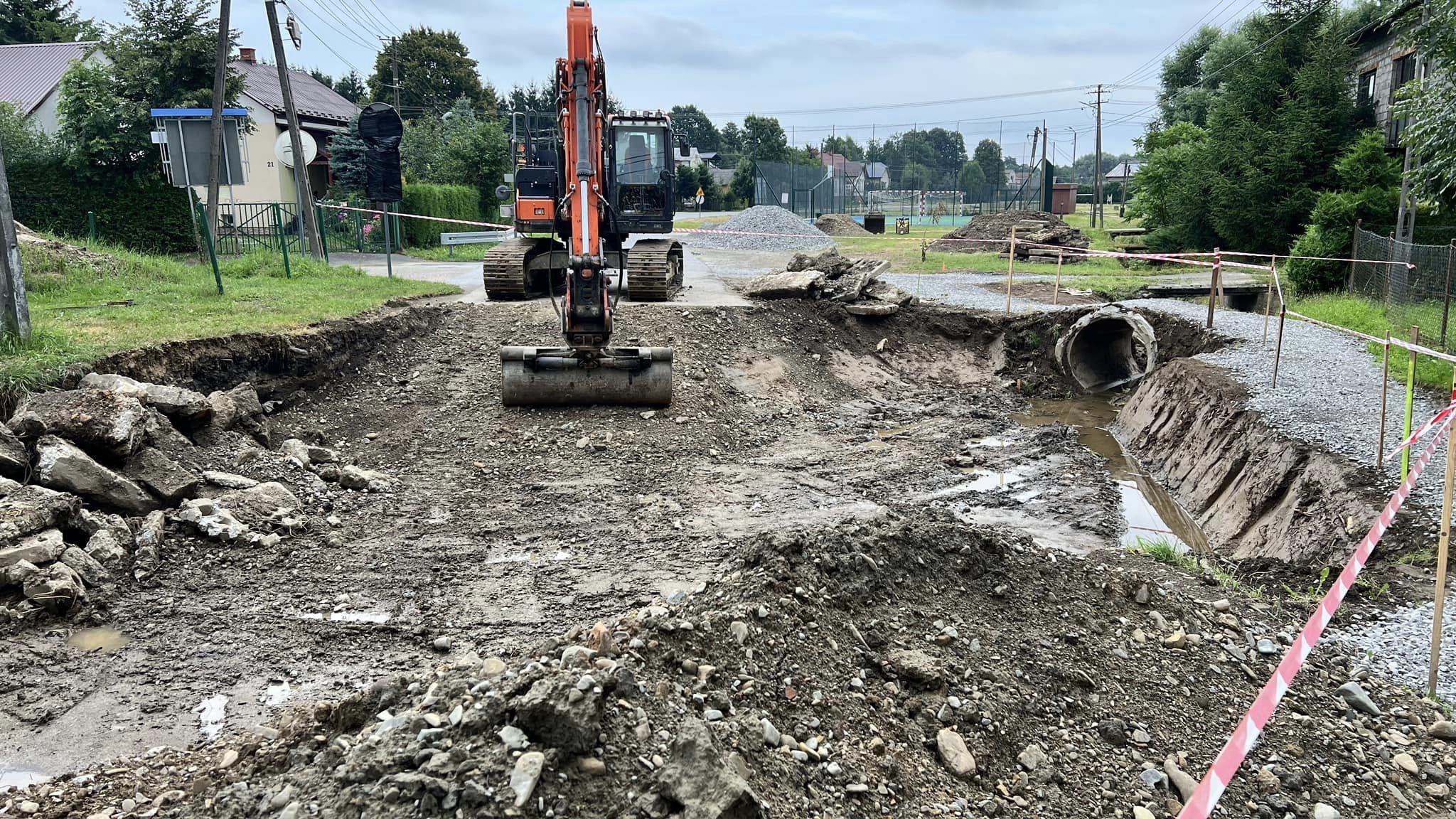 Budowa mostu na potoku Szebnianka w Chrząstówce