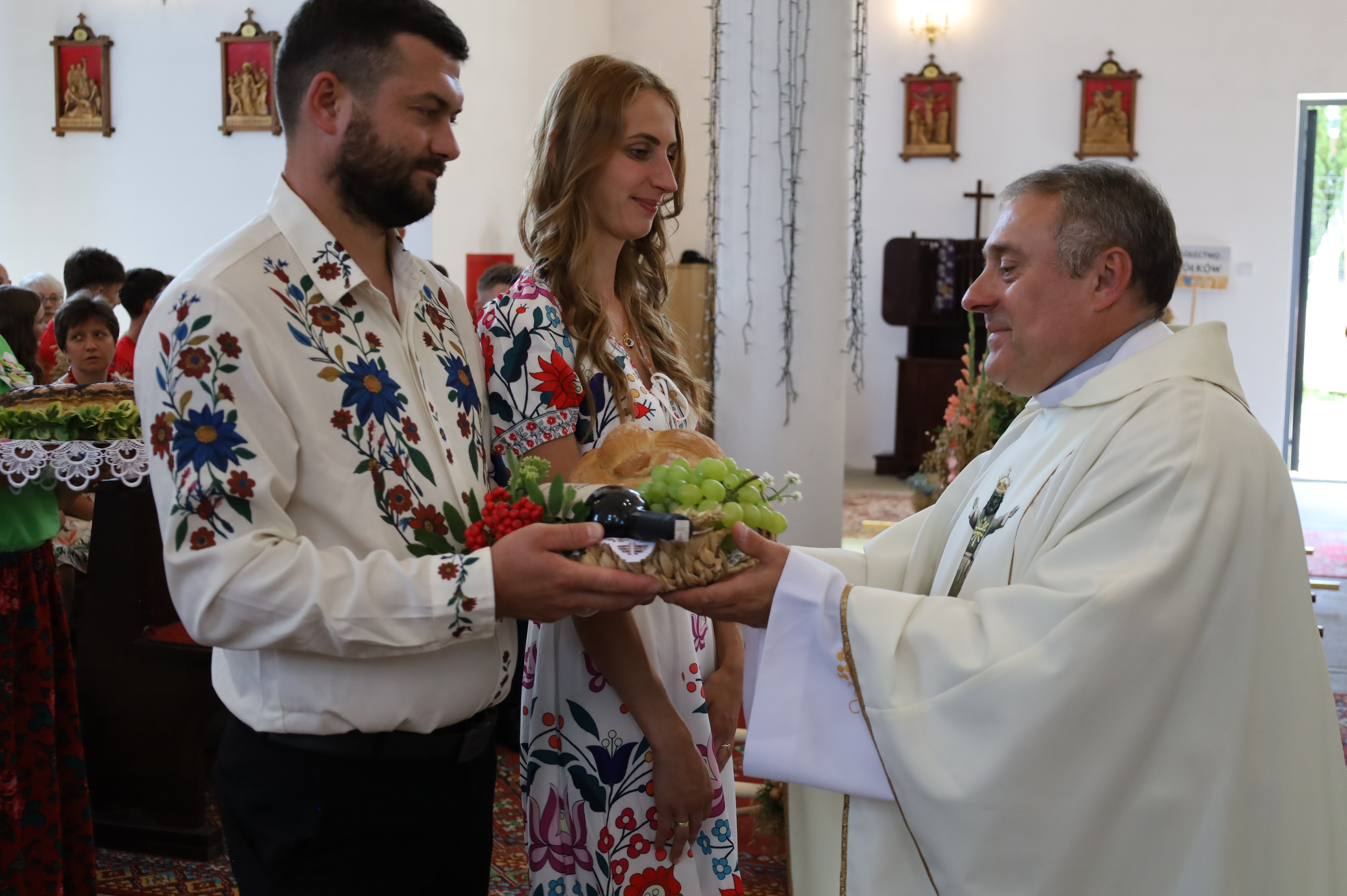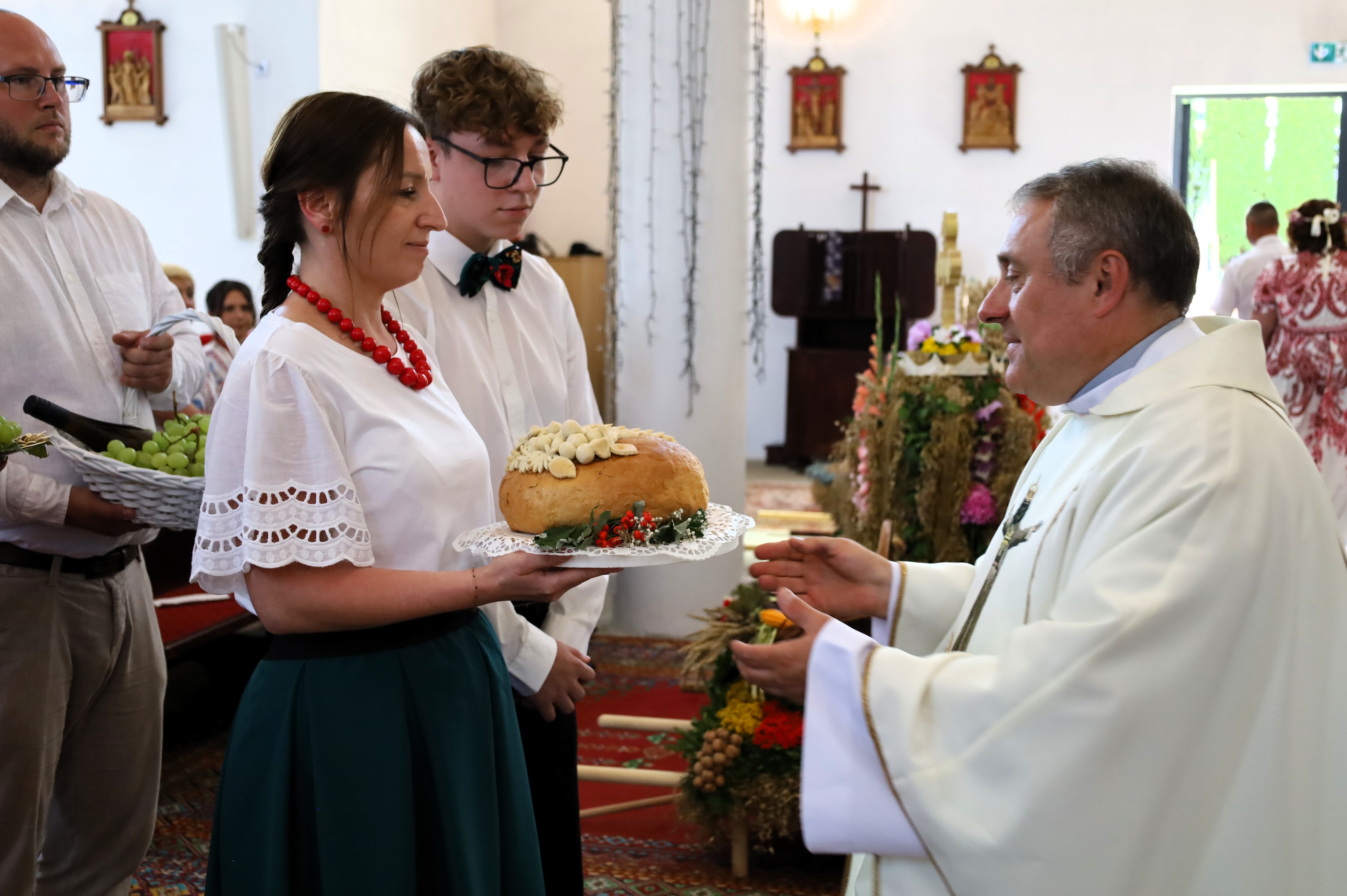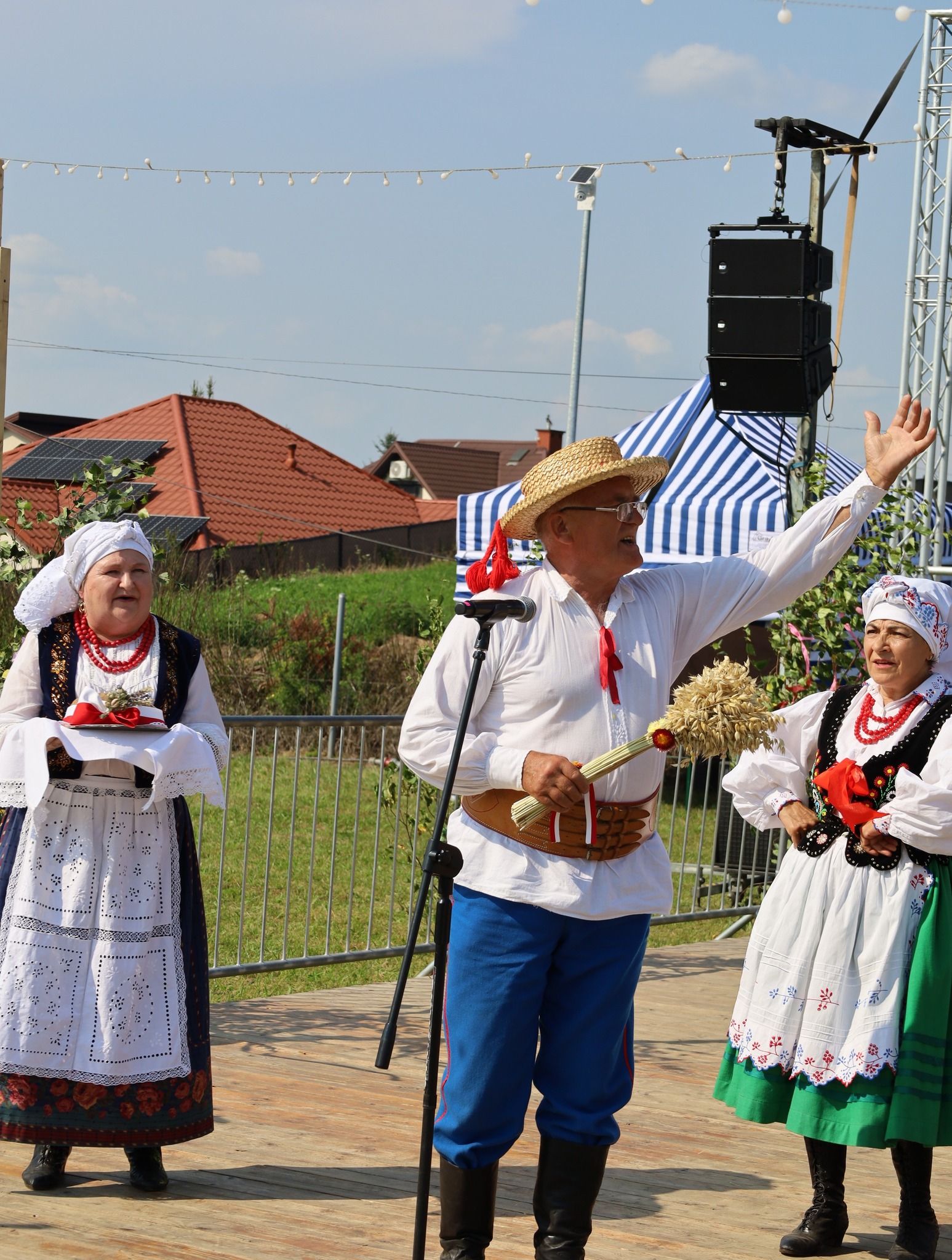 Obrzędy dożynkowe oraz prezentację wieńców poprowadziła Kapela Ludowa Trzcinicoki.