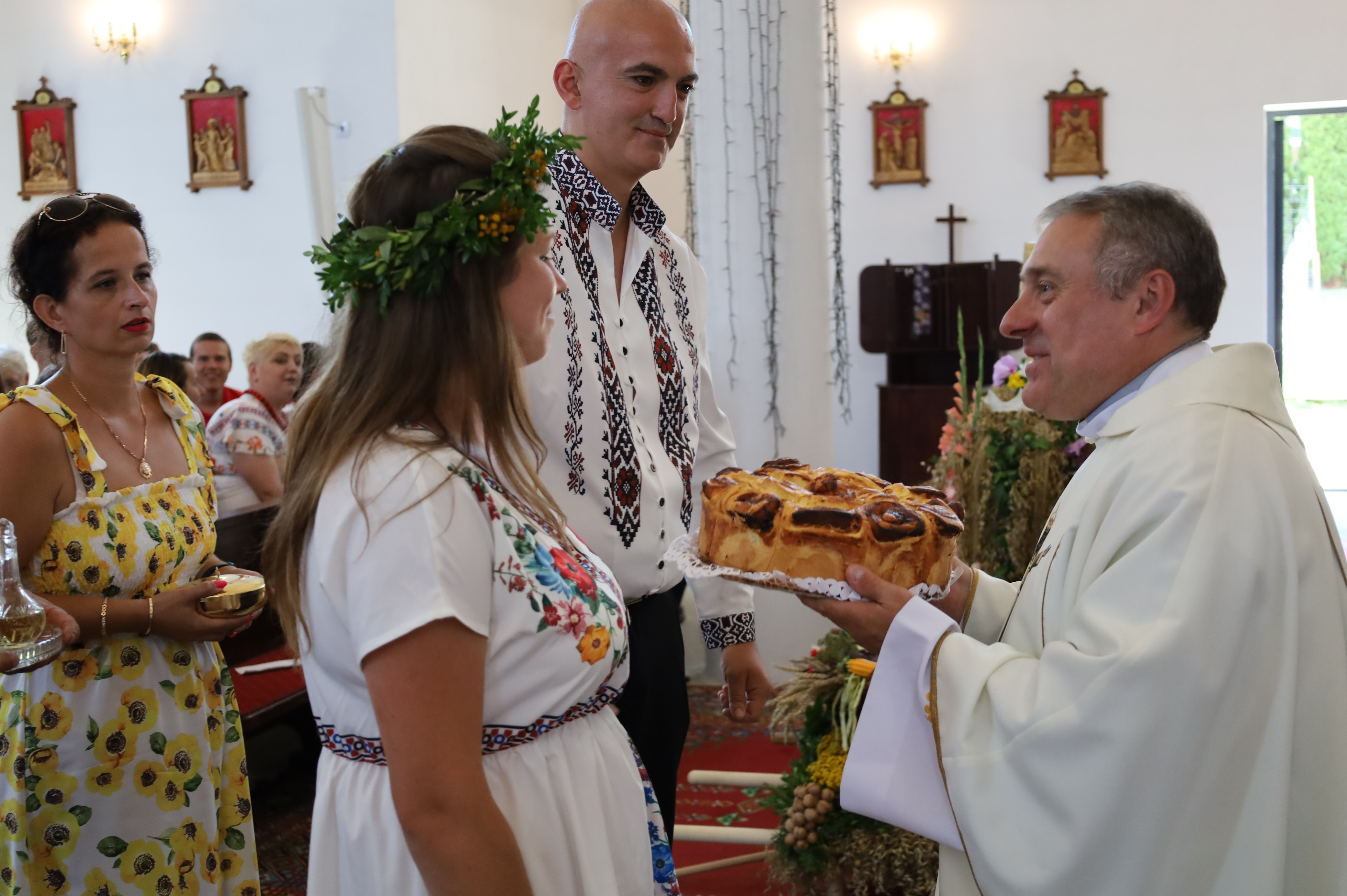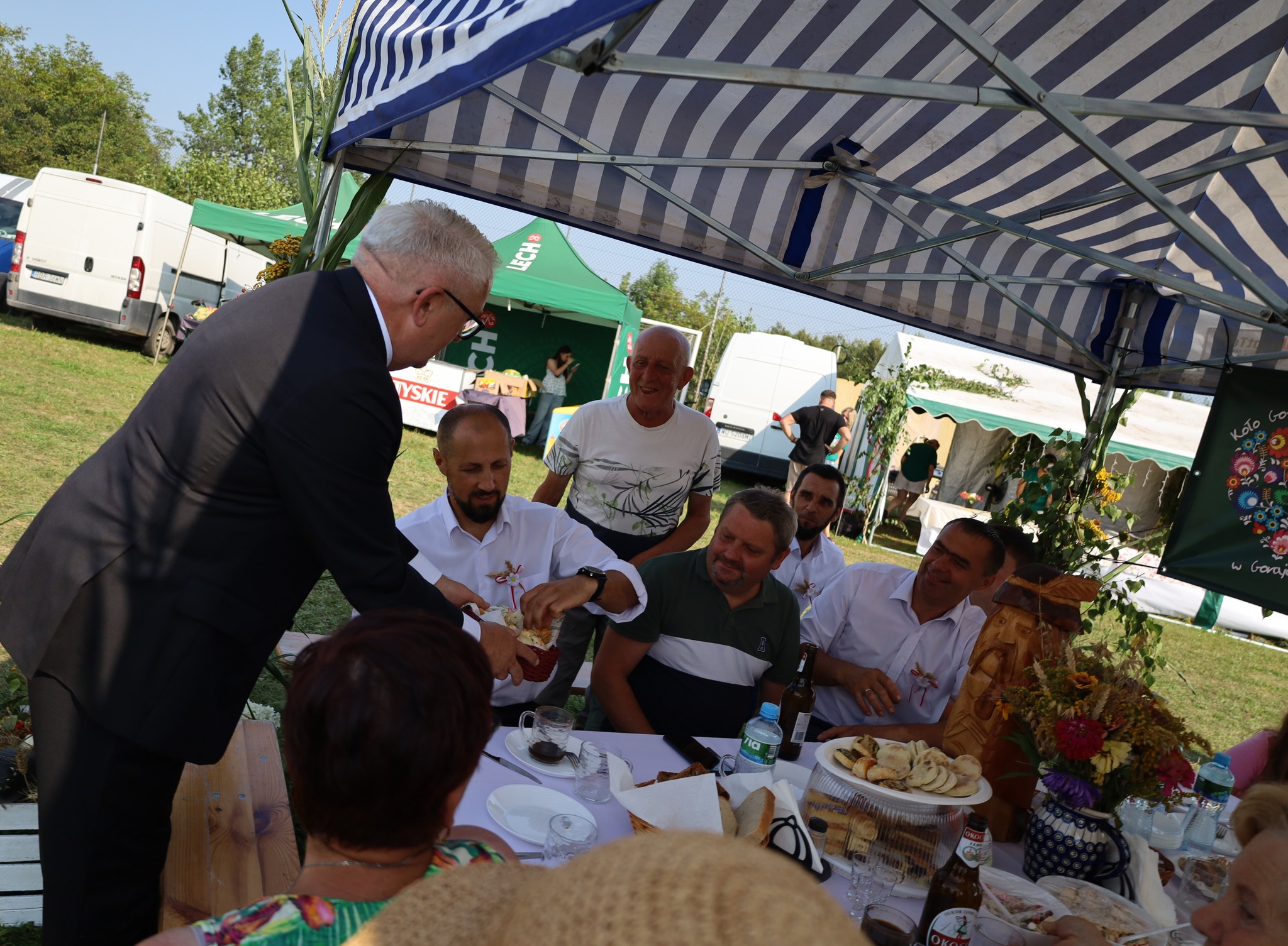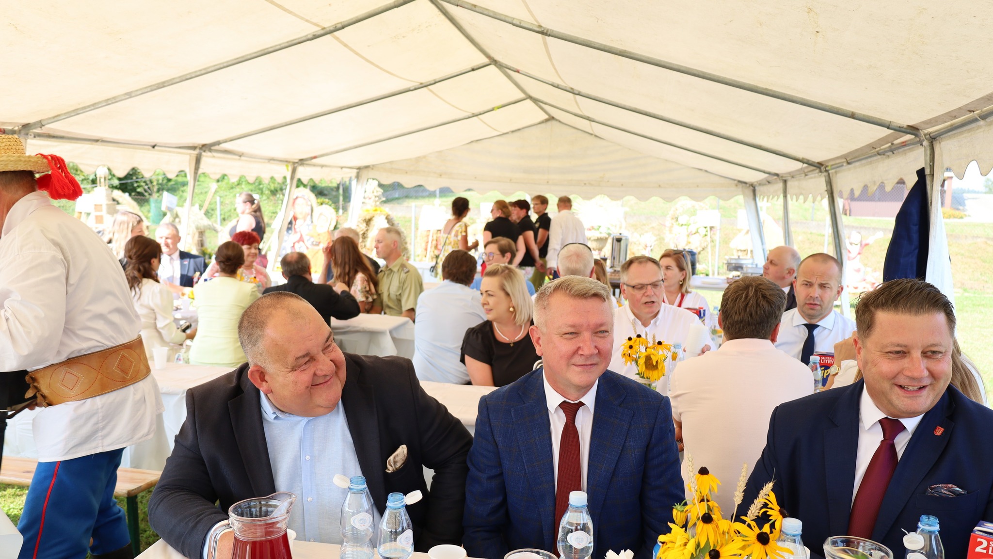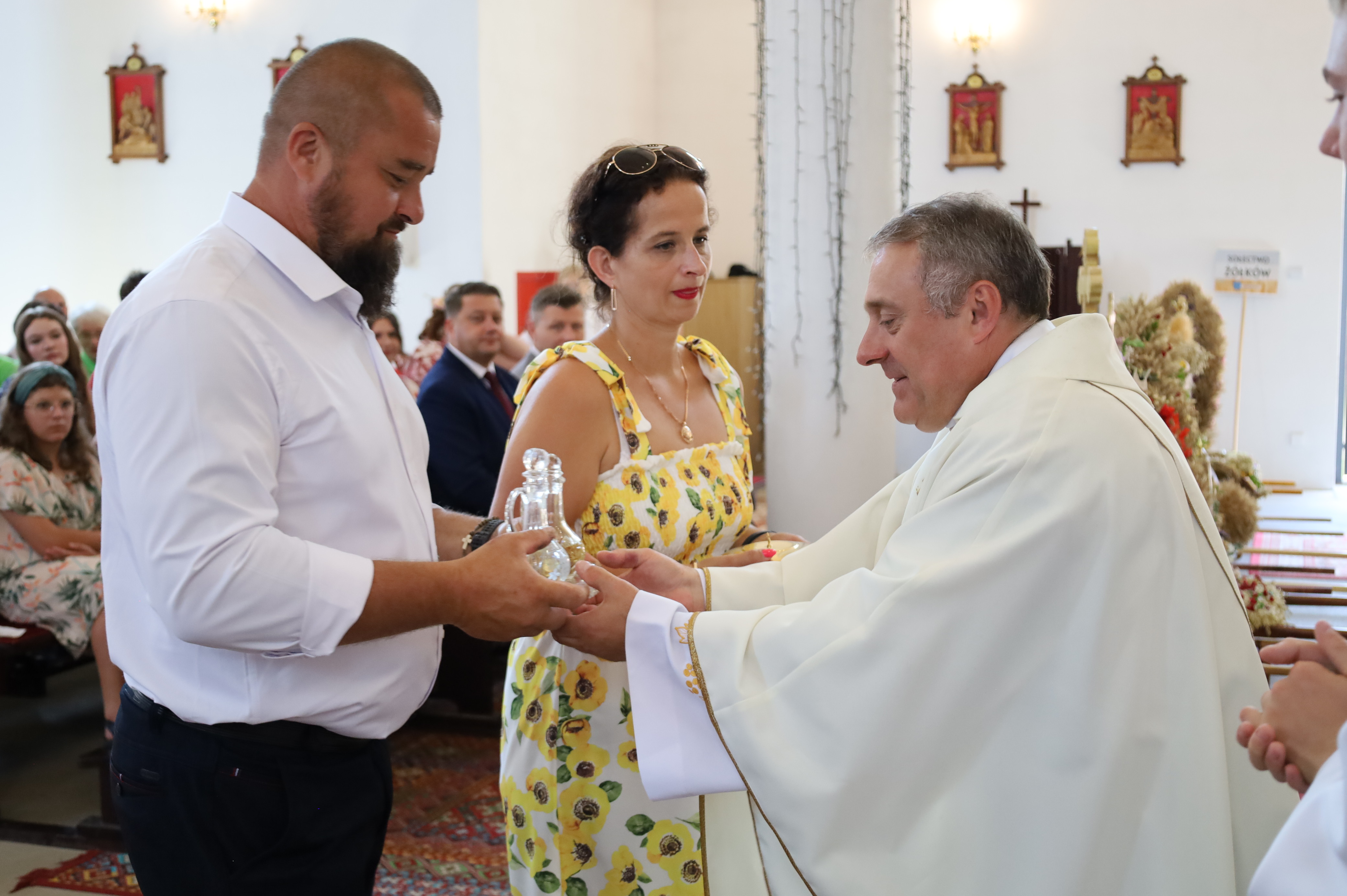 Obrzędy dożynkowe oraz prezentację wieńców poprowadziła Kapela Ludowa Trzcinicoki.