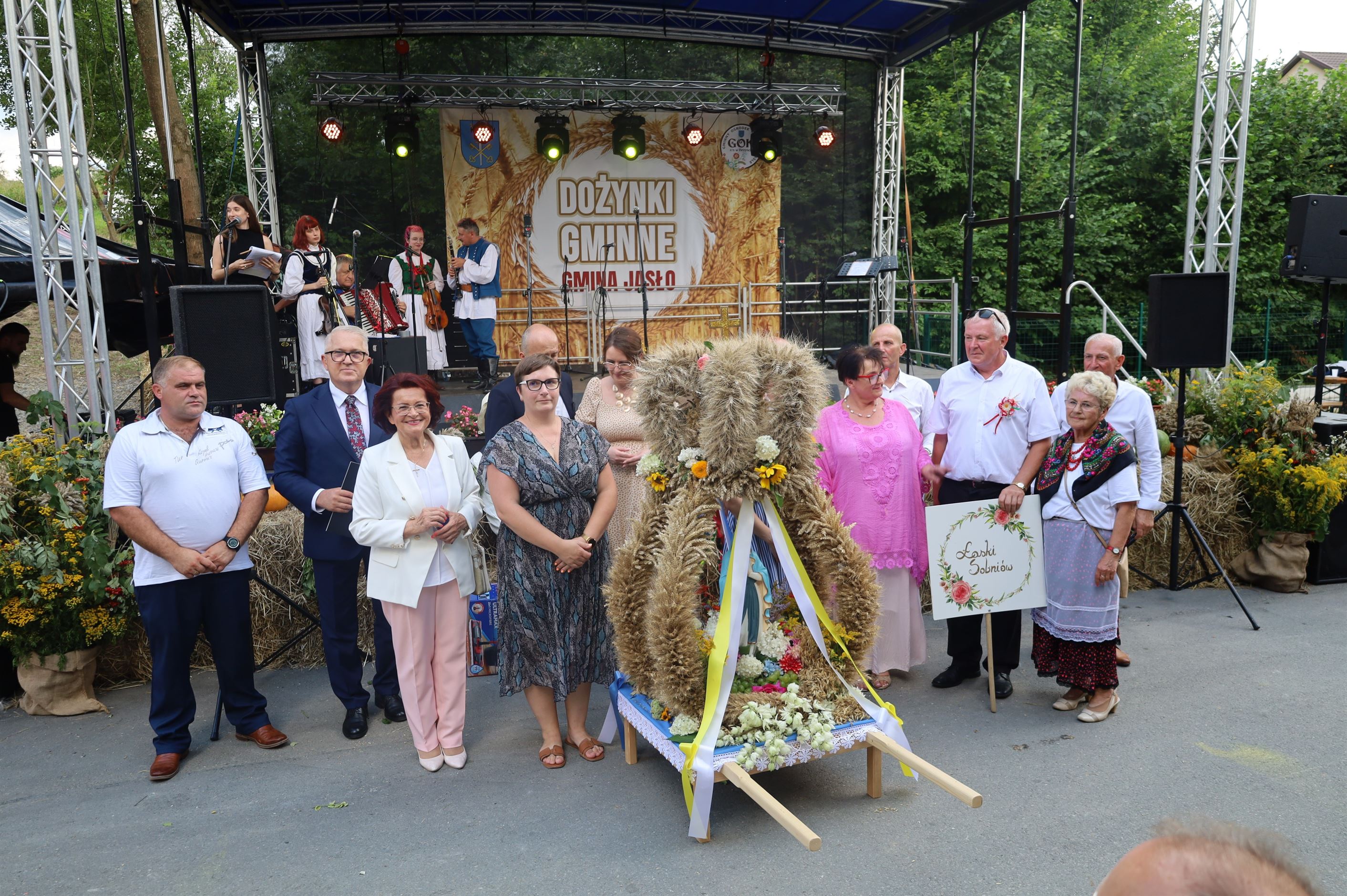 Dożynki Gminne odbyły się 19 sierpnia w Łaskach. Rolników, ogrodników i sadowników gościło sołectwo Łaski na czele ze starostami dożynkowymi państwem Małgorzatą i Jakubem Kuchtami. Rozpoczęły się Mszą św. w kościele pw. Dobrego Pasterza w Jaśle - Sobniowie, której przewodniczył ks. dr Marian Putyra w koncelebrze ks. proboszcza Łukasza Hendzla oraz ks. prałata Wacława Rybki. Barwny korowód dożynkowy wraz z Kapelą Trzcinicoki udał się na plac dożynkowy obok Domu Ludowego w Łaskach. Podczas dożynek zaprezentowało się 16 delegacji wieńcowych niemal ze wszystkich sołectw gminy Jasło. Z wieńcami obecni byli m.in.: podopieczni z Dziennego Domu Pomocy Społecznej w Osobnicy, uczestnicy Klubu Seniora Gminy Jasło, panie z Koła Gospodyń „Sobniowianki” oraz grupa dzieci z Szebni, strażacy OSP, panie z kół gospodyń wiejskich, sołtysi i członkowie rad sołeckich.