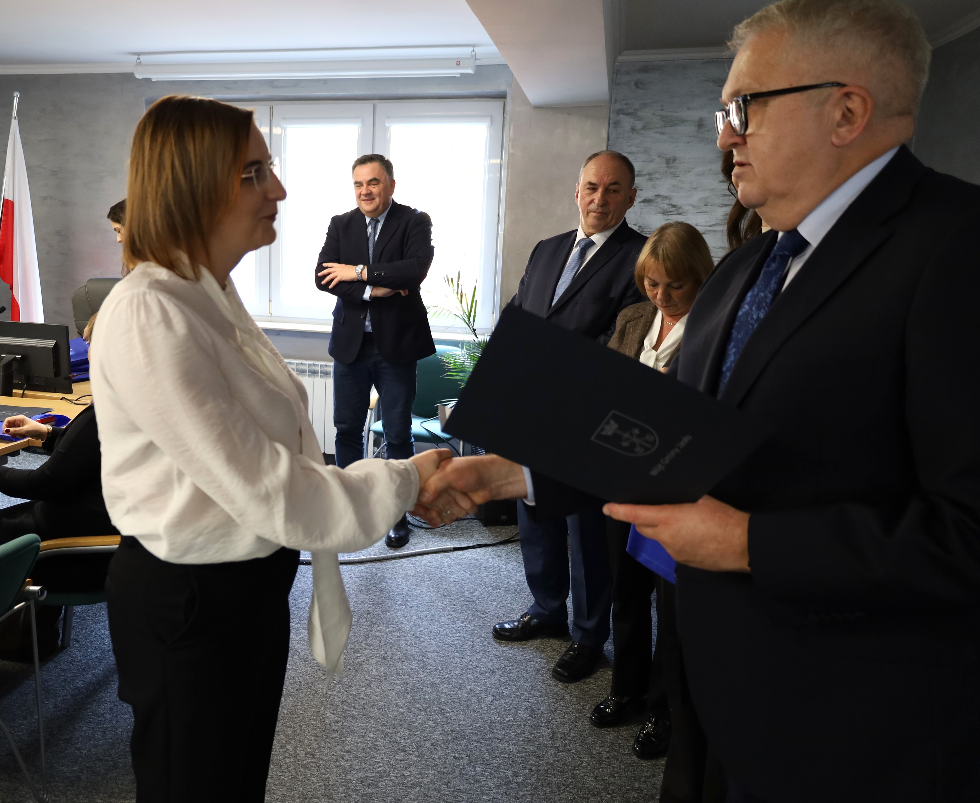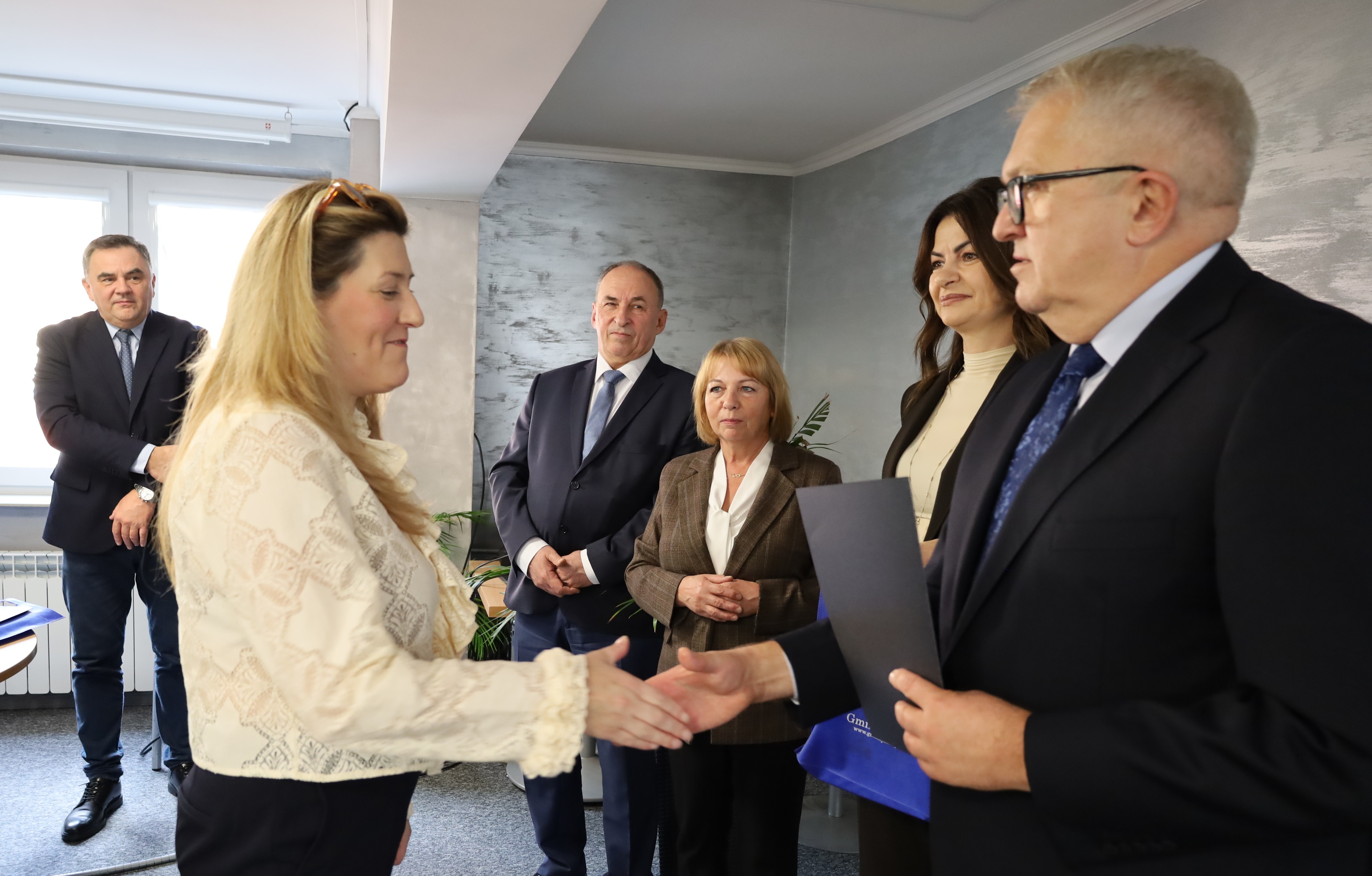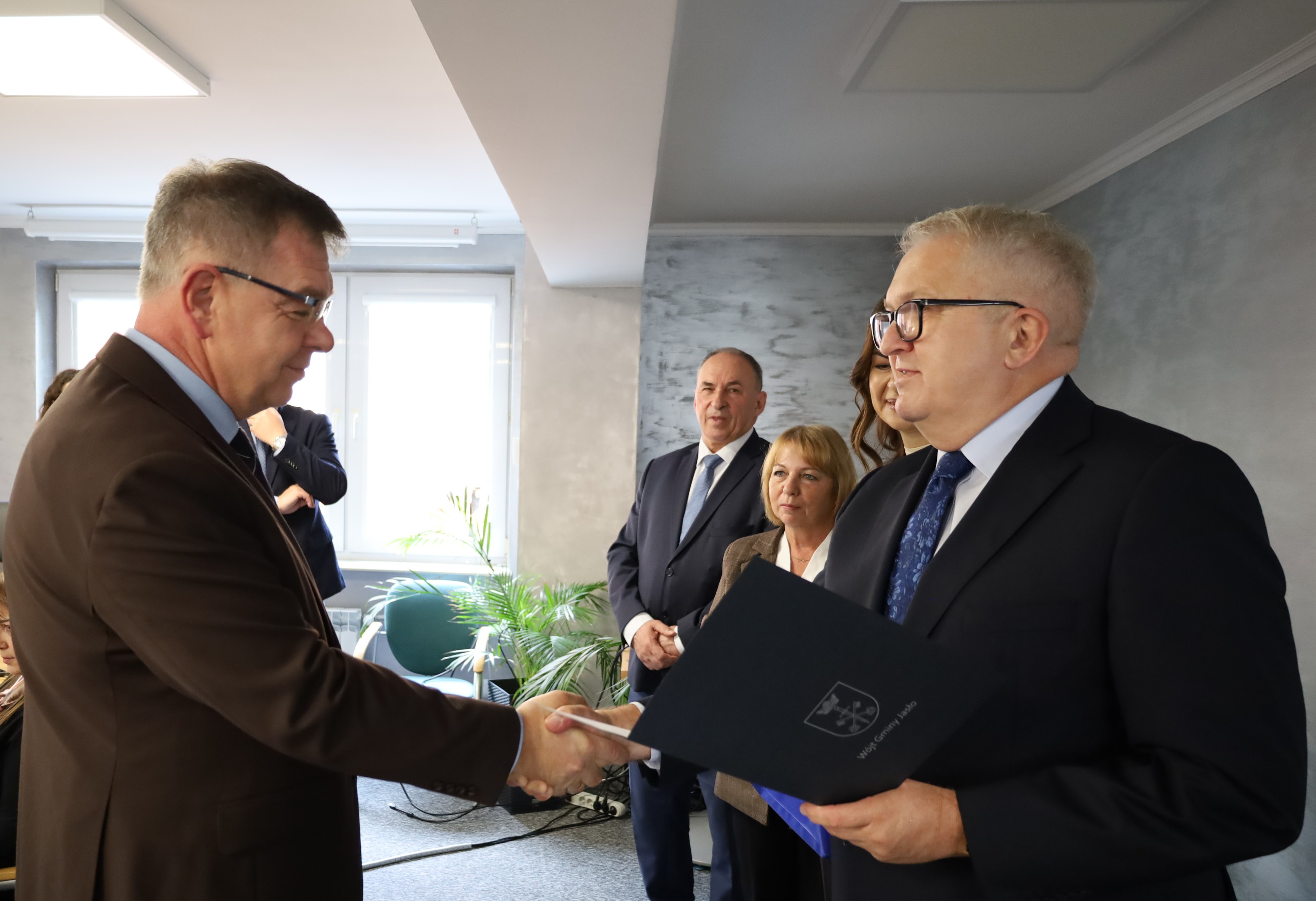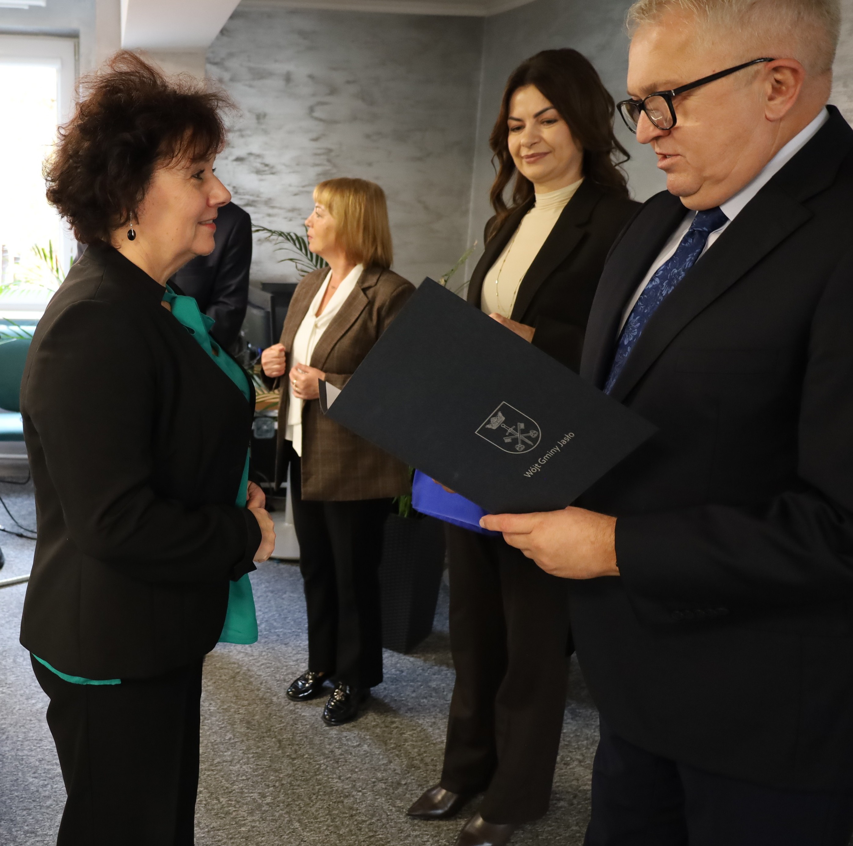 Dyrektorzy ze szkół podstawowych prowadzonych przez Gminę Jasło uczestniczyli w uroczystości z okazji Dnia Edukacji Narodowej, która miała miejsce 13 października 2025 roku w Urzędzie Gminy Jasło.