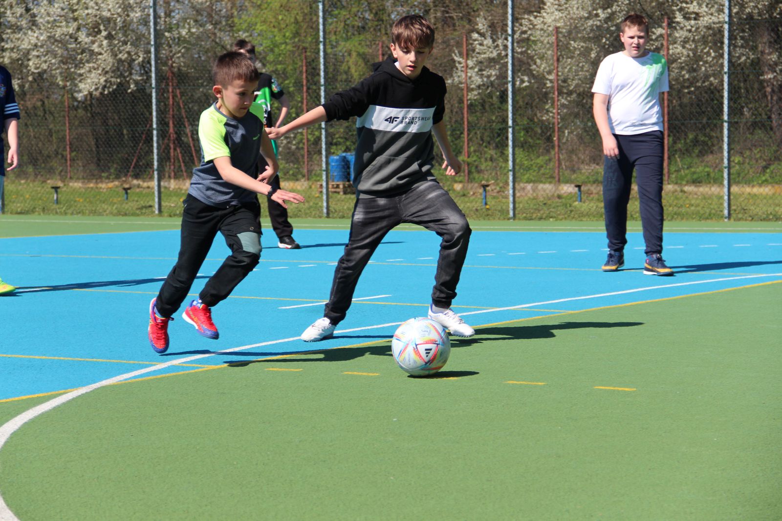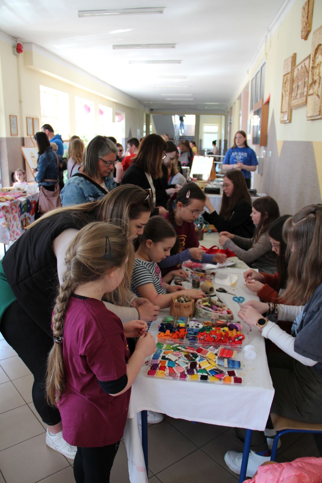 Grono Pedagogiczne Szkoły Podstawowej w Warzycach zaplanowało na „dzień otwarty” wiele atrakcji, które miały pokazać, że w naszej placówce dużo się dzieje. Zabawa rozpoczęła się o godzinie 10.00 od szukania słodyczy, które zostały schowane na placu zabaw, w ogródku i na boisku sportowym. Na najlepszych poszukiwaczy czekały nagrody. W ramach obchodów Światowego Dnia Ziemi uczniowie, wspólnie z nauczycielami, posadzili drzewka owocowe - jabłonie, grusze, śliwy, wiśnie i brzoskwinie. Założony został mały, szkolny sad. W donicach posadzono kolorowe kwiaty i trawy, które będą zdobiły wejście do szkoły. W holu, uczennice klasy 8, przygotowały kilka stoisk. Przy stoliku kreatywnym można było samodzielnie wykonać biżuterię oraz poznać tajniki szydełkowania. W kąciku relaksacyjnym każdy mógł znaleźć chwilę wytchnienia. Przy stoliku kulinarnym stała długa kolejka po pyszne gofry. Rodzice naszych zuchów z Gromady „Jagódki” serwowali wyborne ciasta. Było też stanowisko, przy którym można było wykonać tatuaż. Na sali gimnastycznej został ustawiony dmuchaniec, a na boisku sportowym odbywały się różne rozgrywki. Atrakcji było co niemiara.