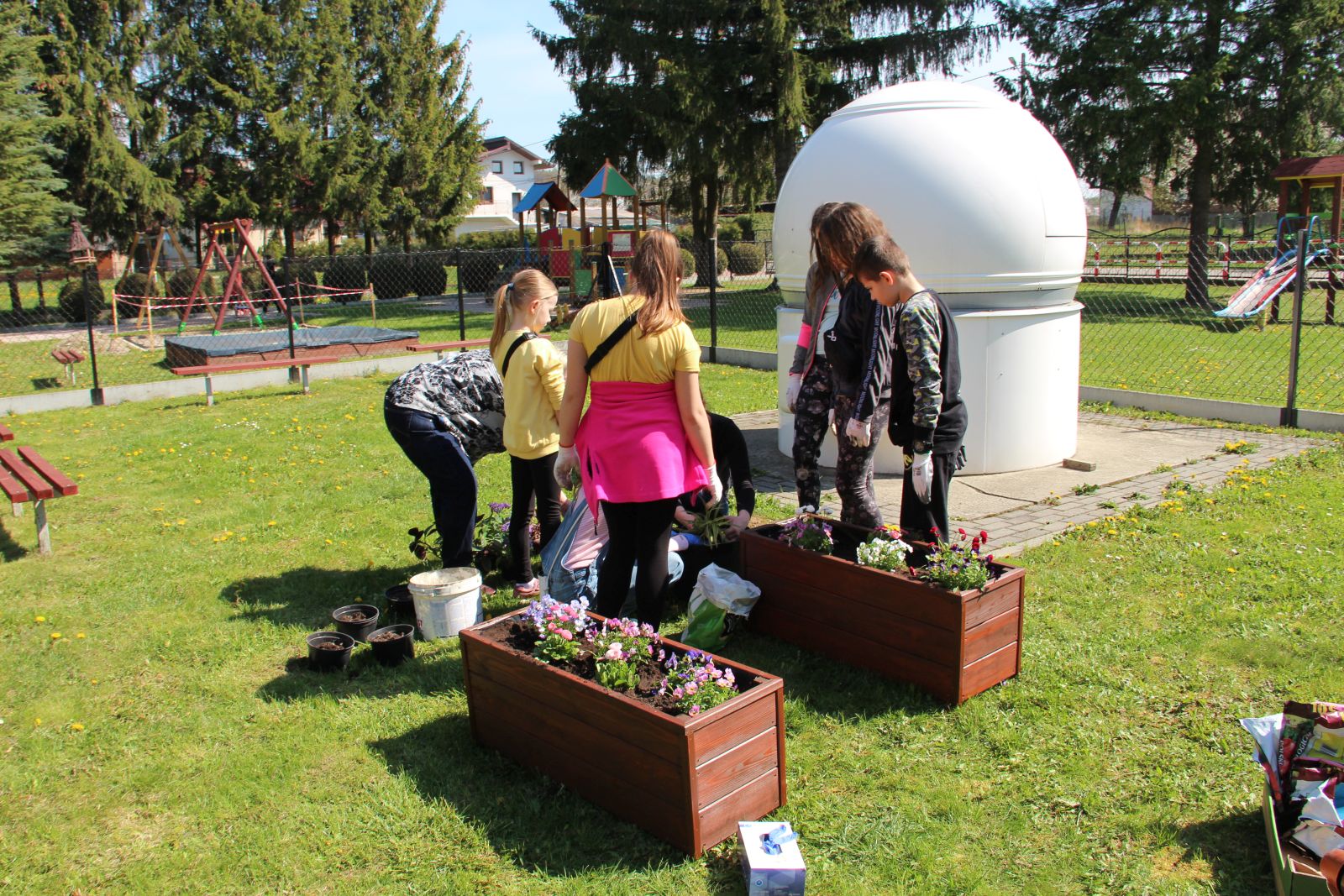 Ku naszej radości do szkoły przybyło wielu gości, którzy chcieli świętować razem z nami i poznać nas oraz naszą pracę z nieco innej strony. Otwarte zostały drzwi pracowni, biblioteki, przedszkola. Każdy mógł zobaczyć, jak wygląda nasze zaplecze dydaktyczne, z którego korzystamy na co dzień i porozmawiać z nauczycielami. Dopisała nam pogoda, więc szaleństwom na placu zabaw i terenach zielonych wokół szkoły nie było końca.