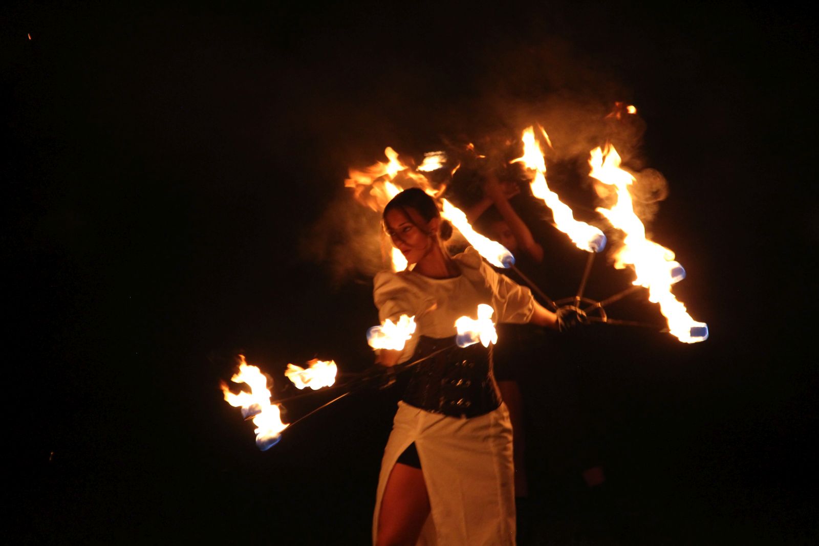 Największą atrakcją wieczoru był pokaz tańca z ogniem w wykonaniu Rumuńskiego zespołu Fire Show z Ardud (miasta partnerskiego Gminy Jasło), który przyciągnął tłumy widzów. Kilkunastu wykonawców tańczyło, walczyło, zionęło ogniem i wirowało hipnotyzując zgromadzonych. Ich występ nagrodzony został wiwatami i burzą oklasków, które długo nie cichły.