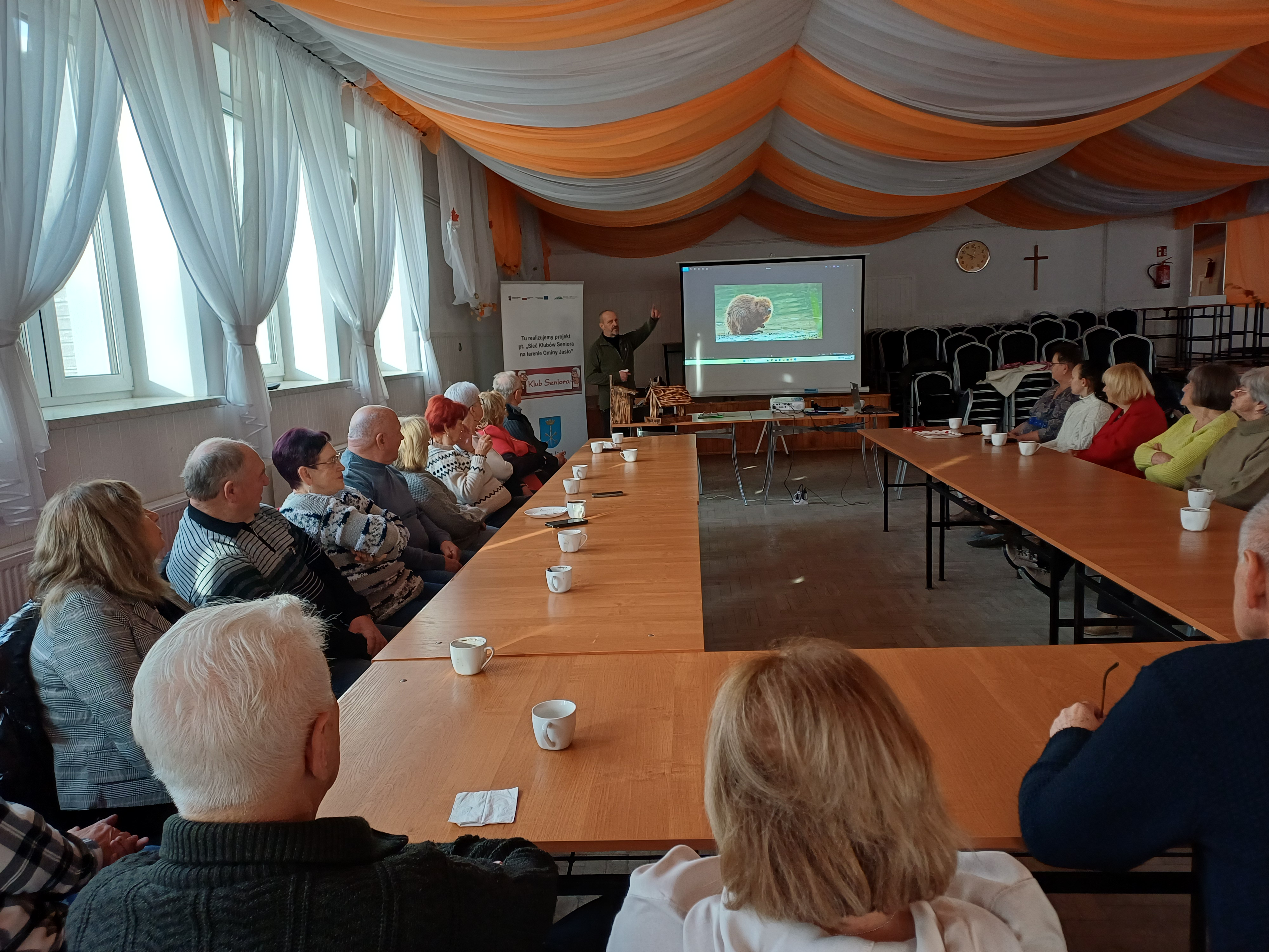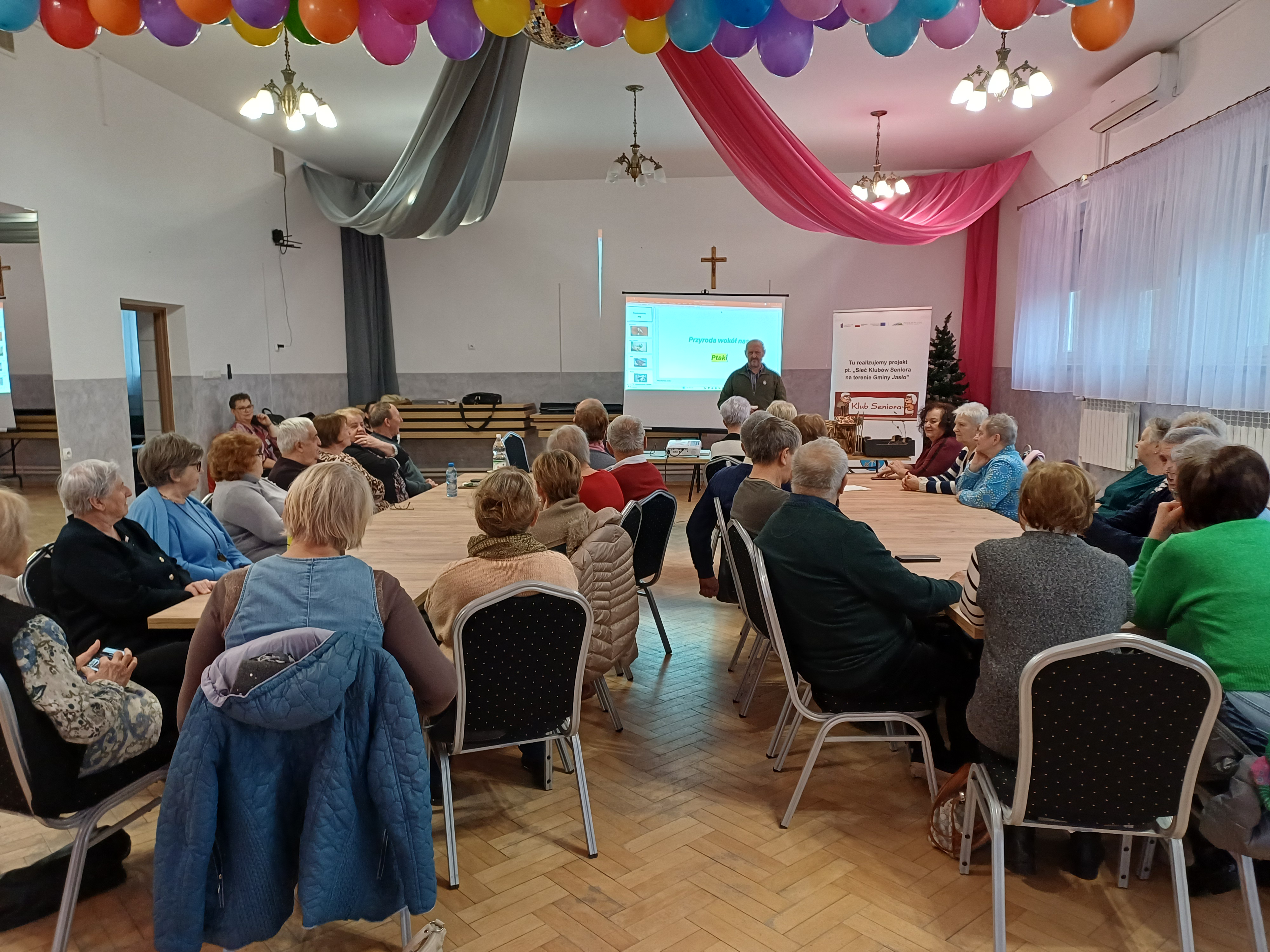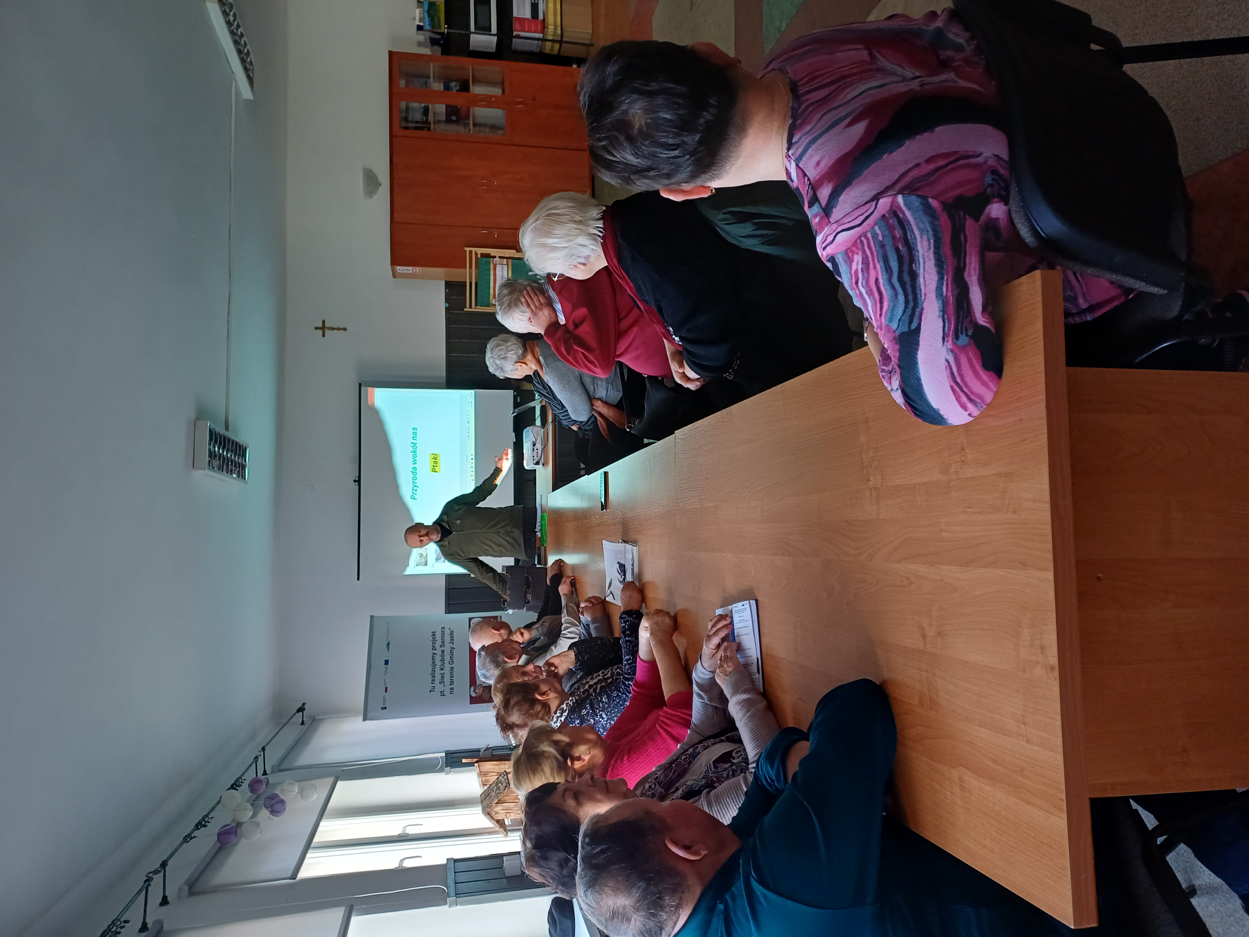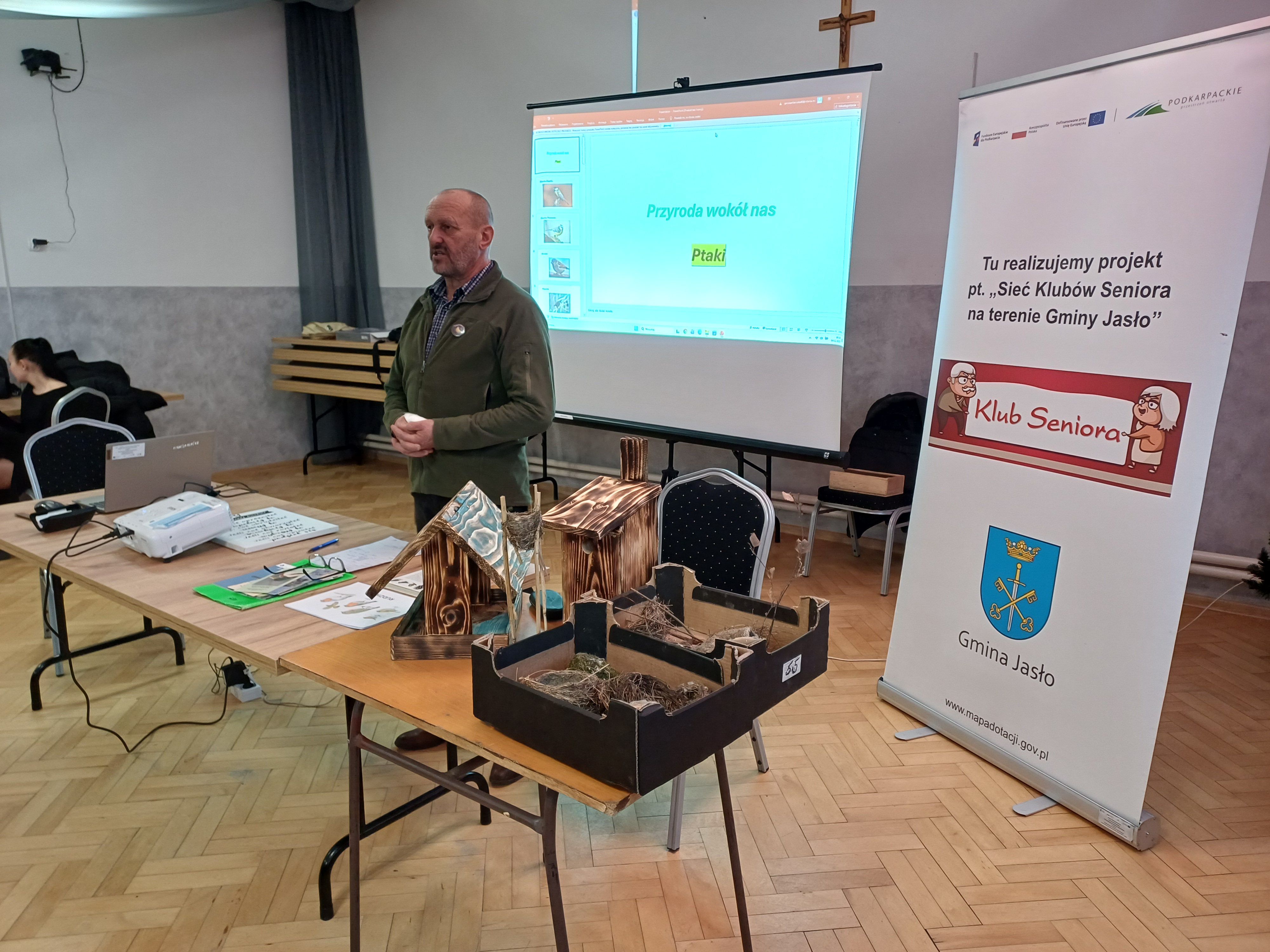 Pierwszy tydzień grudnia w Klubach Seniora Gminy Jasło minął niezwykle intensywnie. We wszystkich pięciu klubach zajęcia edukacyjne prowadził Pan Mieczysław Zając, amator ornitologii. Tematem spotkań była „Przyroda wokół nas”, ze szczególnym naciskiem na ptaki, które są jego wieloletnią pasją. Uczestnicy z zainteresowaniem przyglądali się autentycznym gniazdom różnych ptaków, będącym częścią jego kolekcji. Pan Mieczysław zafascynował wszystkich nie tylko swoją wiedzą, ale także posiadanymi eksponatami, w tym gniazdem szerszeni oraz zmumifikowanym szkieletem kota domowego. Serdeczne podziękowania dla Pana Mieczysława za jego zaangażowanie!
