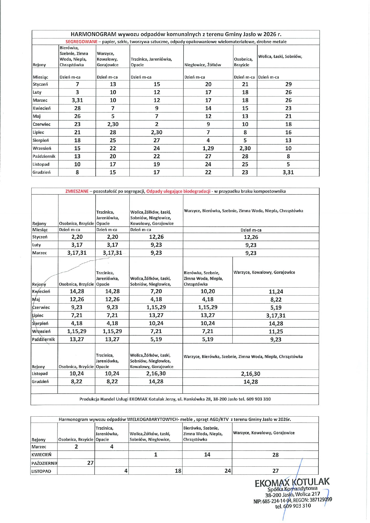 Harmonogram wywozu odpadów komunalnych z terenu Gminy Jasło w 2026 rokuHarmonogram_wywozu_odpadów_komunalnych_z_terenu_Gminy_Jasło_w_2026_roku.pdf 0.45MB