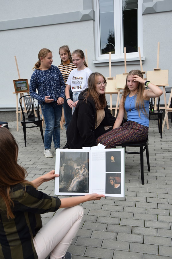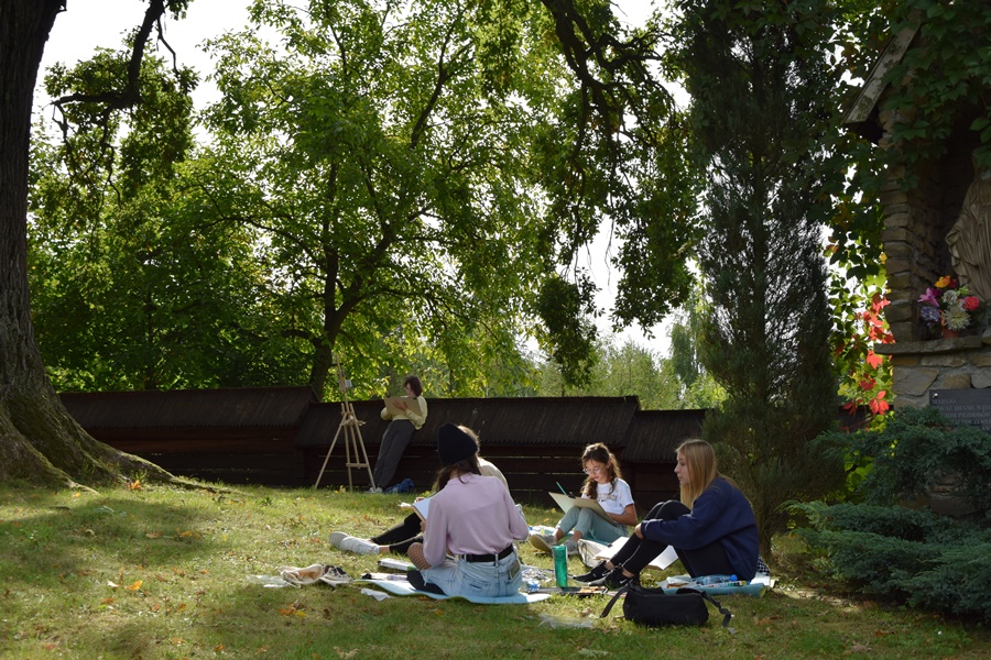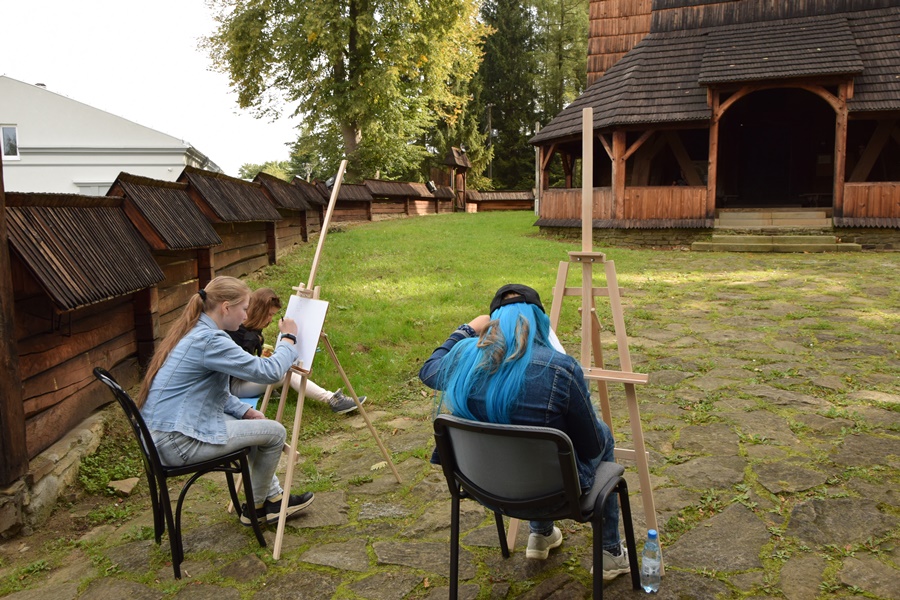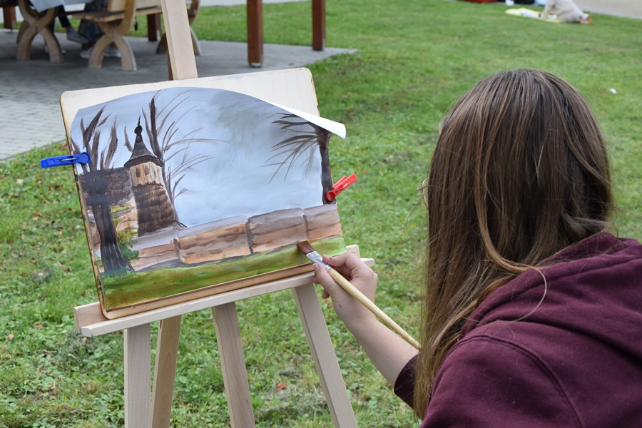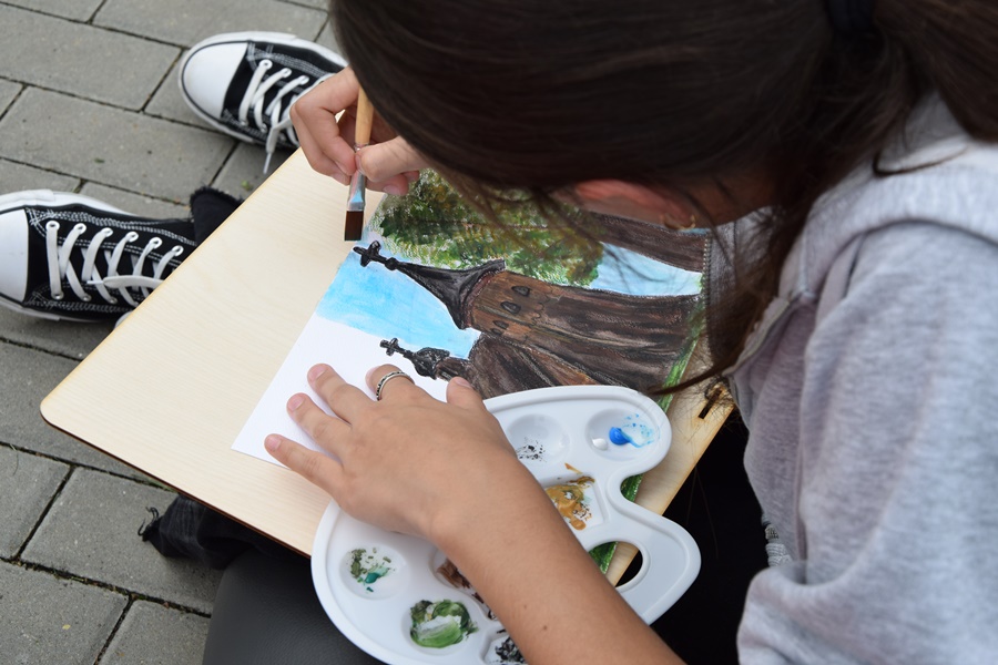 Młodzi artyści, zajmując miejsce na skwerze – placu kościelnym, mieli okazję utrwalić piękno tego unikatowego zabytku średniowiecznej architektury sakralnej wybraną techniką malarską.