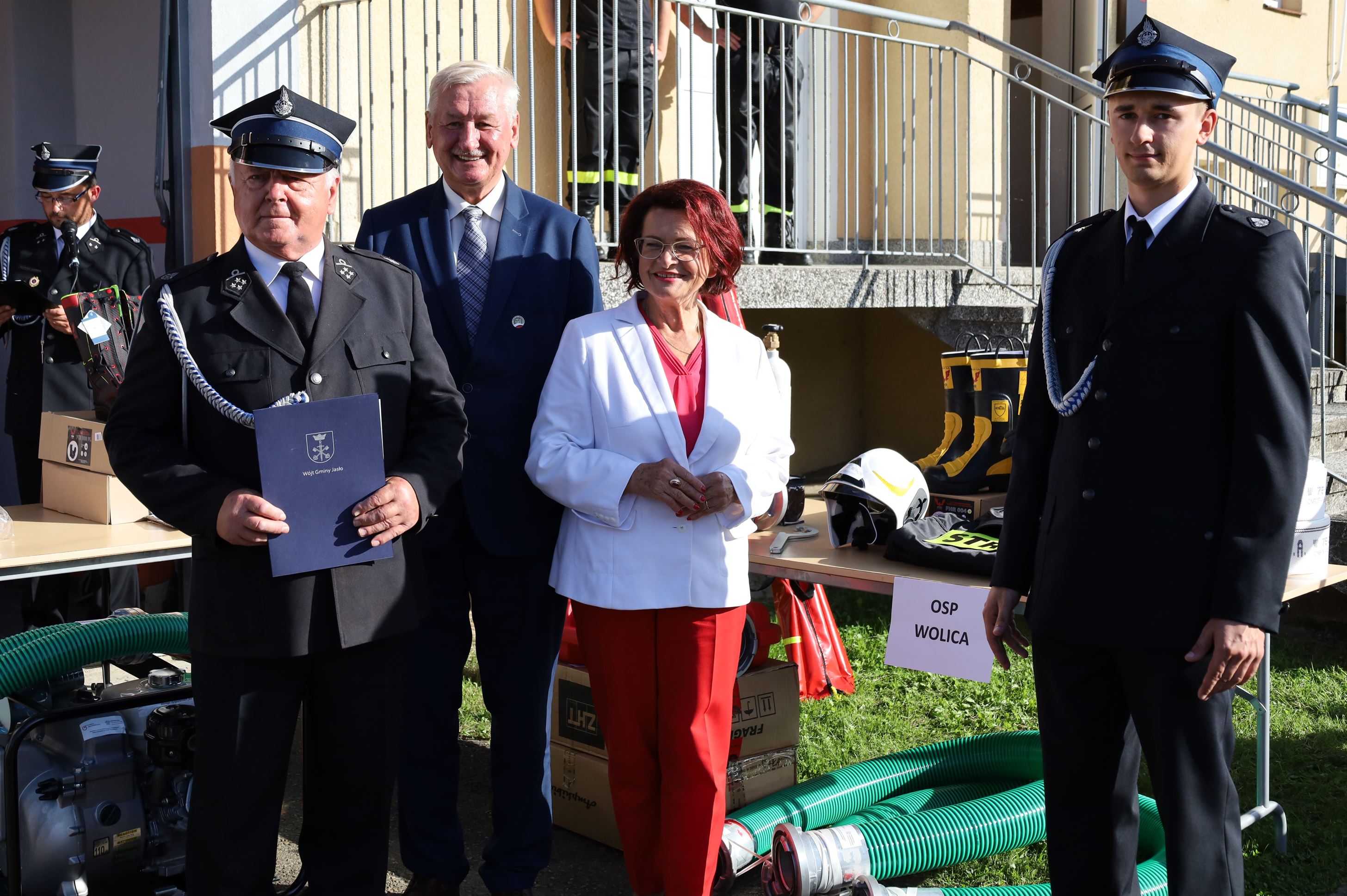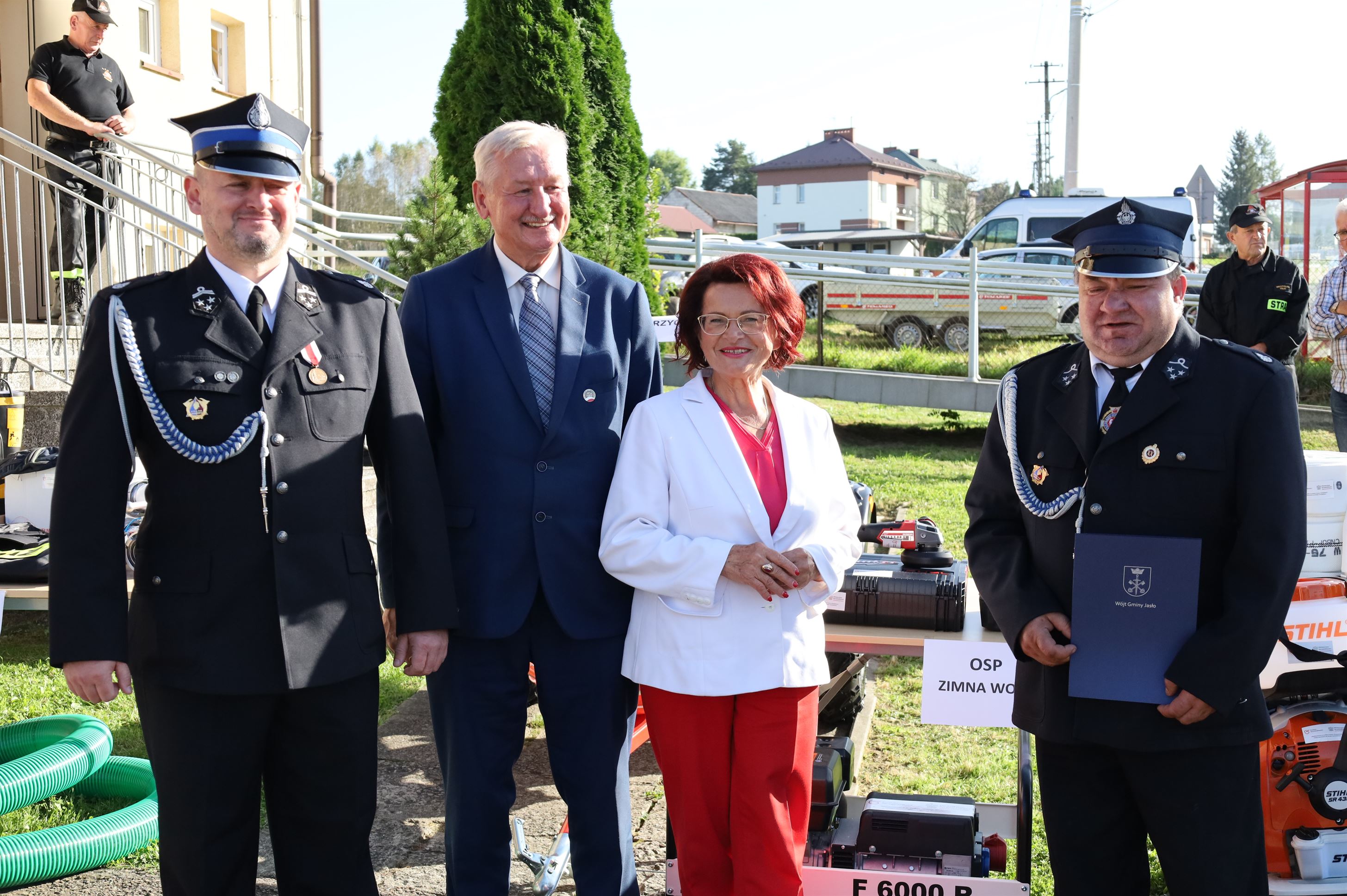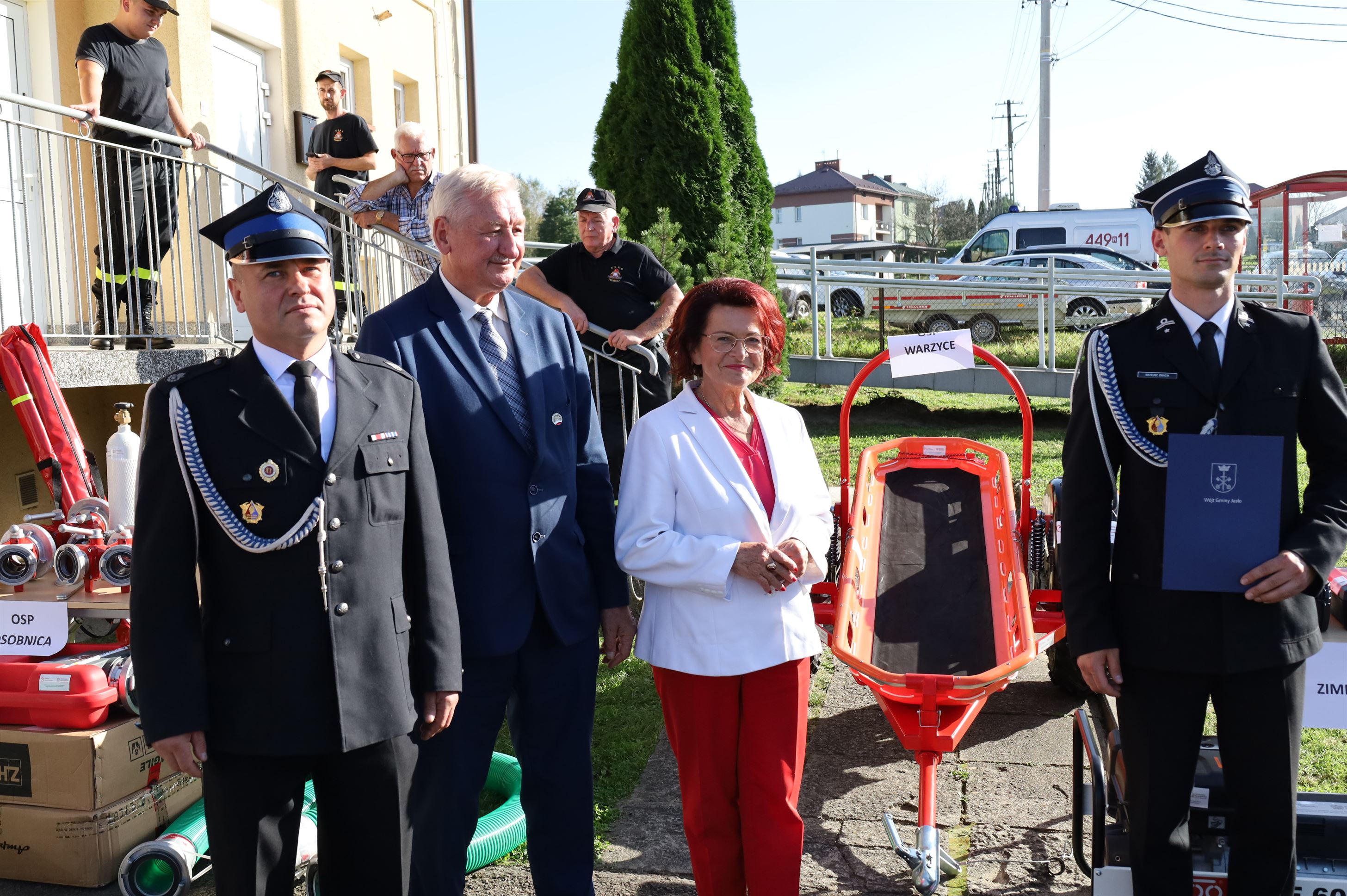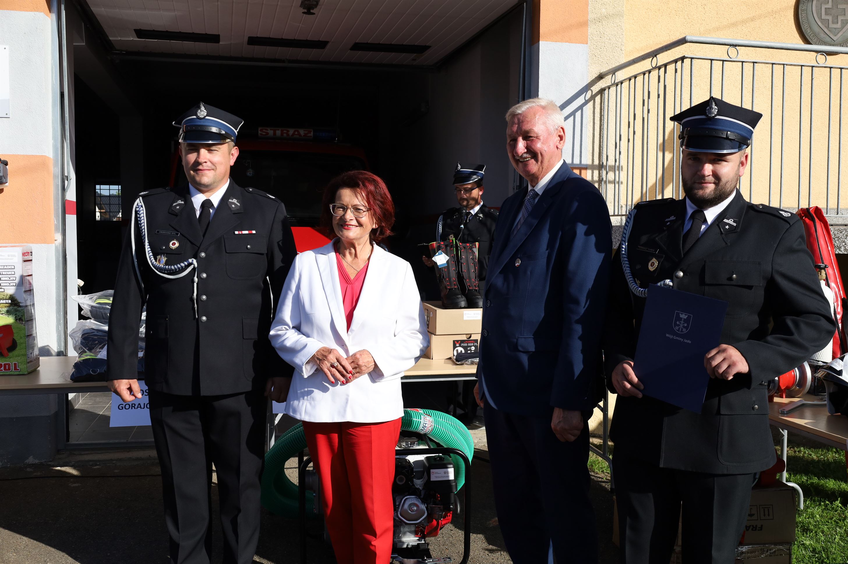 Wyposażenie strażackie przekazali Maria Kurowska – Poseł na Sejm RP oraz Adam Pawluś – Starosta Jasielski. Ks. prałat Wacław Rybka – Kapelan Strażaków OSP Gminy Jasło poświęcił sprzęt.