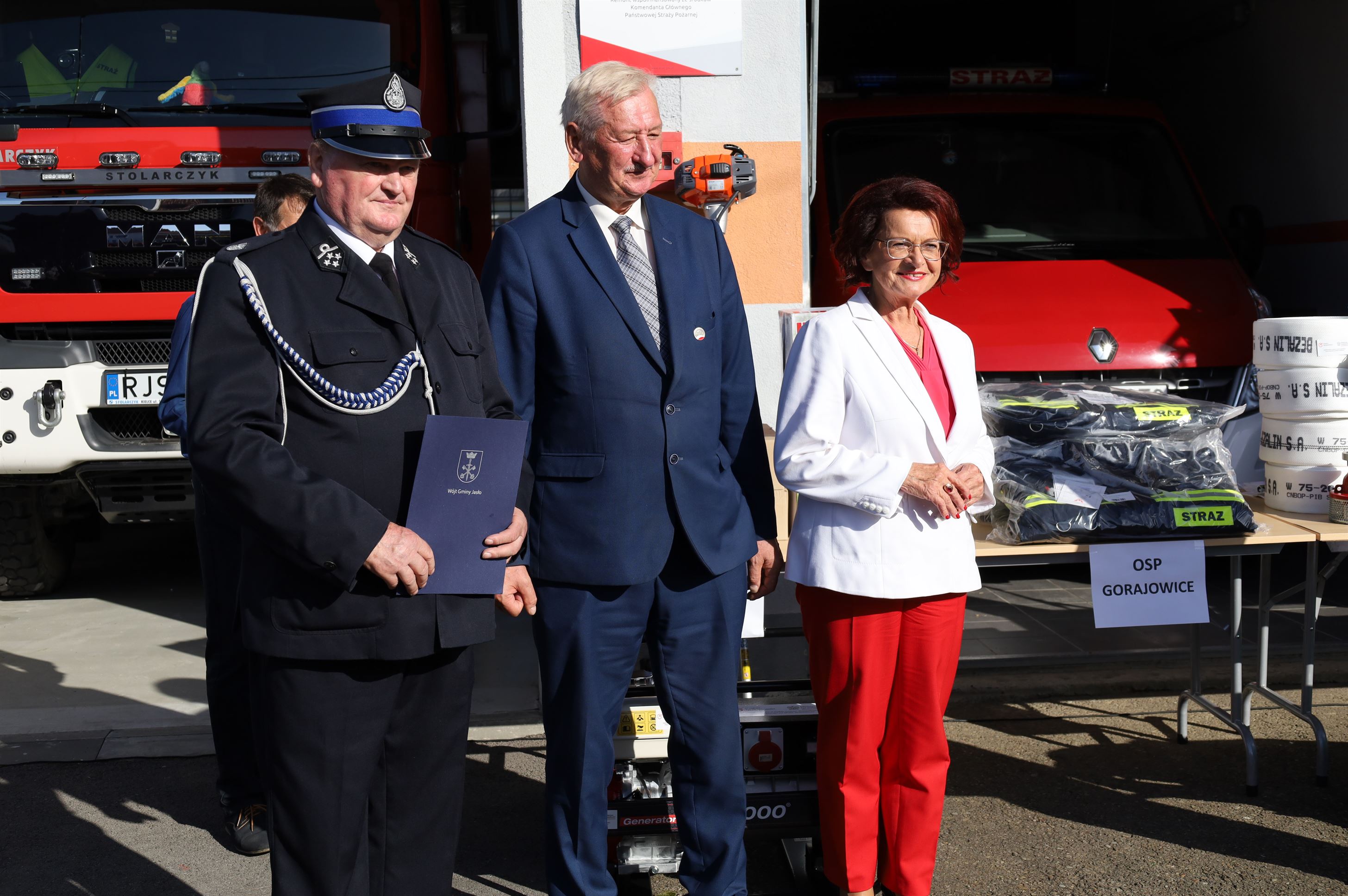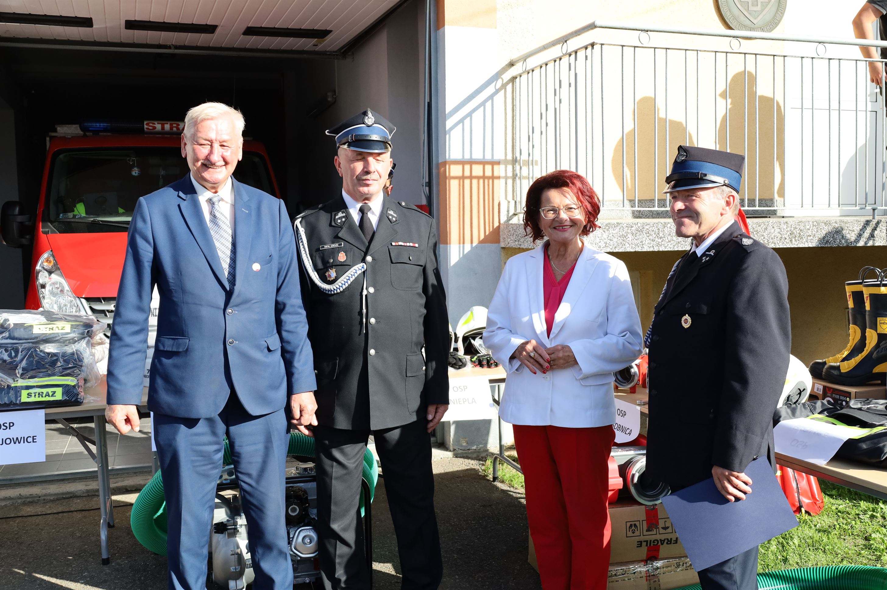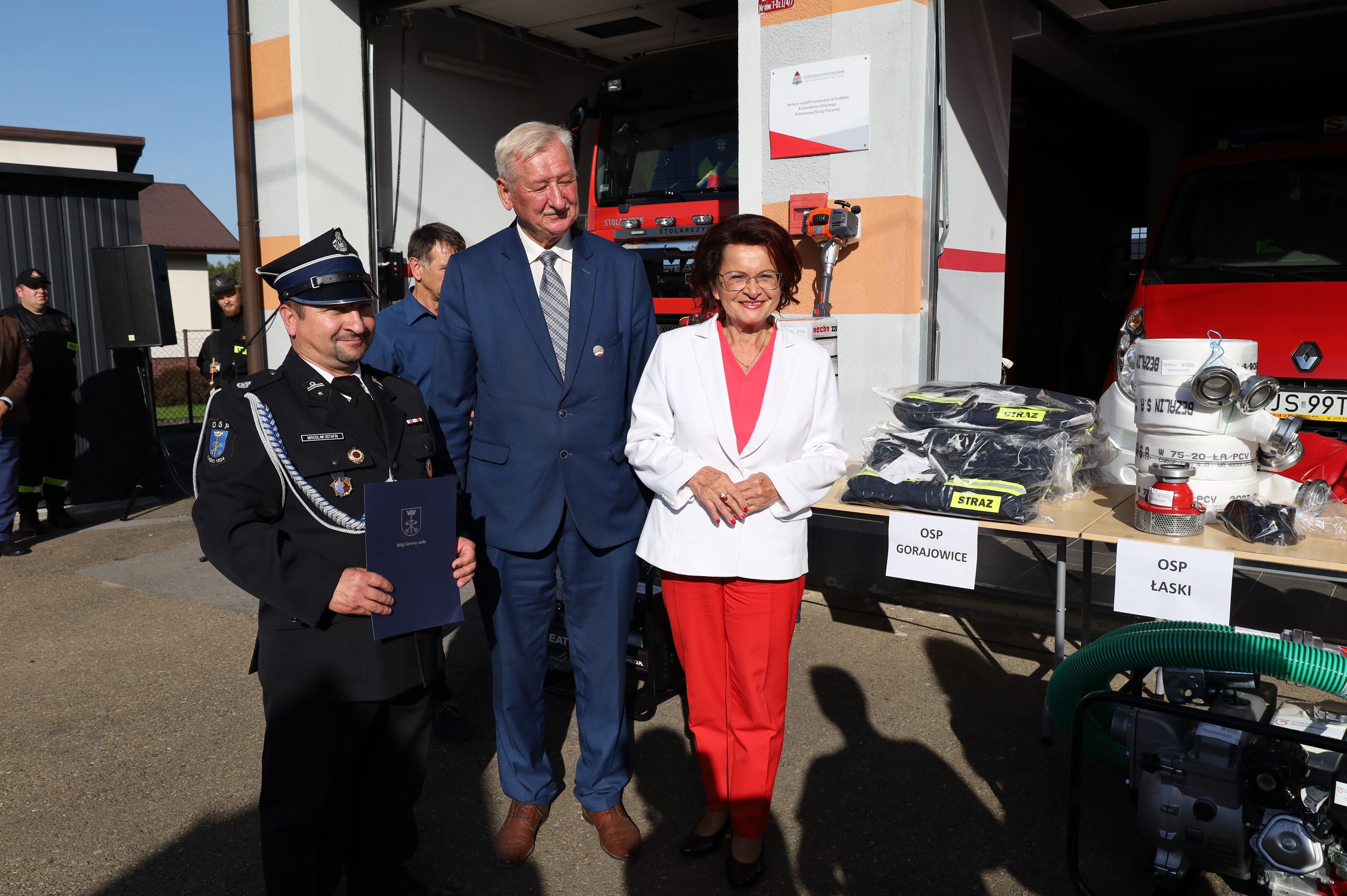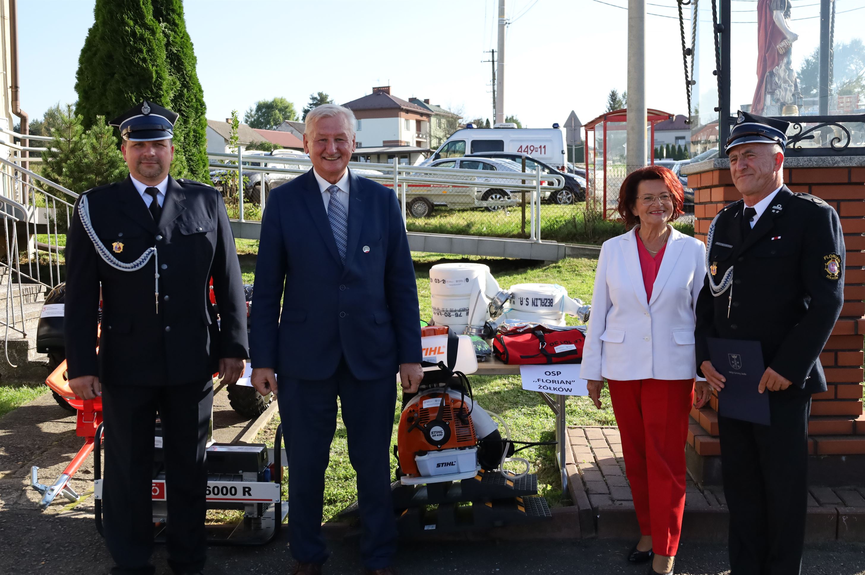 Wyposażenie strażackie przekazali Maria Kurowska – Poseł na Sejm RP oraz Adam Pawluś – Starosta Jasielski. Ks. prałat Wacław Rybka – Kapelan Strażaków OSP Gminy Jasło poświęcił sprzęt.
