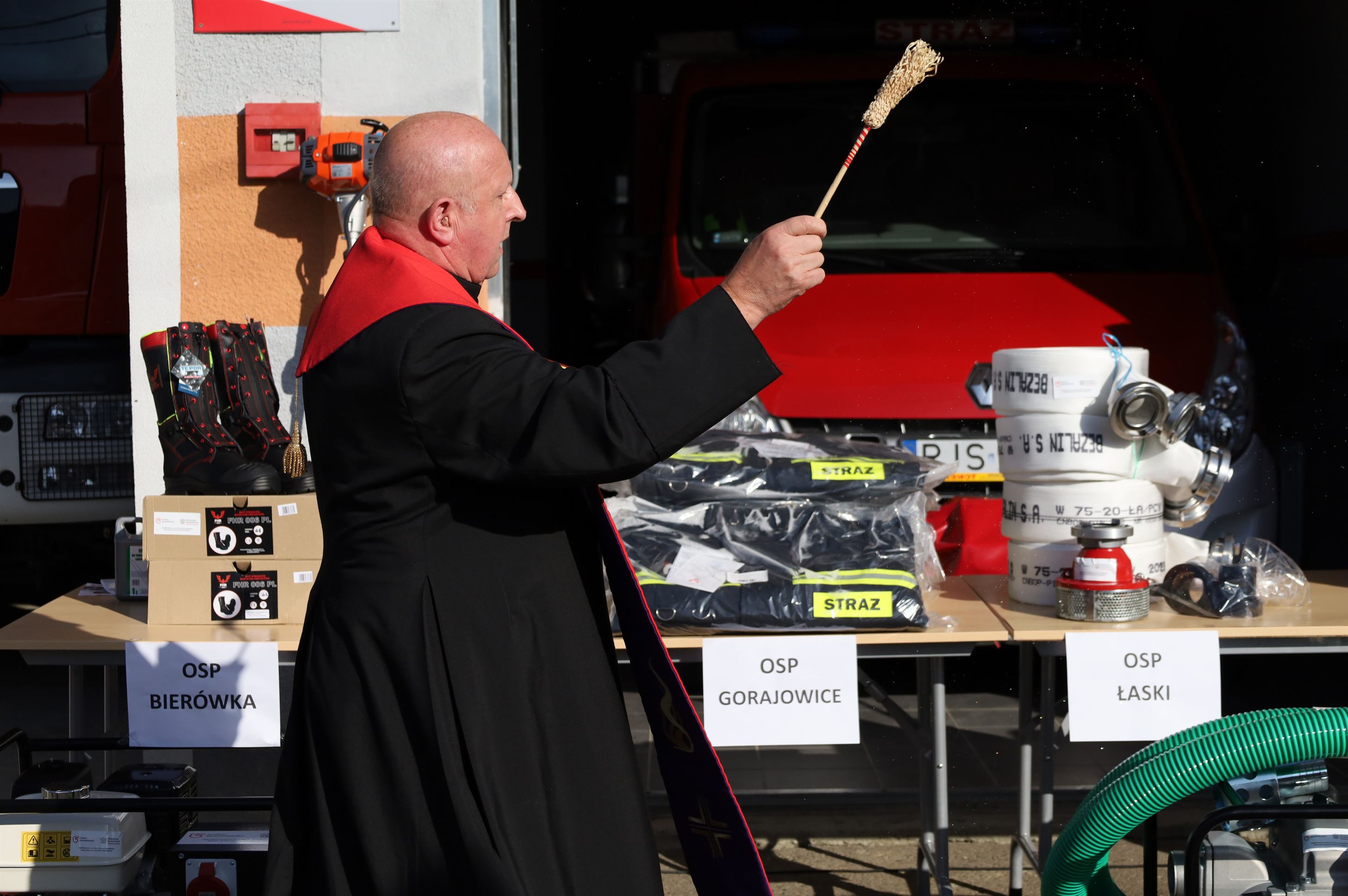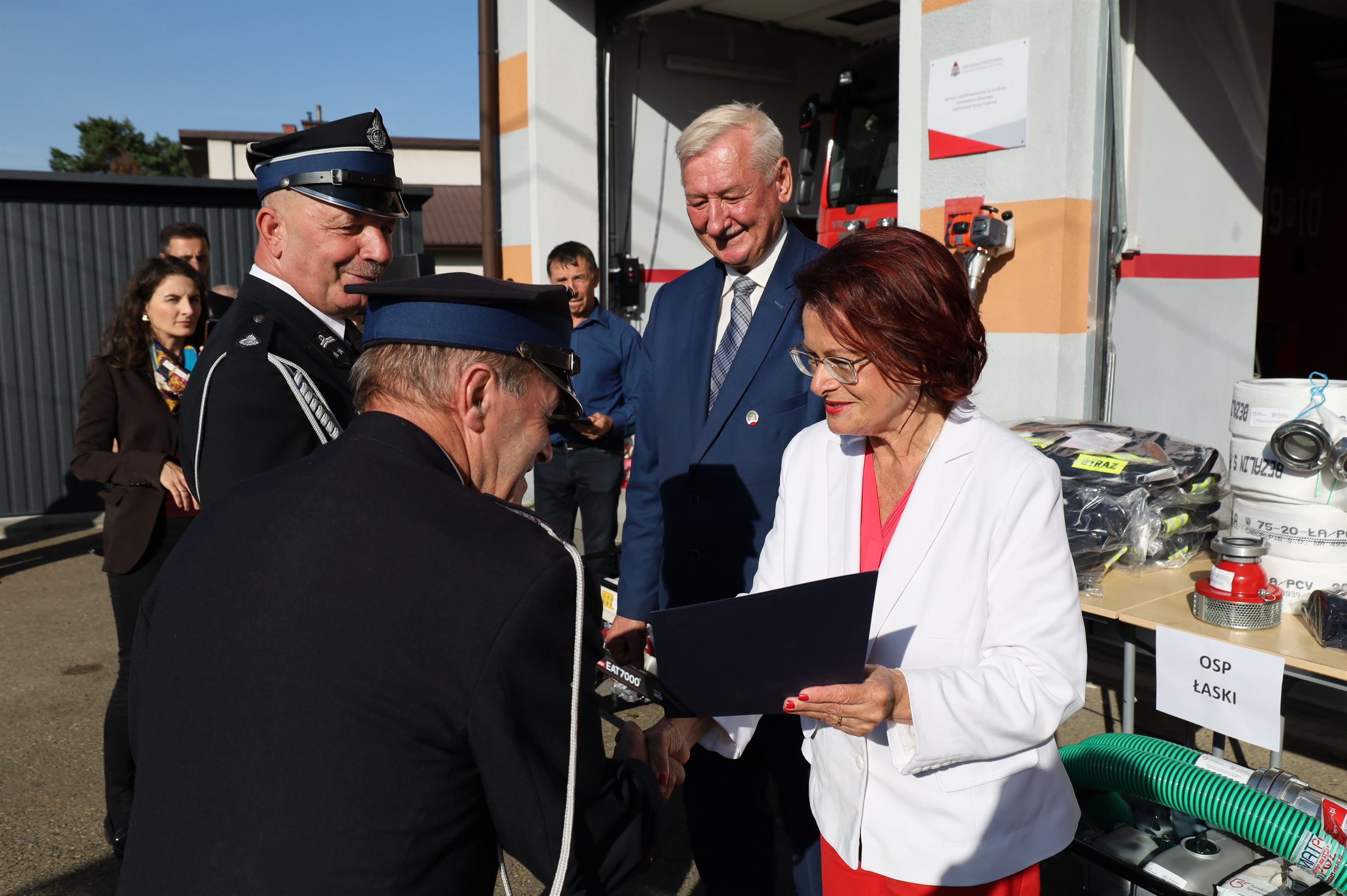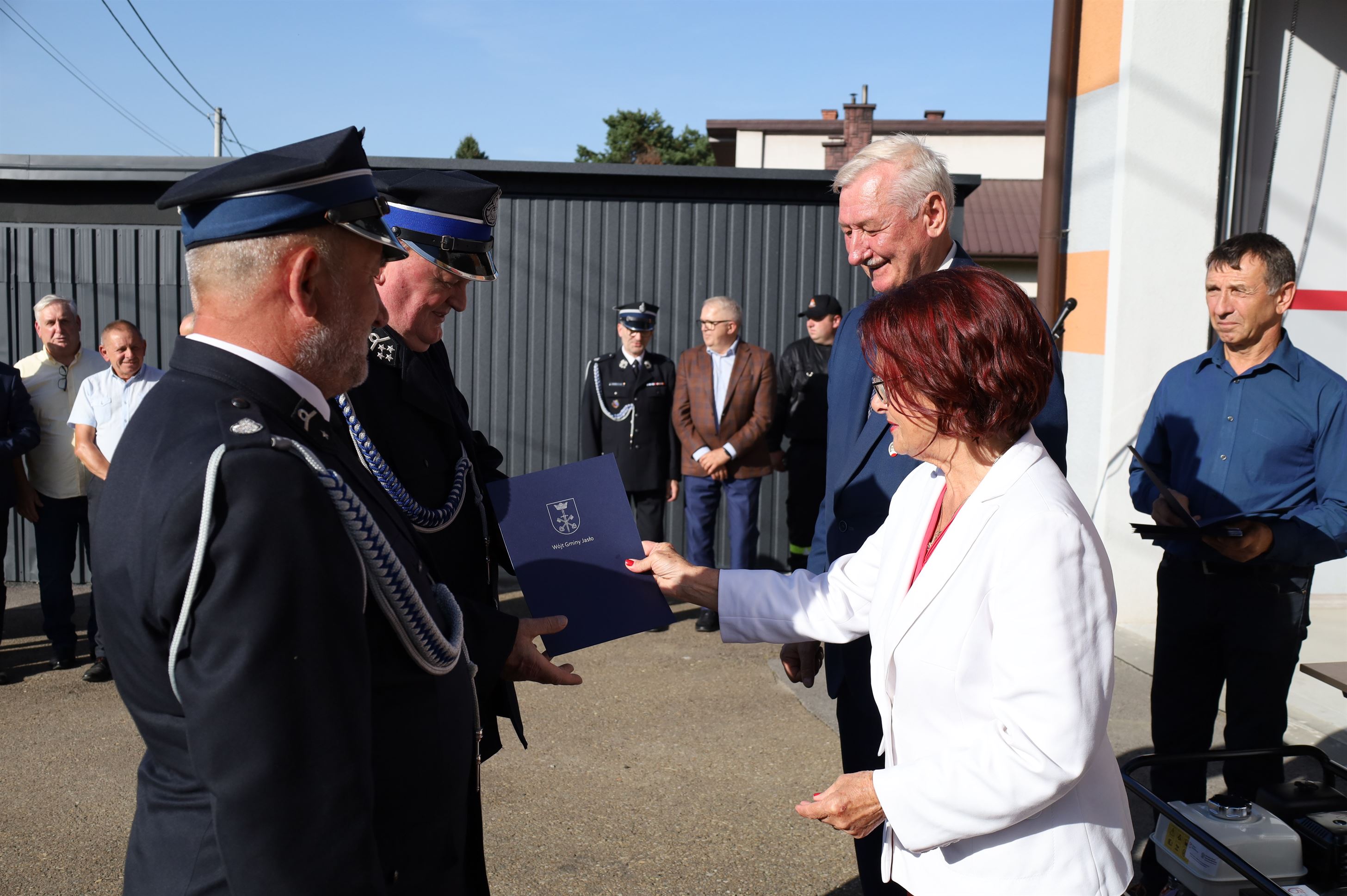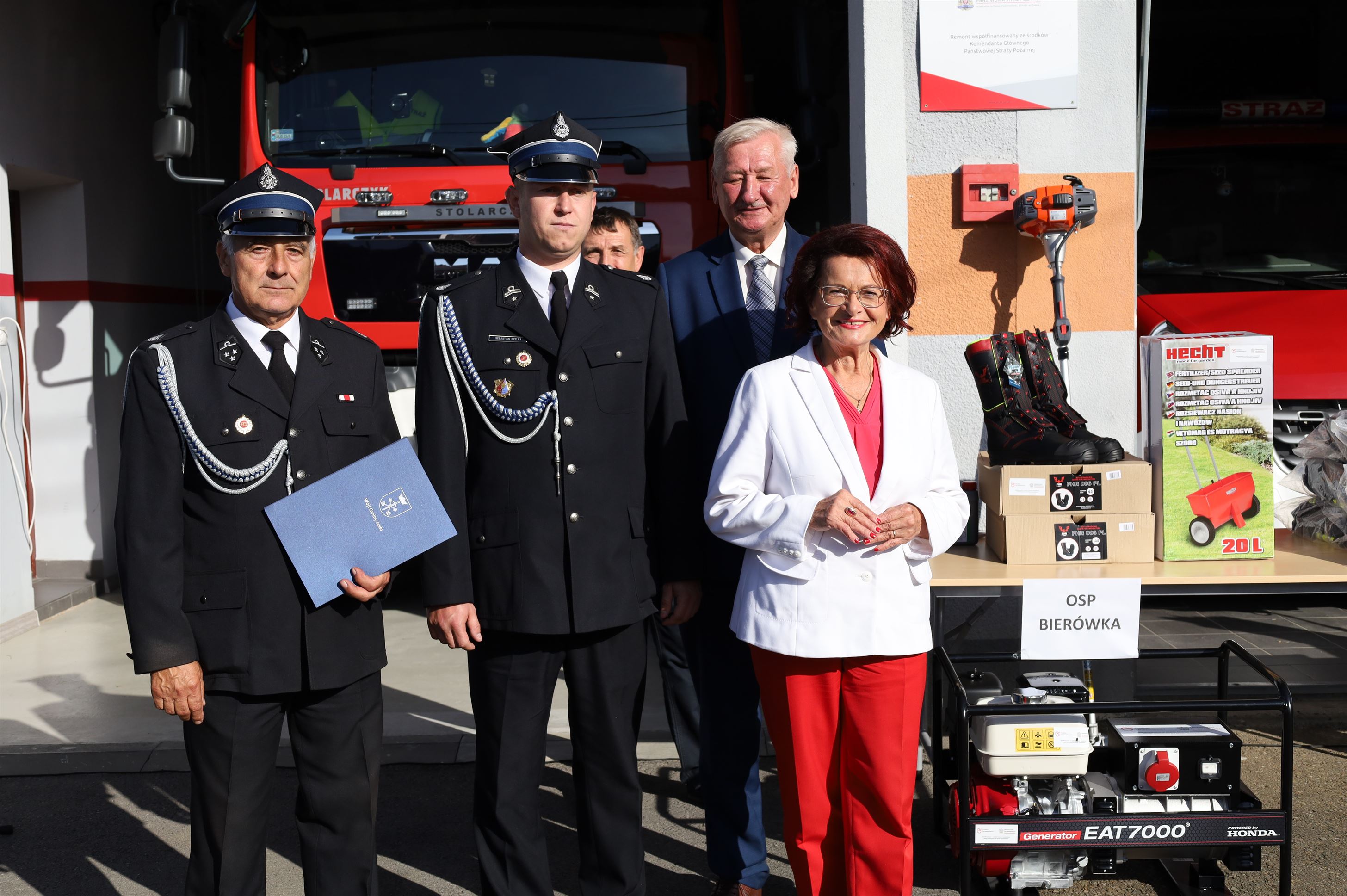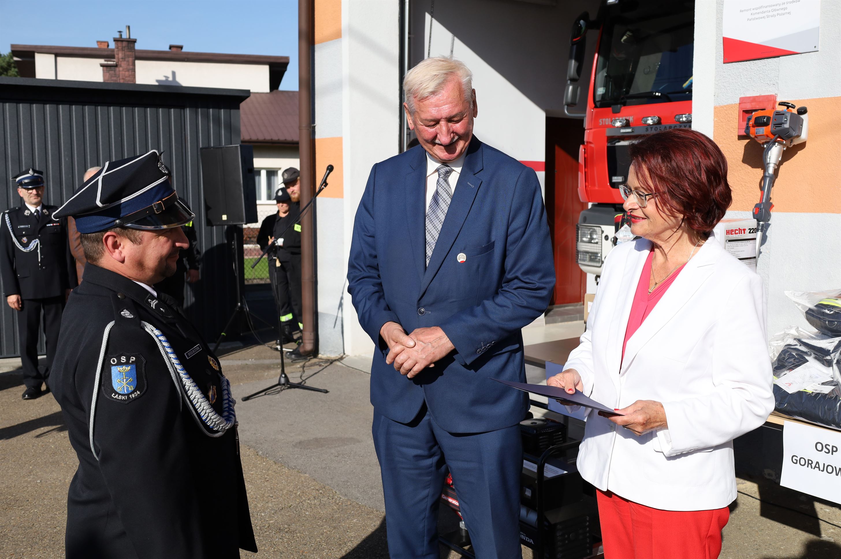 Wyposażenie strażackie przekazali Maria Kurowska – Poseł na Sejm RP oraz Adam Pawluś – Starosta Jasielski. Ks. prałat Wacław Rybka – Kapelan Strażaków OSP Gminy Jasło poświęcił sprzęt.