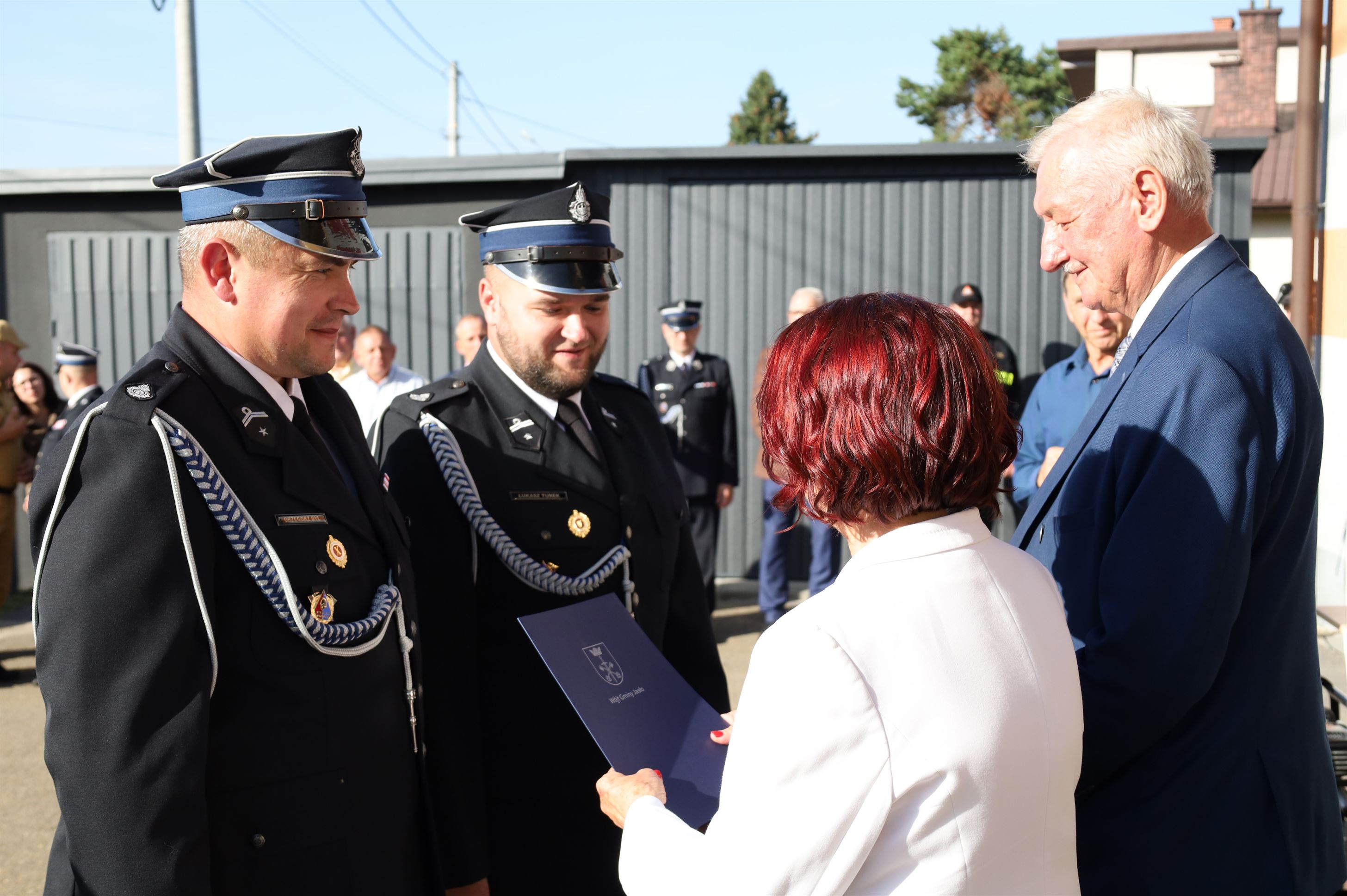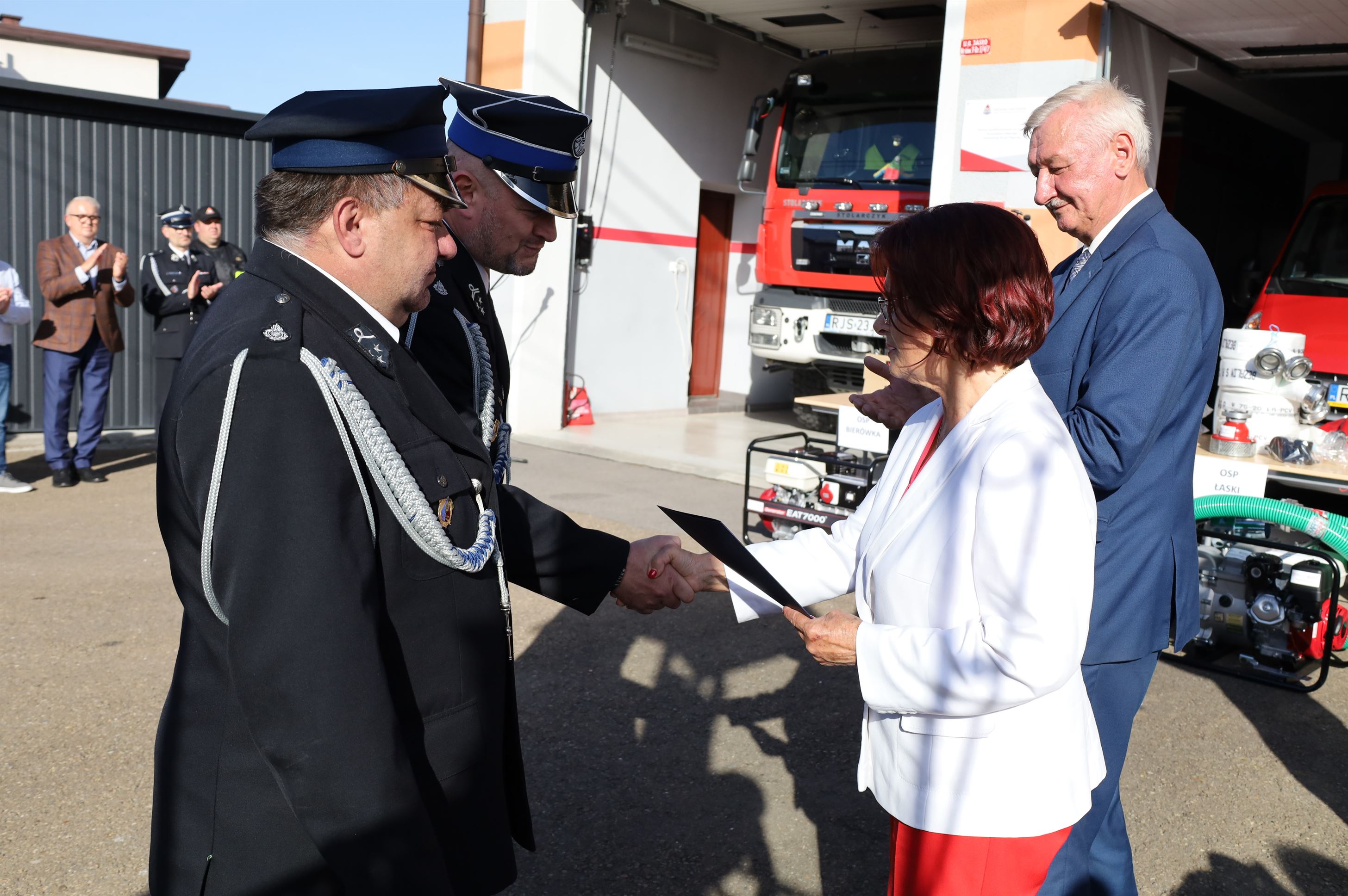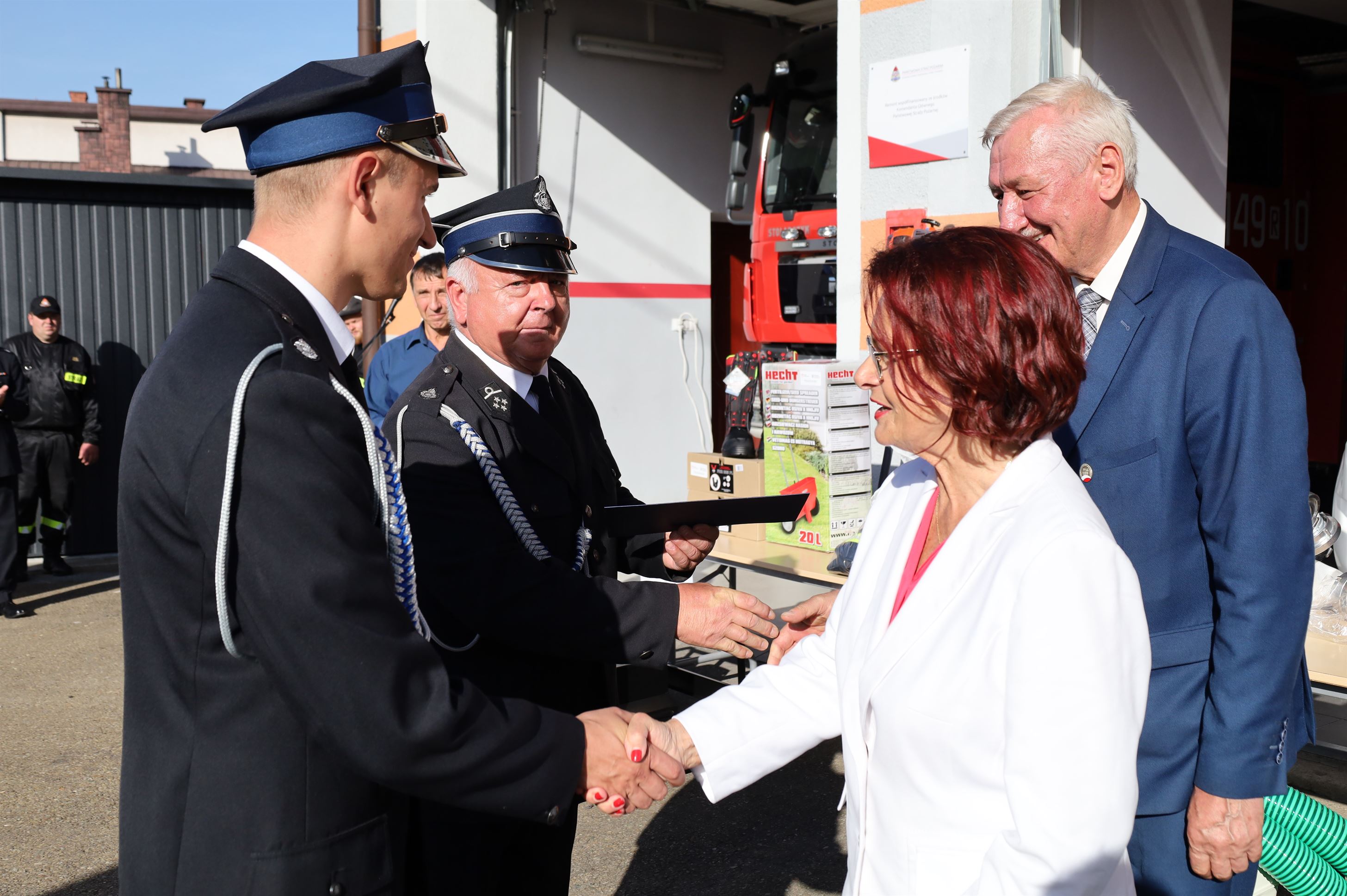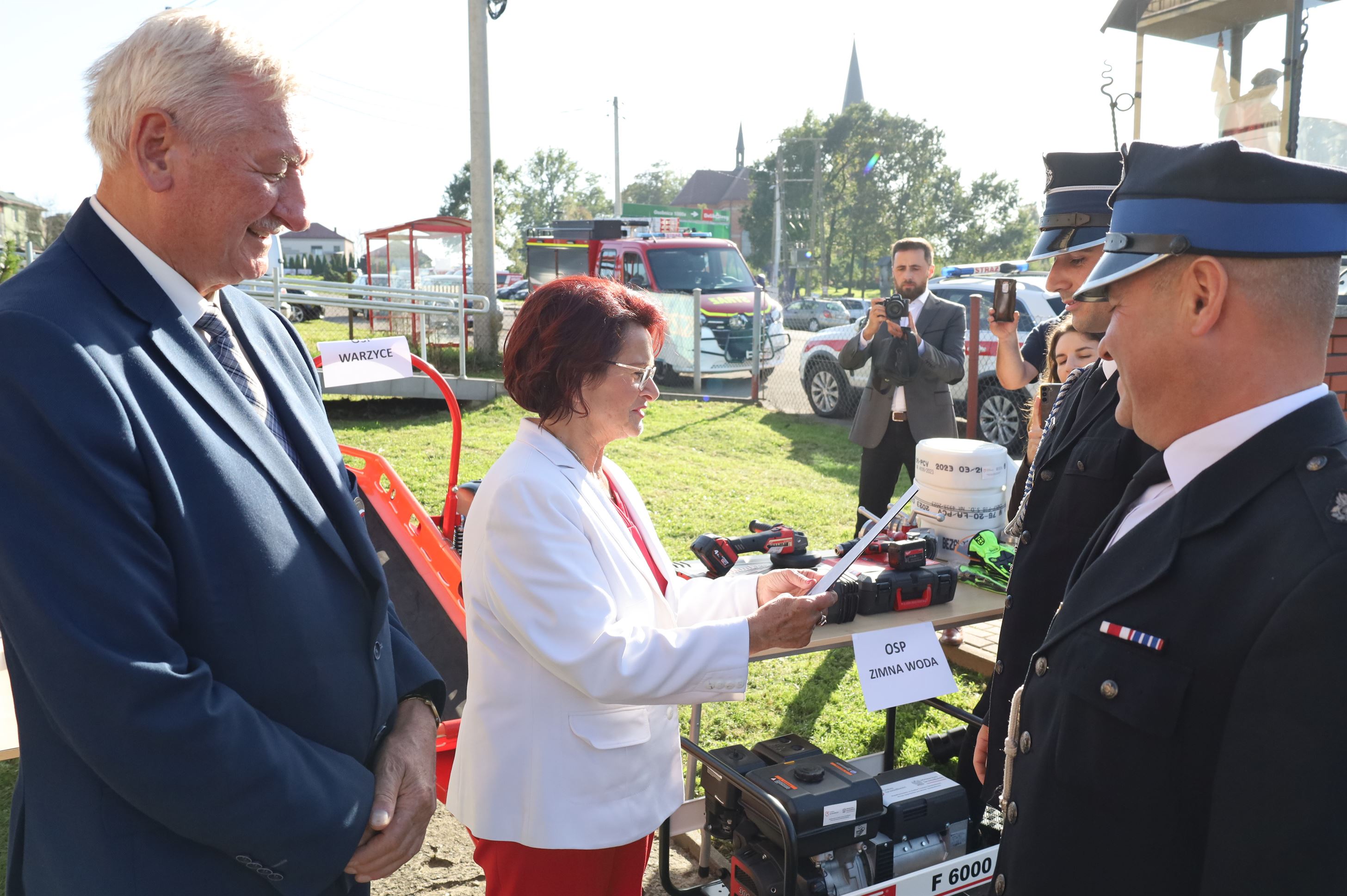 Wyposażenie strażackie przekazali Maria Kurowska – Poseł na Sejm RP oraz Adam Pawluś – Starosta Jasielski. Ks. prałat Wacław Rybka – Kapelan Strażaków OSP Gminy Jasło poświęcił sprzęt.