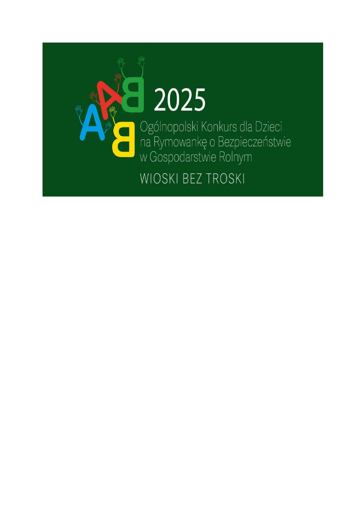 Kasa Rolniczego Ubezpieczenia Społecznego serdecznie zaprasza dzieci rolników do udziału w VI Ogólnopolskim Konkursie dla Dzieci na Rymowankę o Bezpieczeństwie w Gospodarstwie Rolnym pod hasłem „Wioski bez troski”