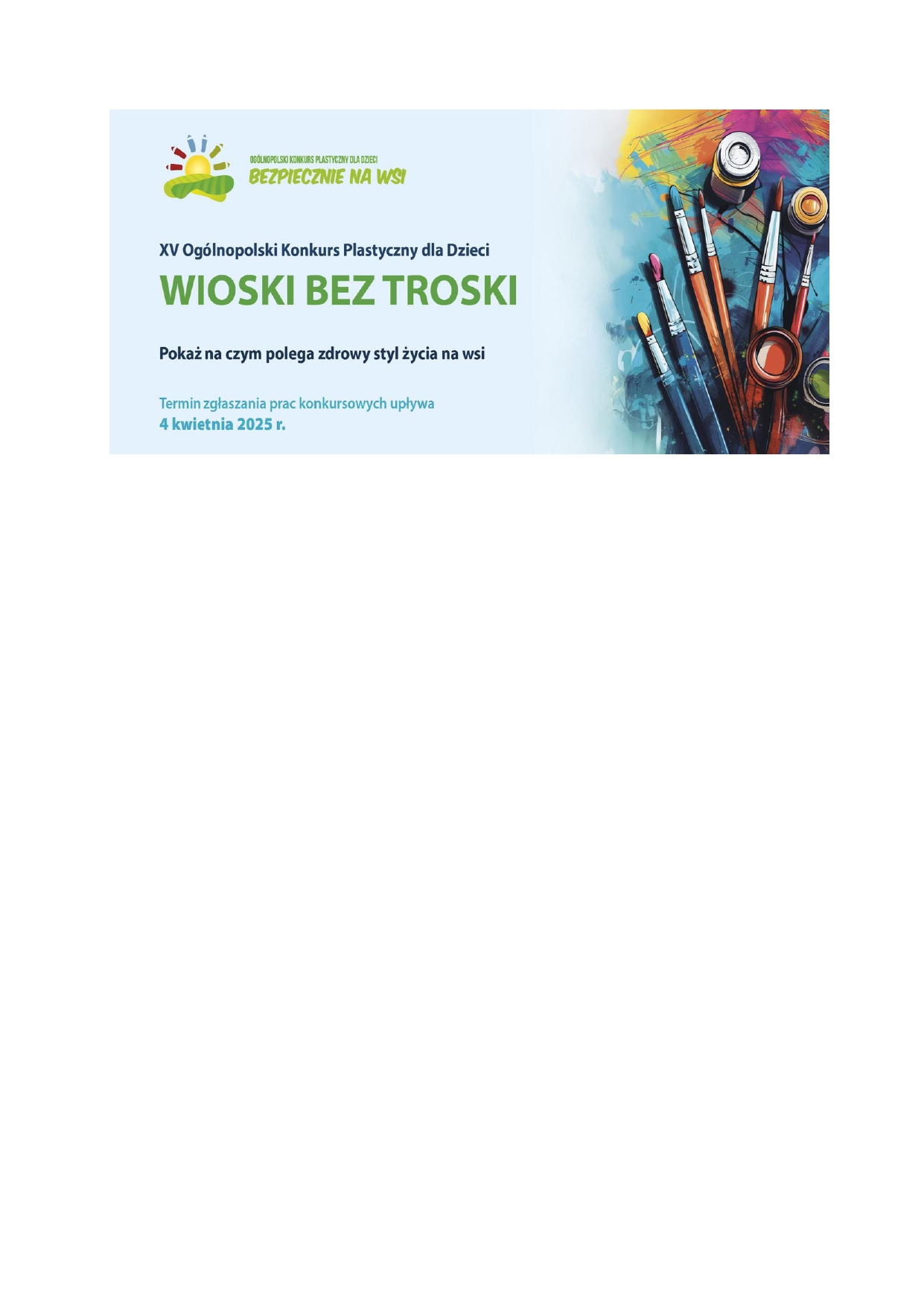 Kasa Rolniczego Ubezpieczenia Społecznego zaprasza dzieci z terenów wiejskich do udziału w XV Ogólnopolskim Konkursie Plastycznym dla Dzieci pod hasłem „Wioski bez troski”