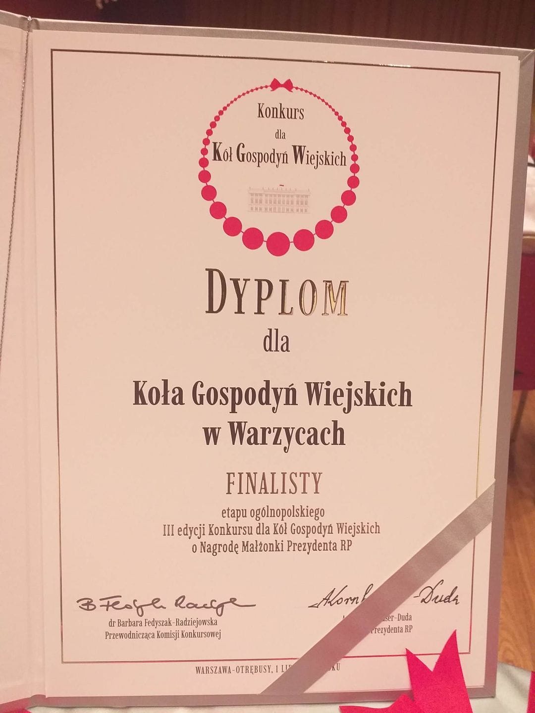 KGW Warzyce finalistą konkursu o nagrodę Małżonki Prezydenta RP