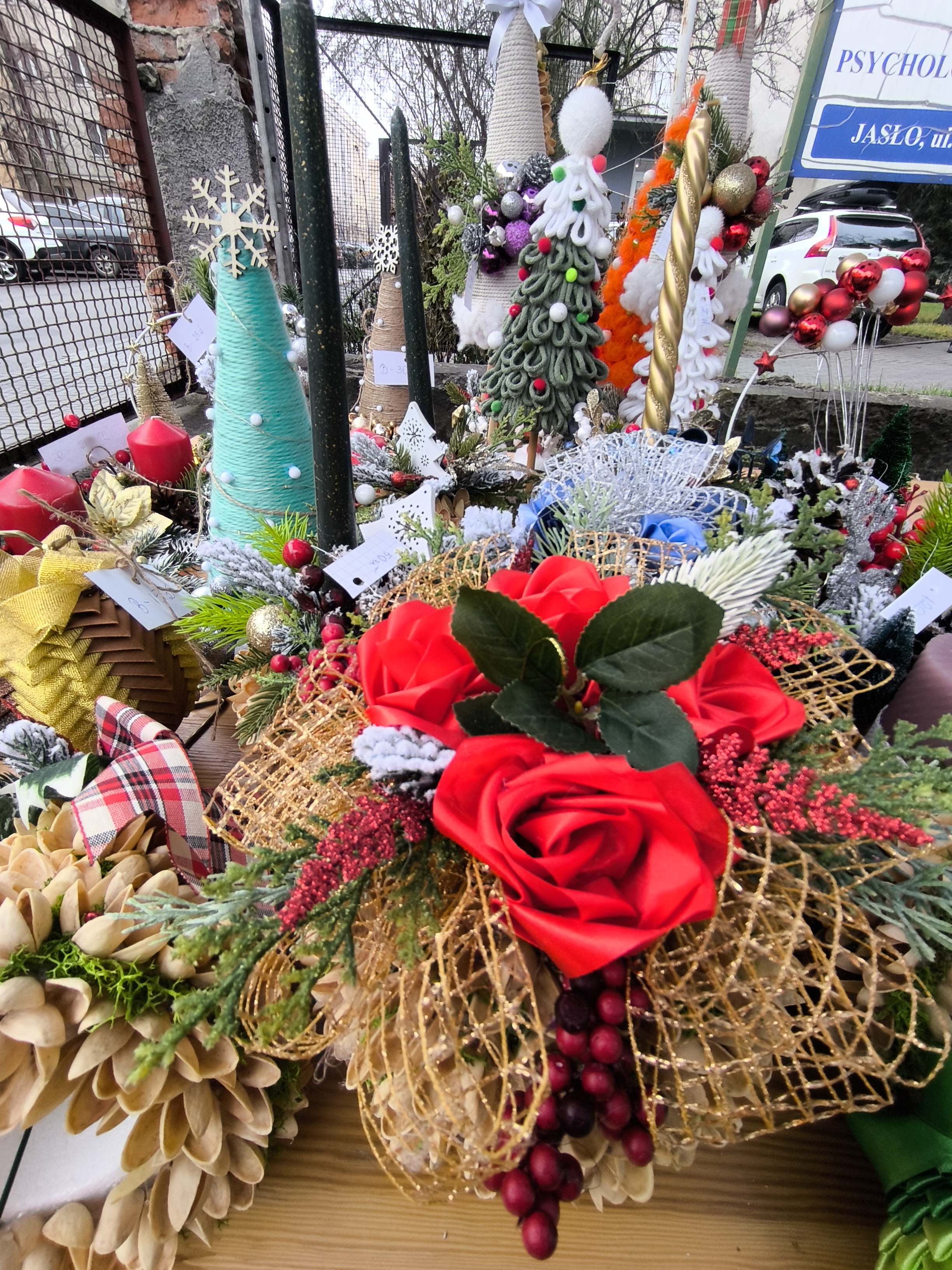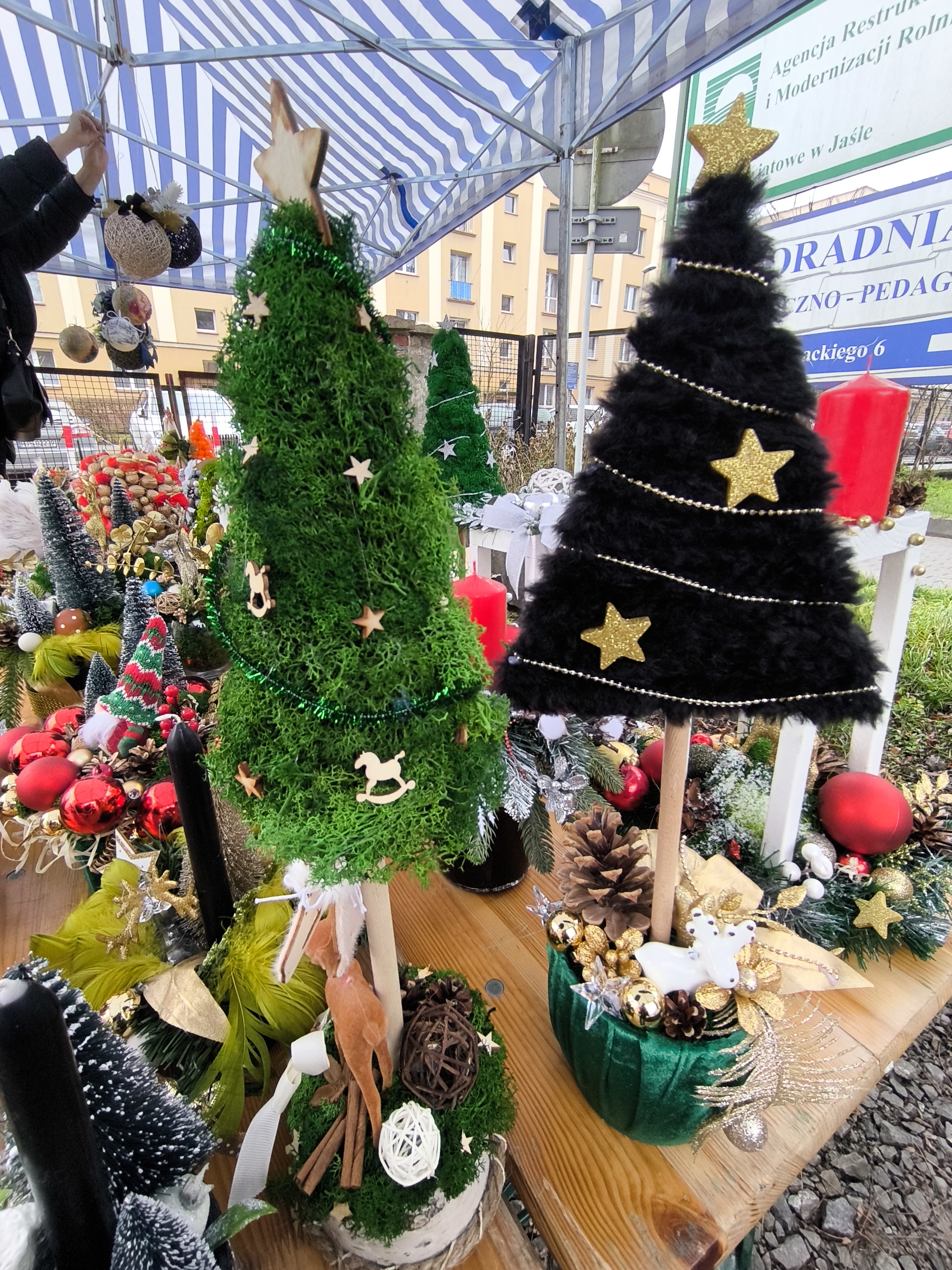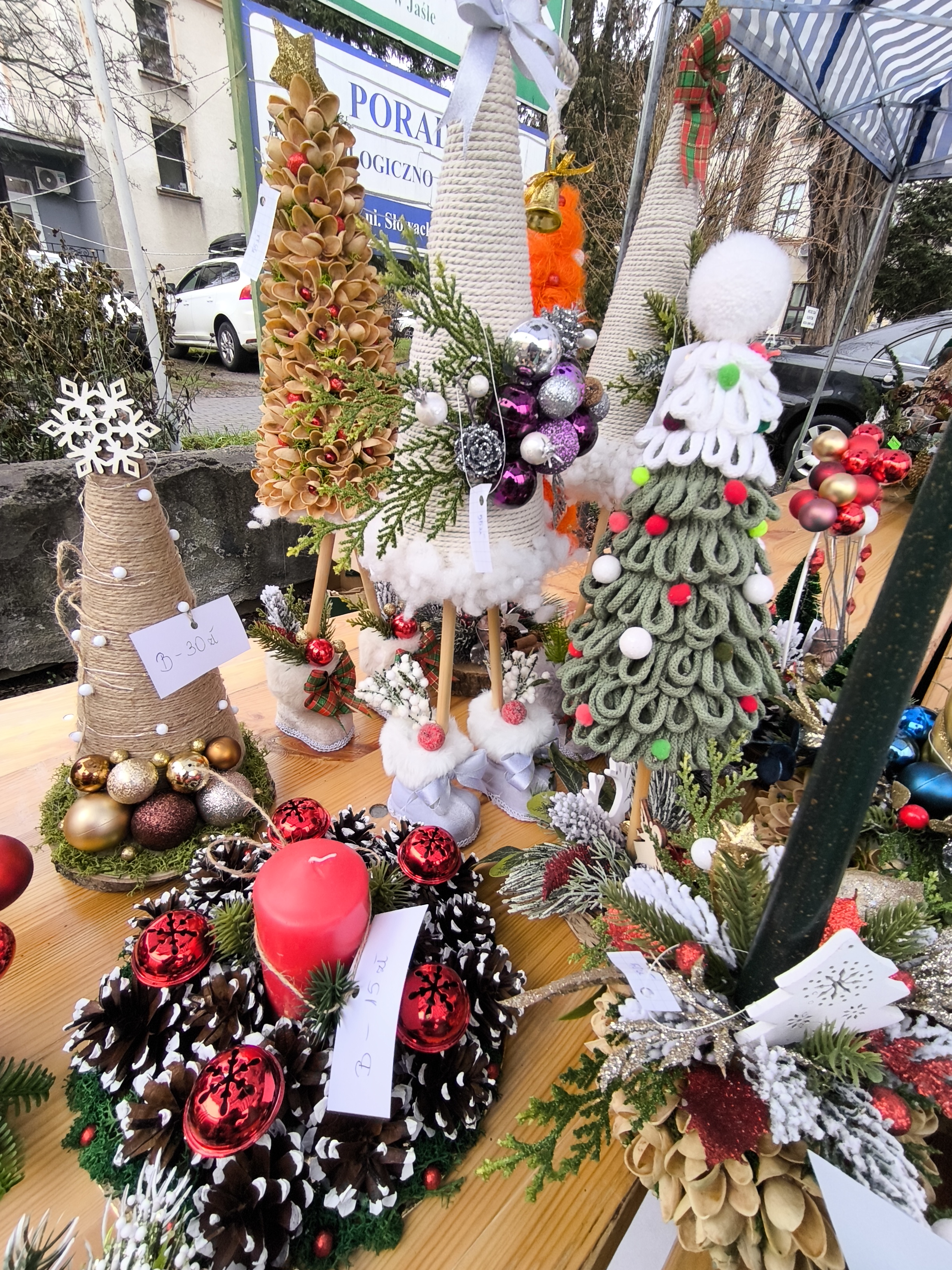 Zakupić można ręcznie wykonane ozdoby świąteczne. Ozdoby wykonały Panie z Gminnego Ośrodka Kultury w Jaśle.