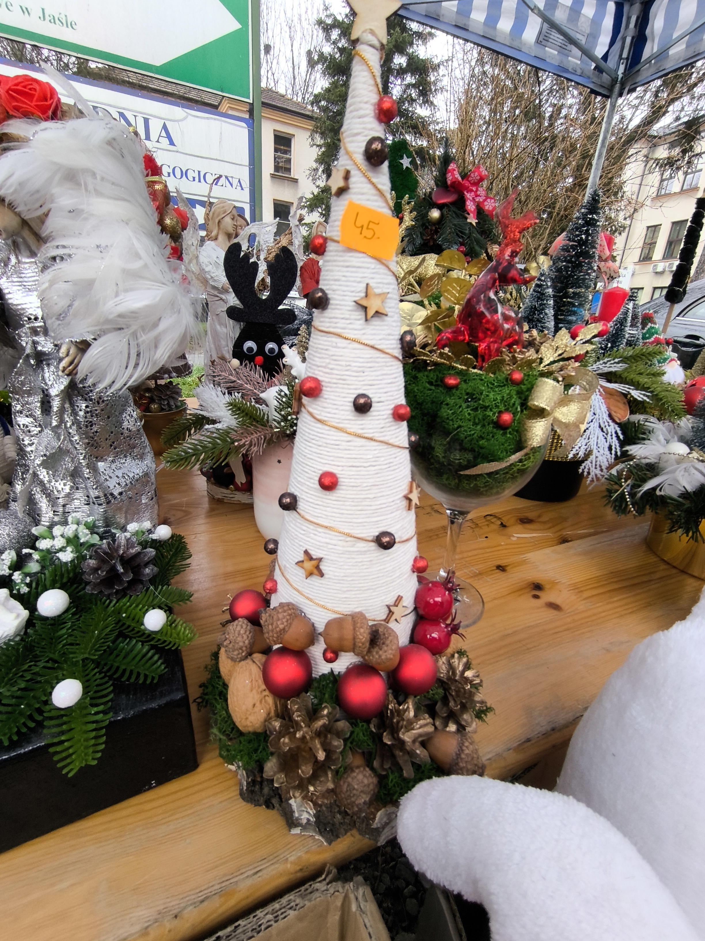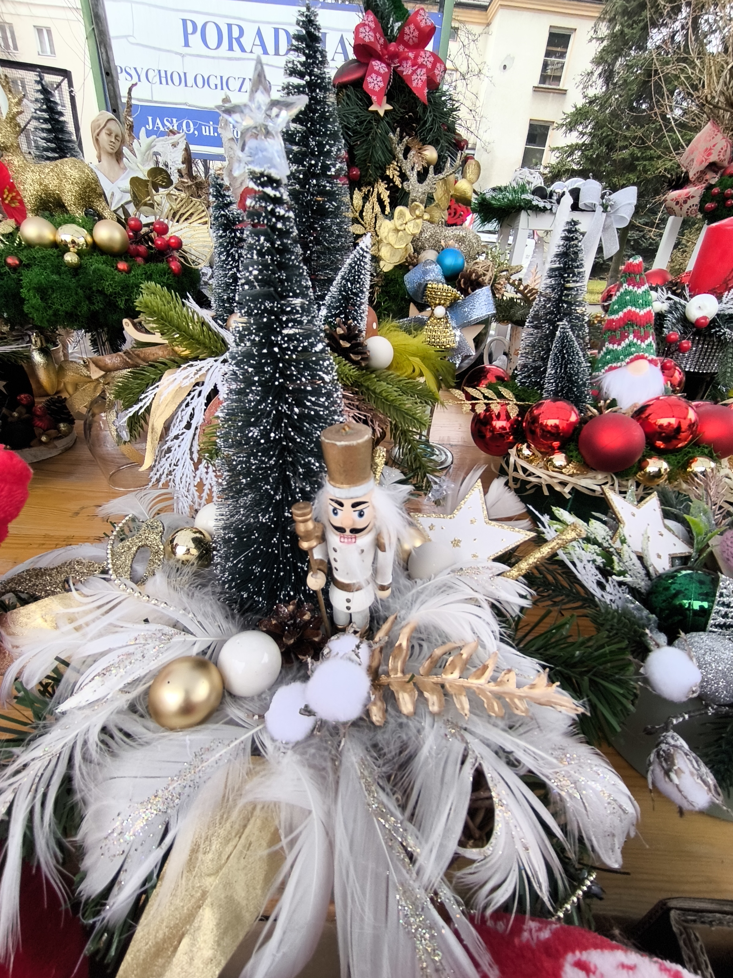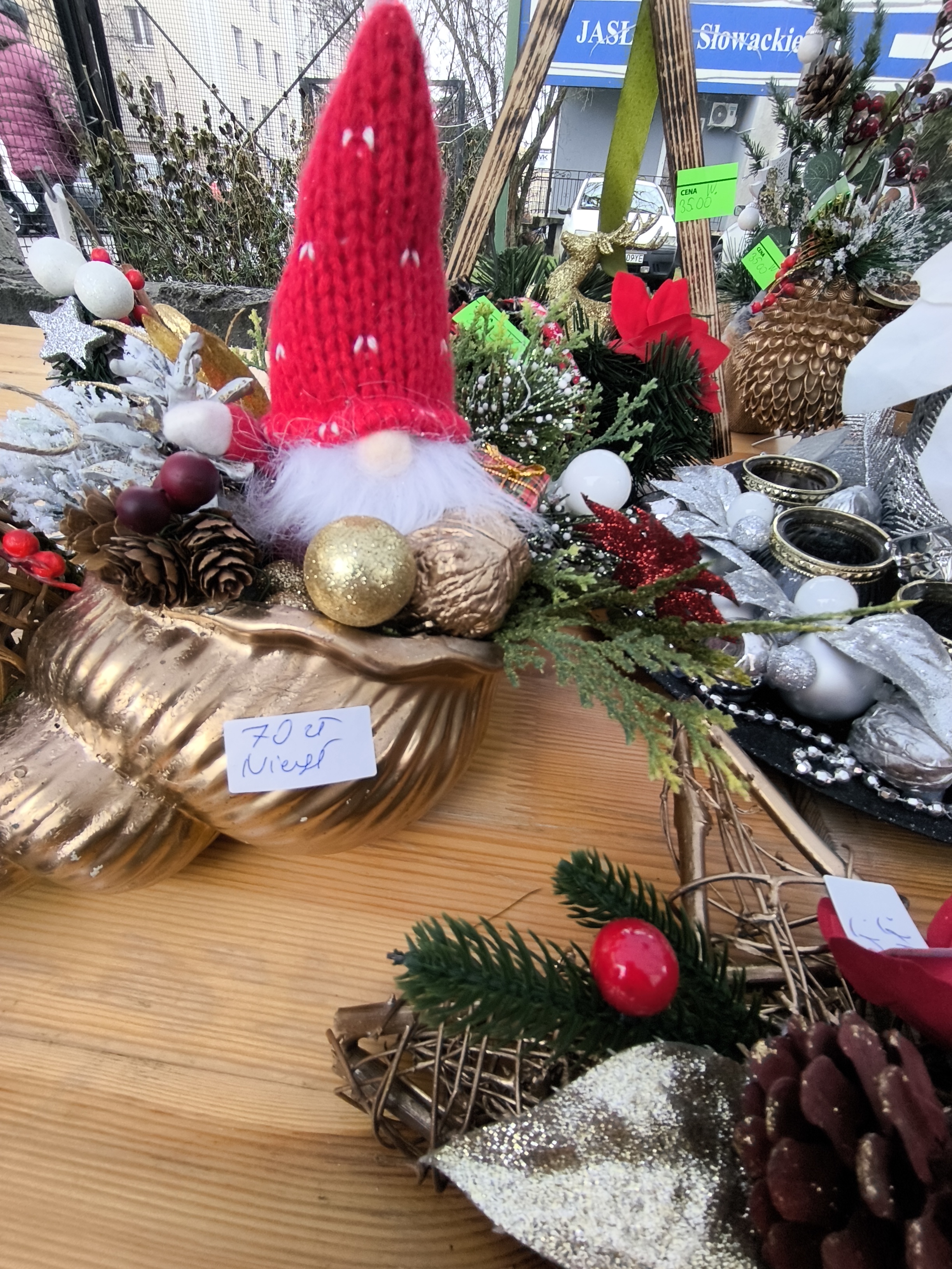 Zakupić można ręcznie wykonane ozdoby świąteczne. Ozdoby wykonały Panie z Gminnego Ośrodka Kultury w Jaśle.