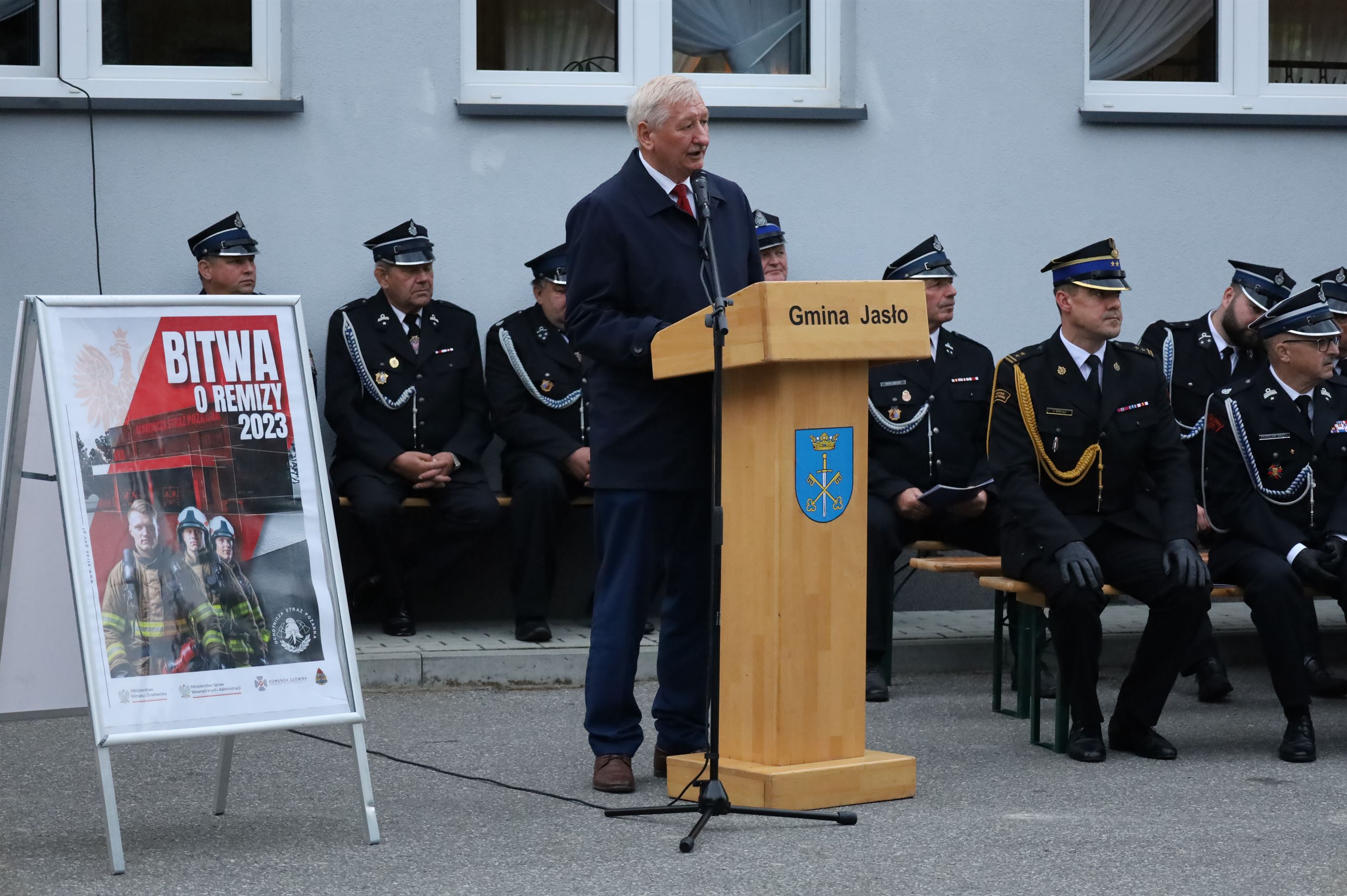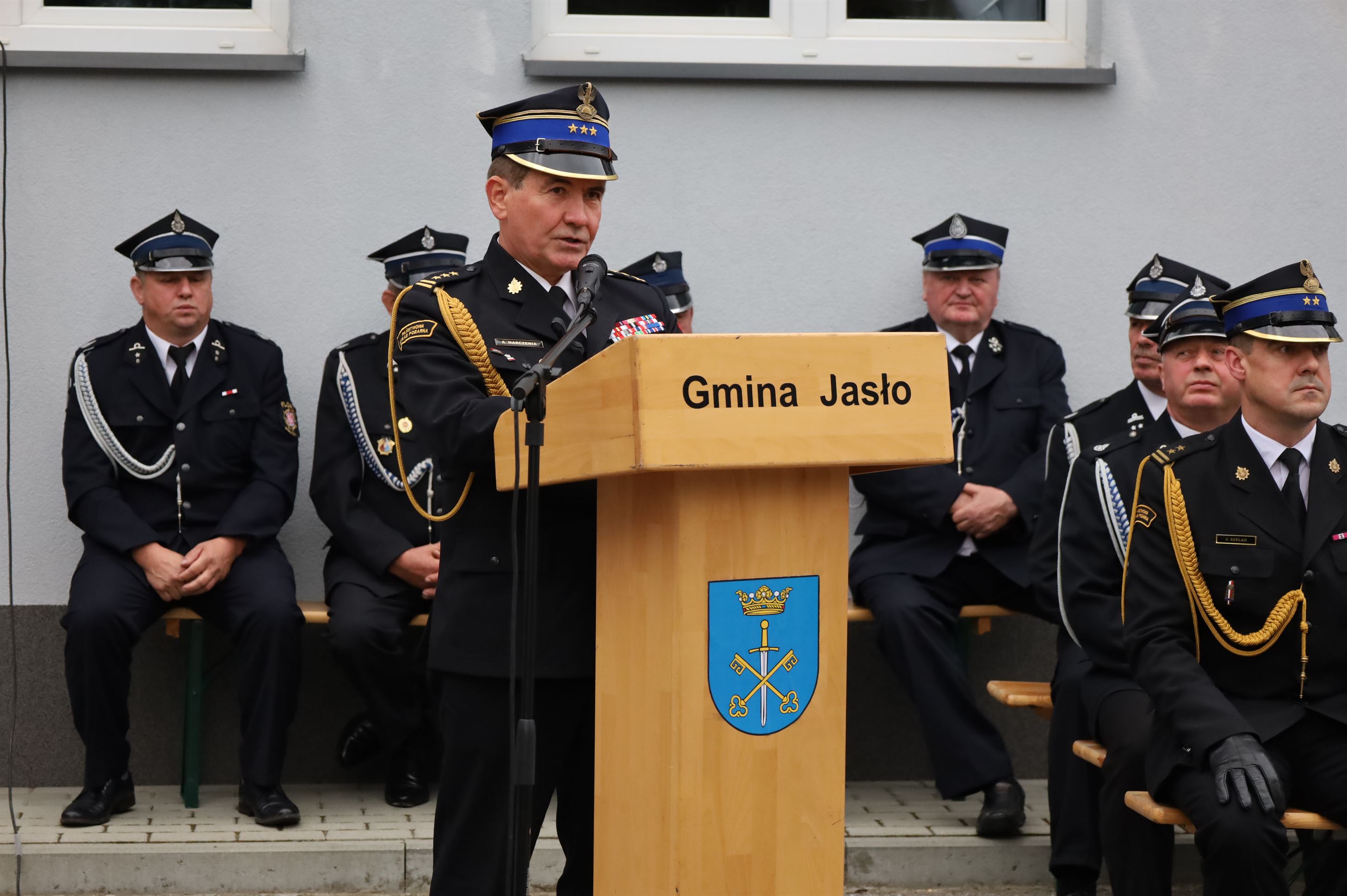 - To jest elitarne grono. Pozwoliłem sobie sięgnąć trochę do dokumentów. W Polsce jest trochę ponad 5 tysięcy takich jednostek. Jednostki, które są w Krajowym Systemie Ratowniczo-Gaśniczym mają bardzo ściśle określone zadania. Jednym z tych zadań i to głównym jest stanie na straży bezpieczeństwa wewnętrznego kraju. Stąd ta elitarność. To jest jedna strona medalu. Natomiast drugą stroną medalu jest to, że to wyróżnienie jest również zobowiązaniem i to bardzo poważnym zobowiązaniem. To nie jest tylko włączenie na kilka miesięcy. To jest czasowe włączenie, ale które ma skutkować tym, że jednostka będzie się rozwijać. Ma być jednostką dobrze zorganizowaną, mobilną, dobrze wyposażoną. Ja wiem, że powiecie to jest Twoja sprawa. Tak, to jest sprawa gminy i to jest też nasze zobowiązanie do tego, aby każda jednostka będąca w KSRG była jednostką dobrze wyposażoną w sprzęt, który tak naprawdę się Wam należy. To jest początek drogi. Życzę Wam na początku tej drogi, żebyście zawsze myśleli, że służba jest najważniejszą rzeczą. – powiedział włodarz Gminy Jasło.