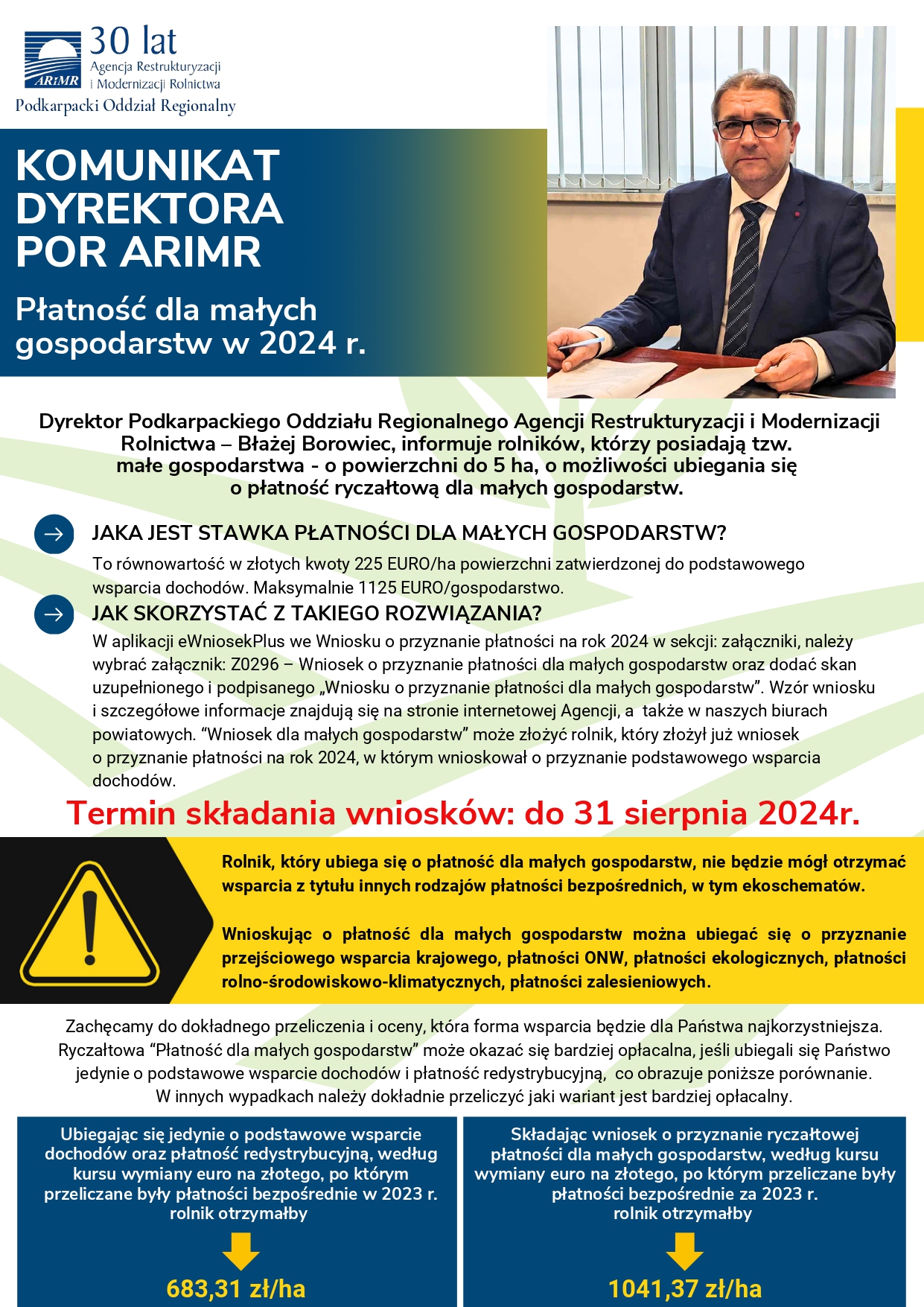 Komunikat Dyrektora Podkarpackiego Oddziału Regionalnego ARiMR w sprawie "Płatności dla małych gospodarstw w 2024 r."