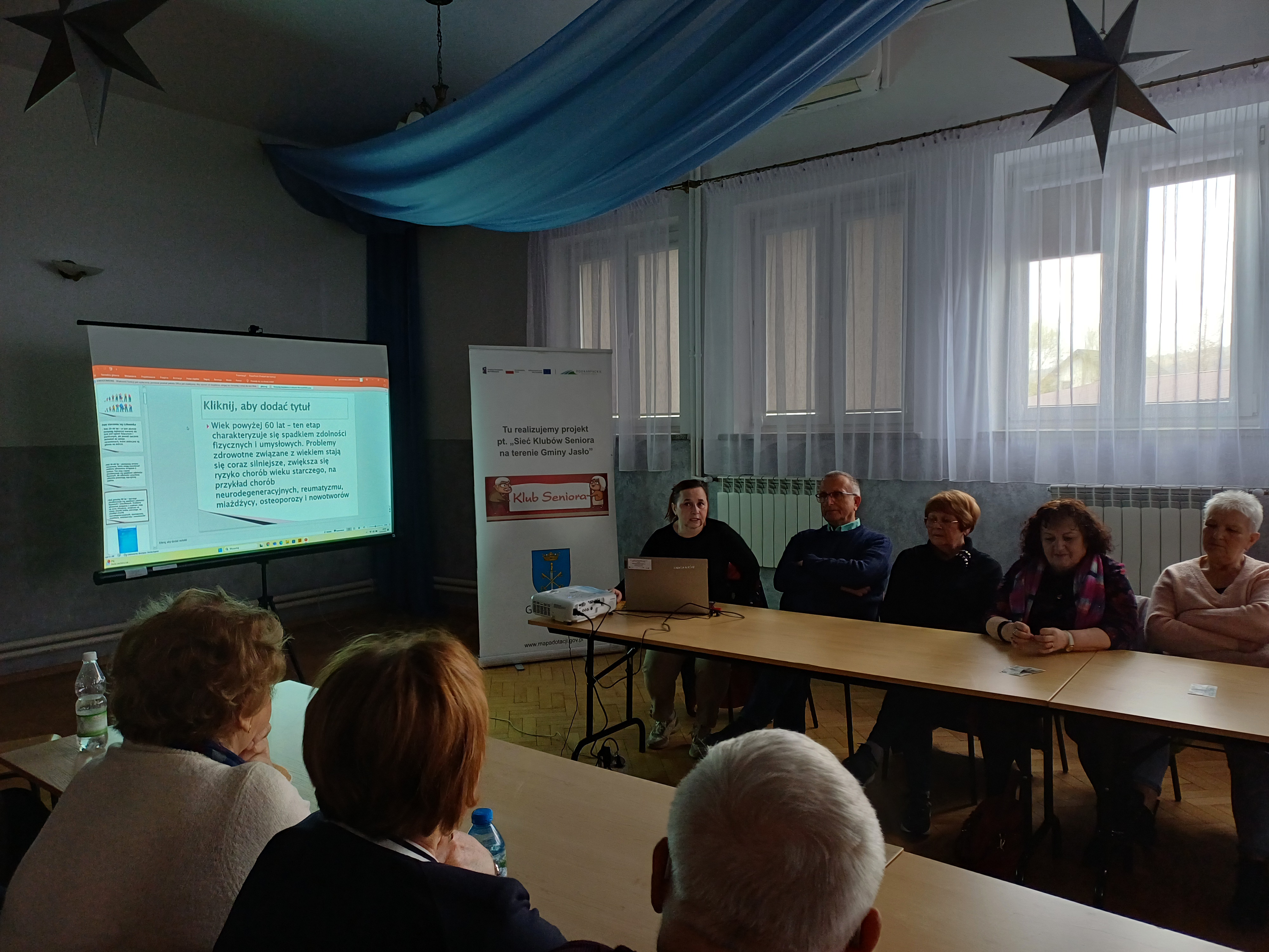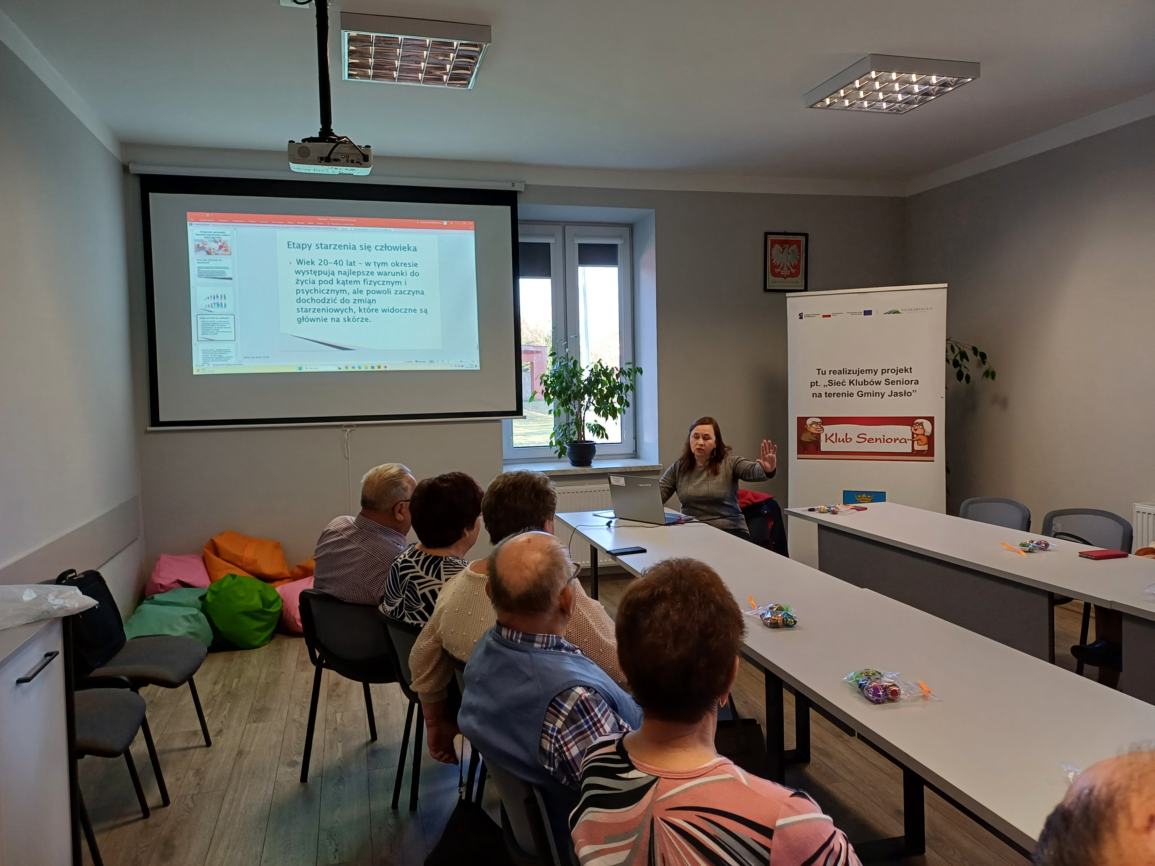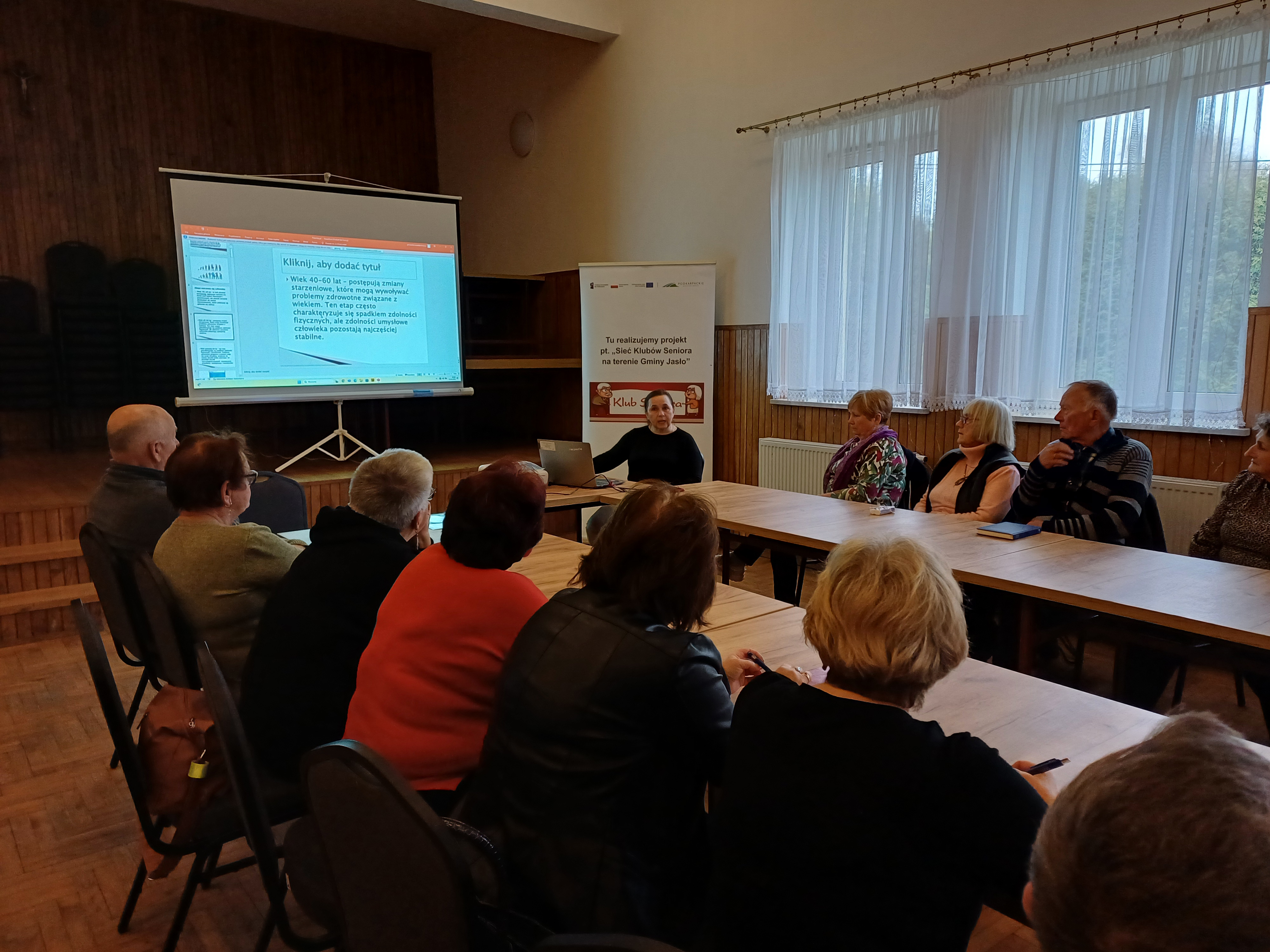 W świątecznym miesiącu kwietniu w Klubach Seniora z Gminy Jasło odbywały się, jak co miesiąc, spotkania z psychologiem, cotygodniowe zajęcia ruchowe, a także zajęcia edukacyjne o tematyce „Zrozumieć wiek dojrzały”. Te ostatnie prowadzone były przez posiadającą bogate doświadczenie w pracy w Hospicjum Domowym Panią Wiesławę Żółkoś, która podzieliła się z Klubowiczami nie tylko fachową wiedzą, ale również własnym, refleksyjnym doświadczeniem życiowym, co nadało spotkaniom szczególny charakter.