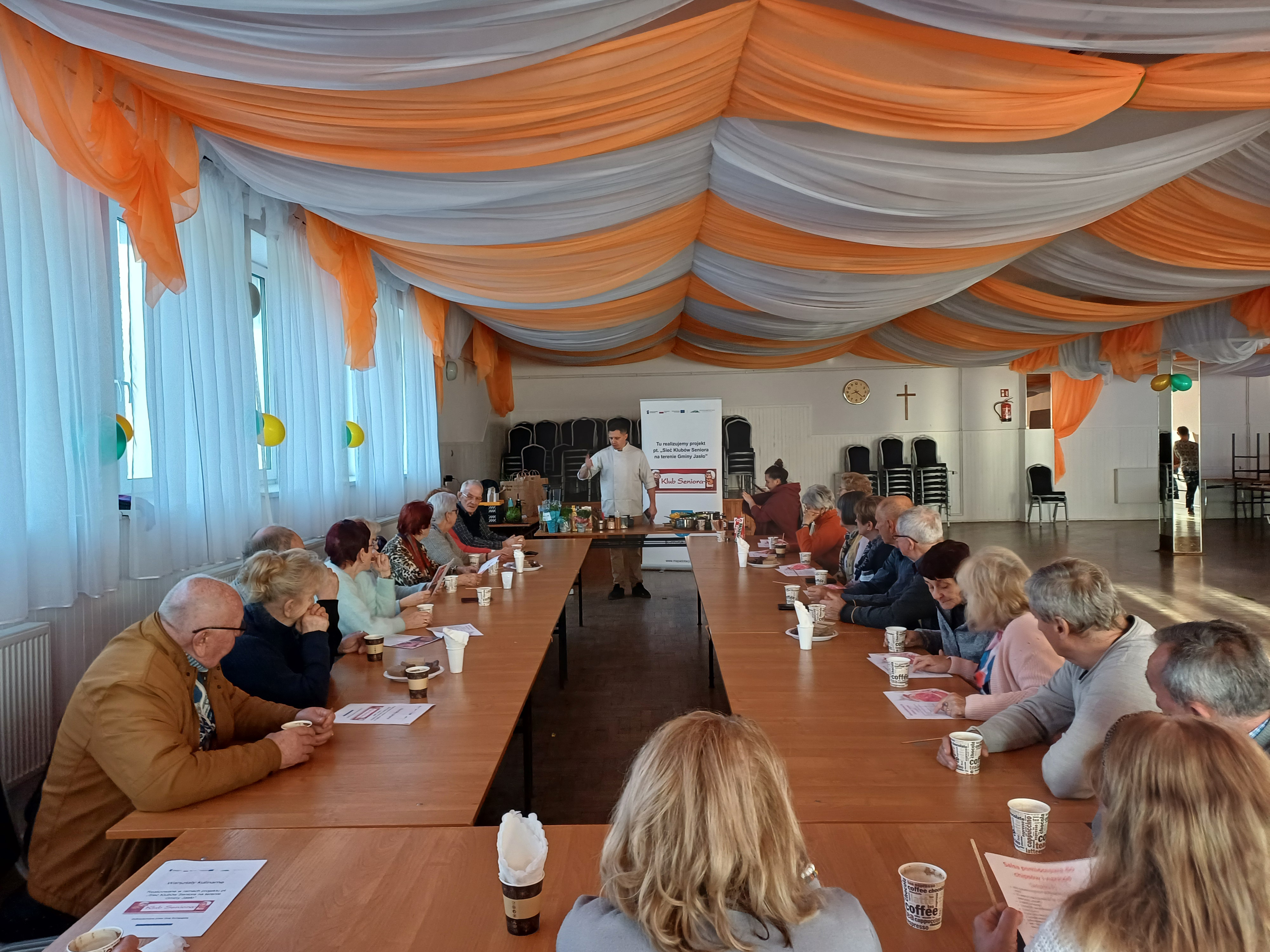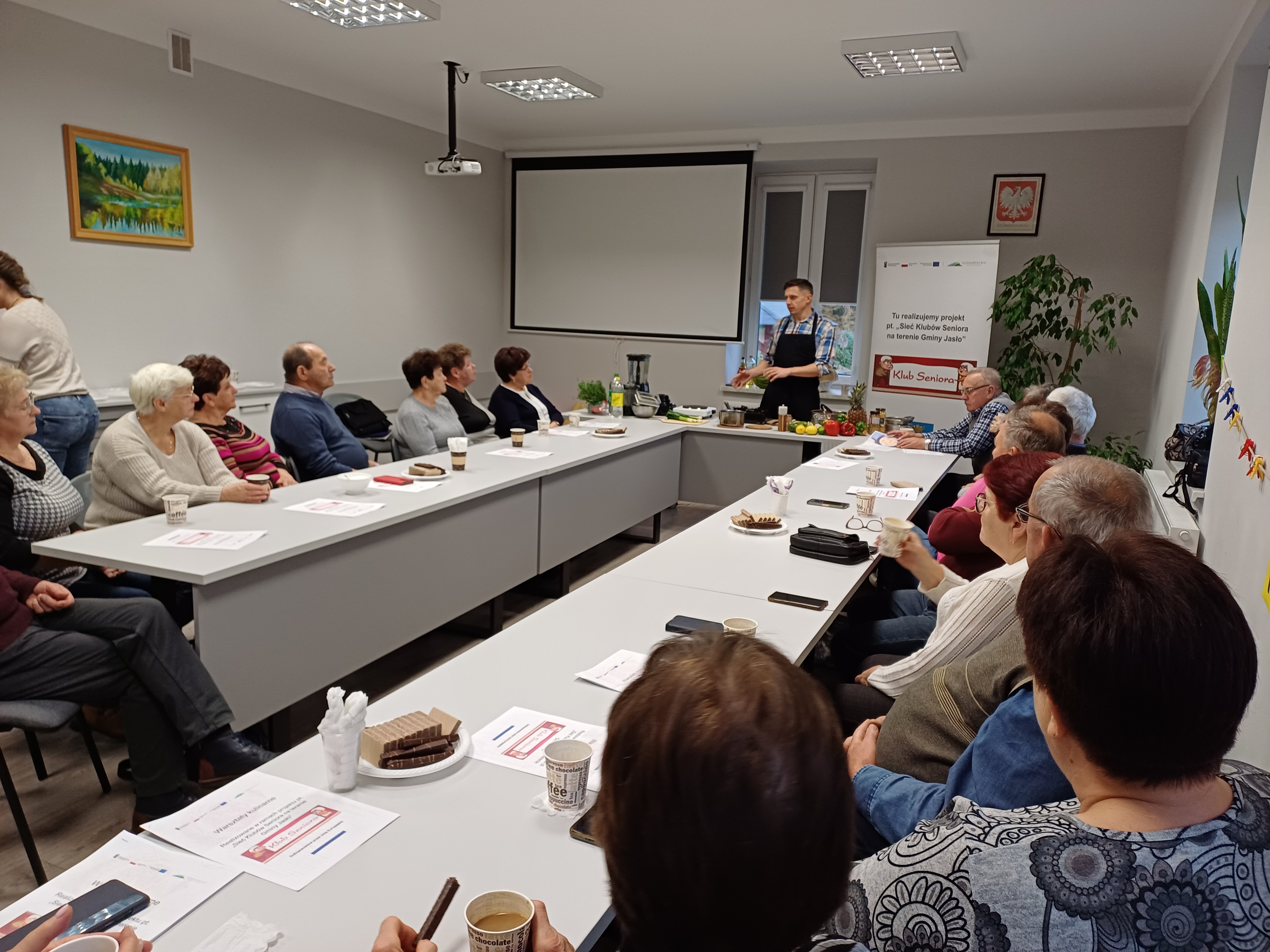 W dniach 12 - 16 listopada br. we wszystkich Klubach Seniora Gminy Jasło odbyły się Warsztaty Kulinarne, które cieszyły się bardzo wysoką frekwencją i zainteresowaniem uczestników. Podopieczni podczas ich trwania poznali technikę obróbki i przygotowania steka. Odkryli tajniki przyrządzania humusu, a także poznali Salsę - jest to potrawa kuchni meksykańskiej. Rodzaj zimnego, często pikantnego sosu ze zmiksowanych lub drobno pociętych warzyw z przyprawami. Warsztaty, w których podopieczni brali udział były bardzo owocne i z pewnością wspomogą wprowadzenie zdrowych nawyków żywieniowych wśród naszych seniorów.