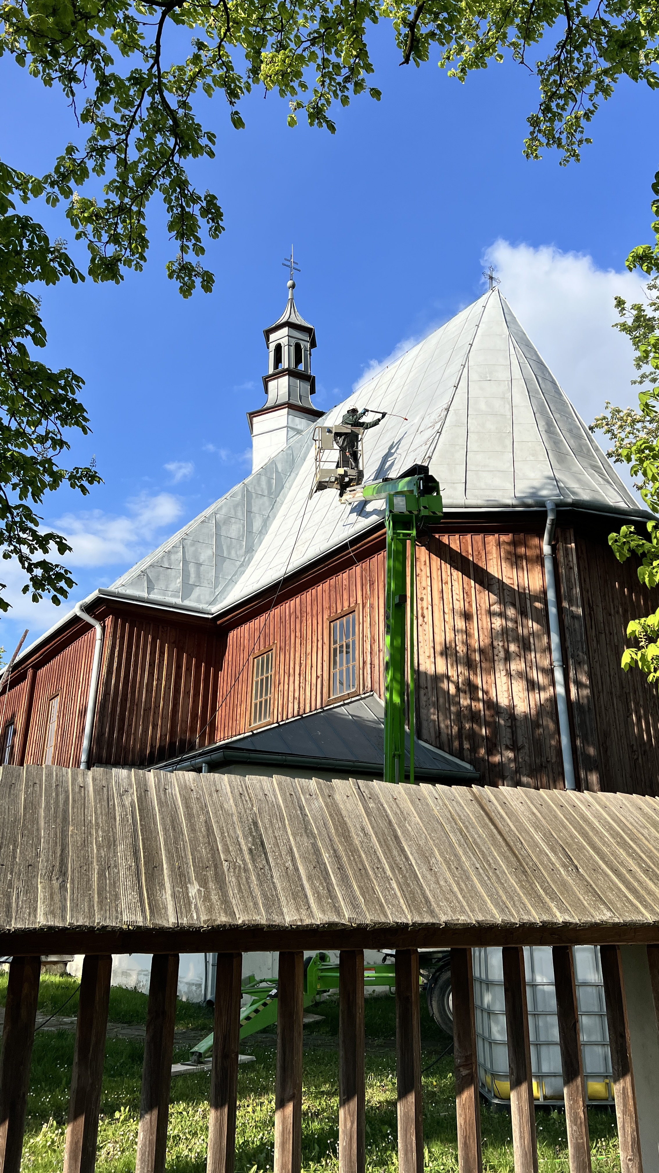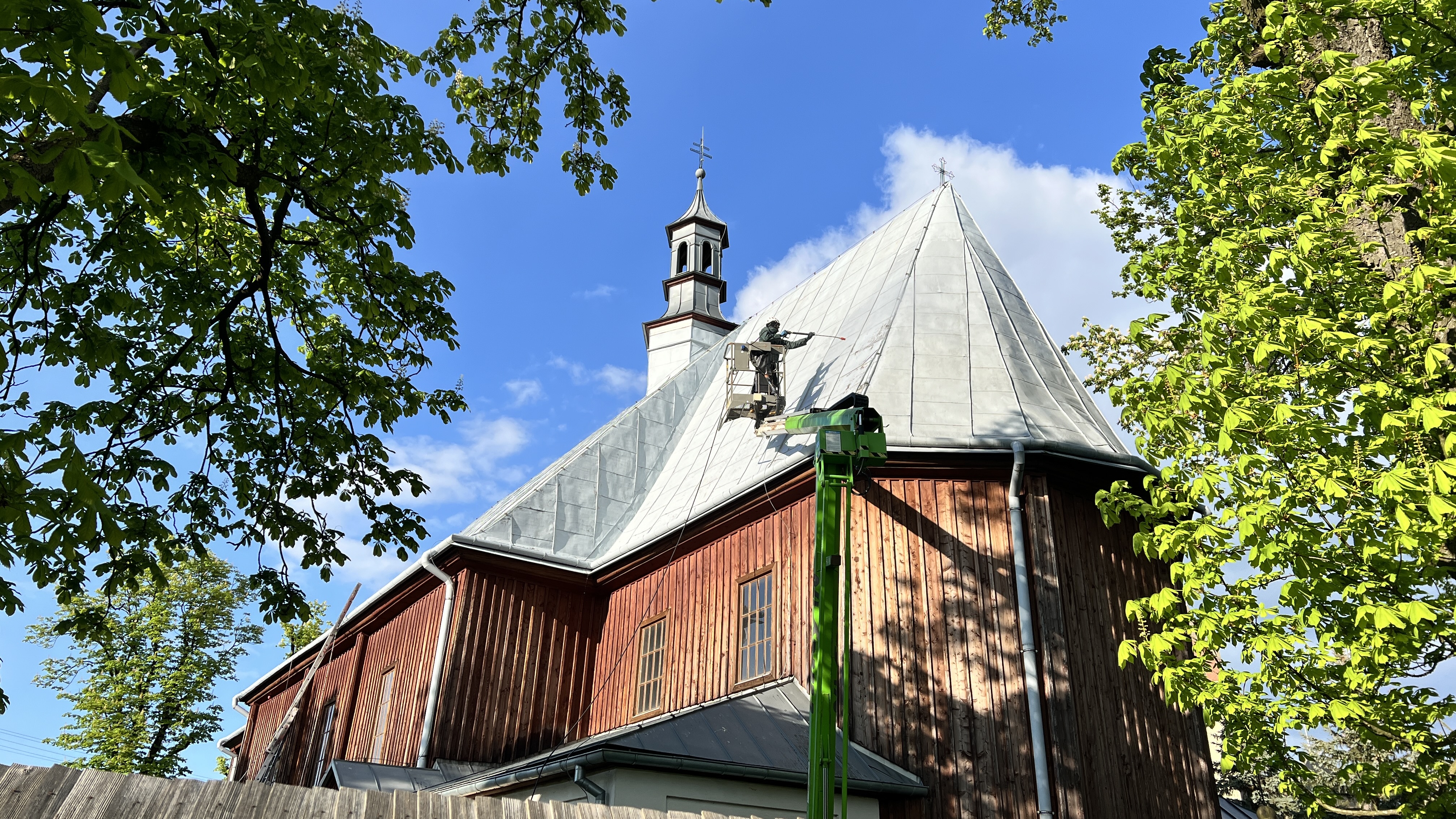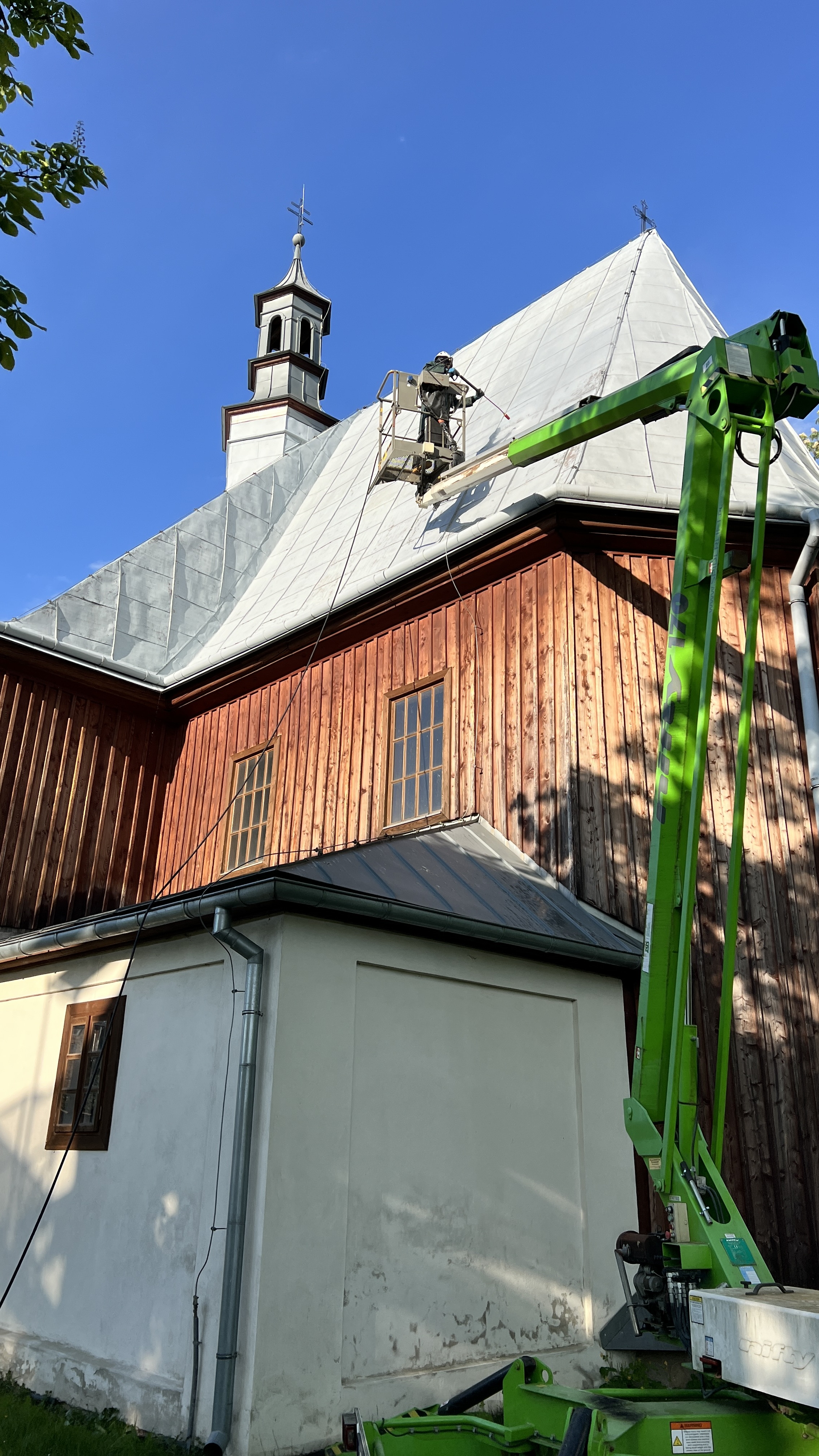 Malowanie dachu i remont dzwonnicy przy zabytkowym kościele w Szebniach