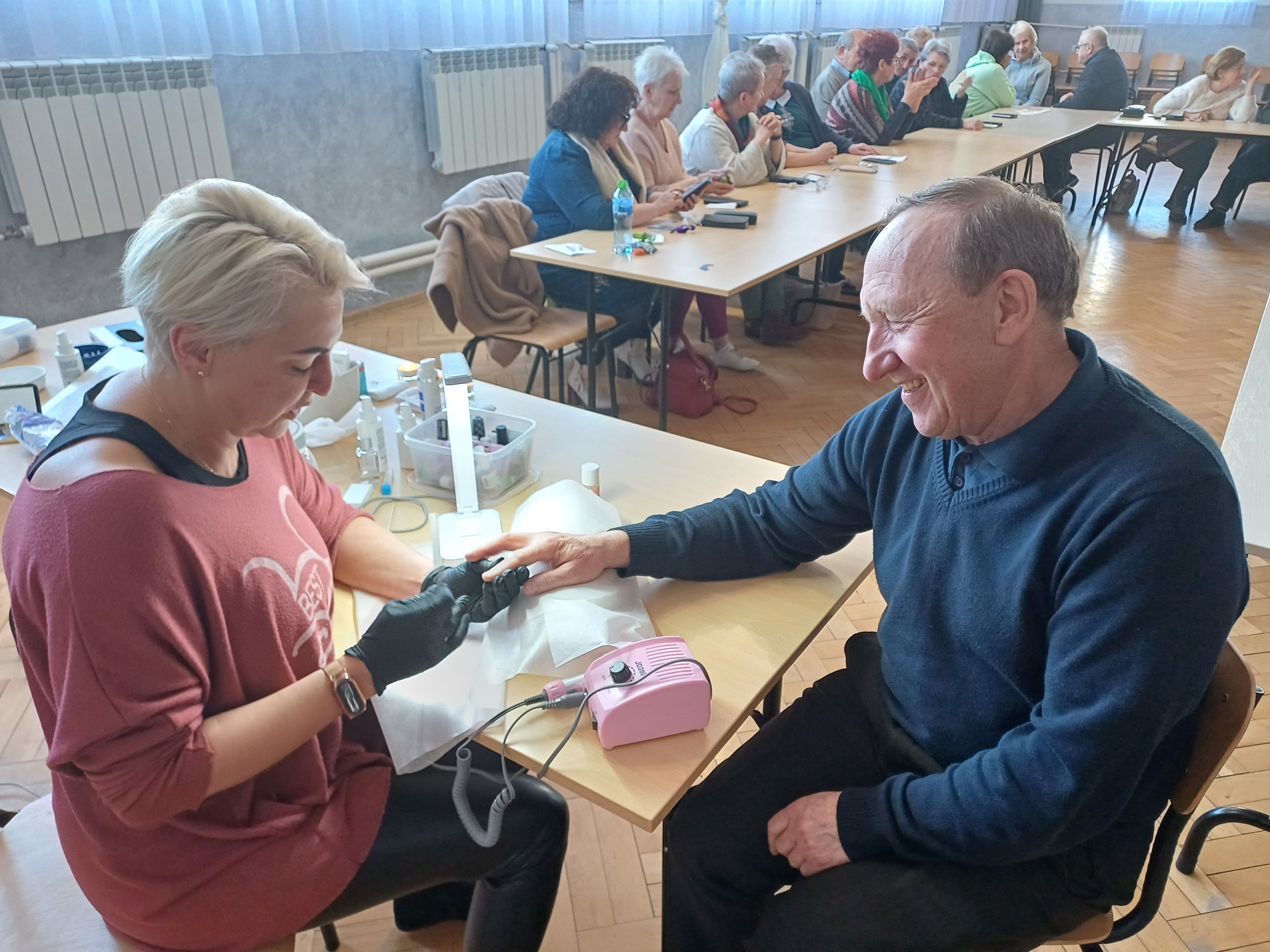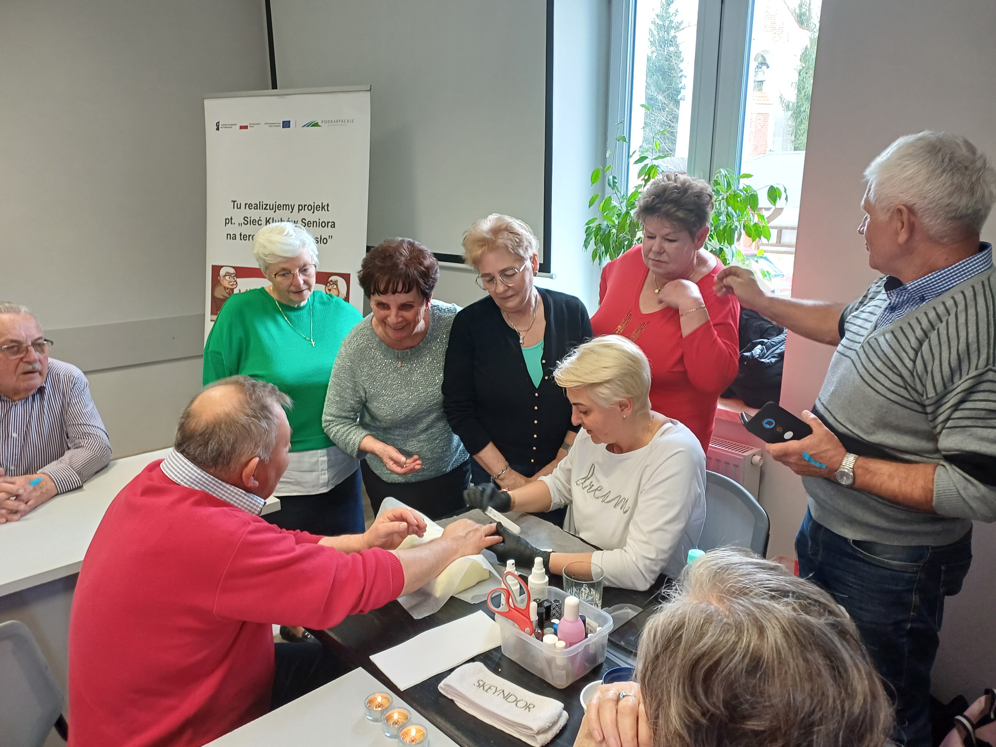 Zajęcia edukacyjne prowadziła kosmetyczka Pani Jolanta Jurasz. Przekazała uczestnikom cenną widzę na temat dbania o wygląd dłoni i paznokci, a także omówiła temat oraz przekazała technik samodzielnego wykonania masażu twarzy i szyi. Zajęcia przypadły do gustu zarówno Paniom jak i Panom. Oczywiście jak co miesiąc odbywały się spotkania z psychologiem oraz cotygodniowe zajęcia ruchowe, czyli popularna gimnastyka.
