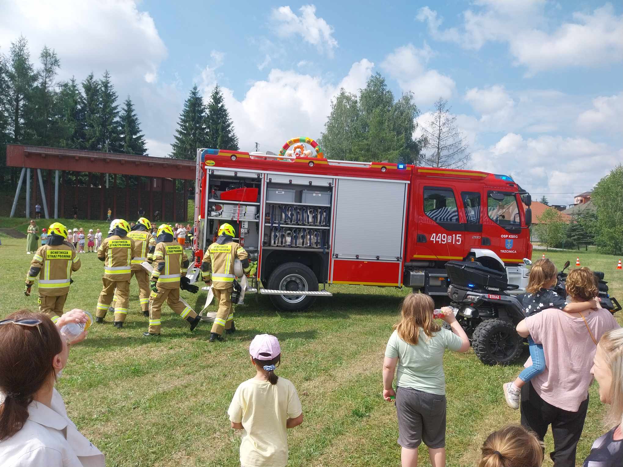 Zawody sportowe, gry i zabawy, dmuchańce, malowanie twarzy, prelekcja w wykonaniu funkcjonariuszy KPP w Jaśle, pokaz sprzętu ratowniczo-gaśniczego oraz niedźwiedź polarny rozdający lizaki to atrakcje, z których podczas pikniku mogły skorzystać dzieci i ich opiekunowie. Dostępna była też strefa pyszności z popcornem, watą cukrową, słodkościami i grillowaną kiełbasą.