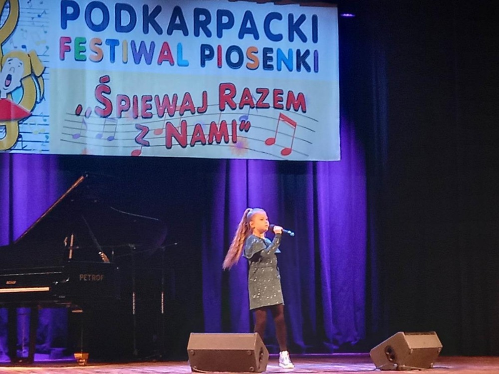 Z kolei 17 marca 2023r. w Centrum Kulturalnym w Przemyślu odbył się Finał XXXII Podkarpackiego Festiwalu Piosenki „Śpiewaj razem z nami”. Festiwal przebiegał dwuetapowo: najpierw odbyły się eliminacje w miastach powiatowych województwa podkarpackiego, następnie finał w Centrum Kulturalnym w Przemyślu. Trzy wokalistki z Szkoły Podstawowej w Szebniach i jedna ze Szkoły Podstawowej w Warzycach otrzymały nominację i wzięły udział w finale: Emilia Zielińska, Daria Szafarz, Julia Brzeżańska i Zuzanna Gacek. Z ogromną radością informujemy, że Daria Szafarz wyśpiewała III miejsce, a Julia Brzeżańska została wyróżniona w kategorii solistów 6-9 lat. Uczennice reprezentowały Szkołę Podstawową w Szebniach.