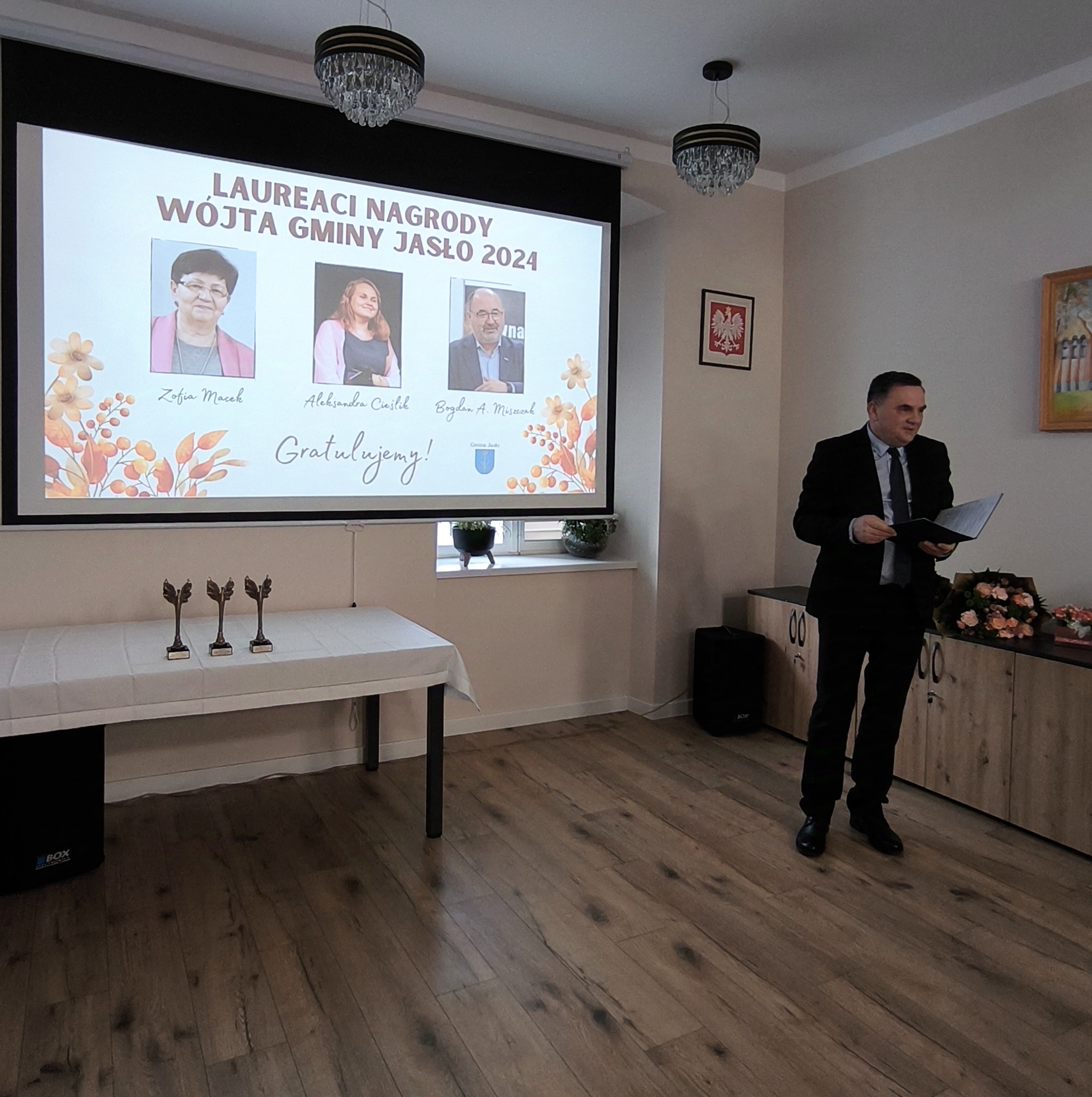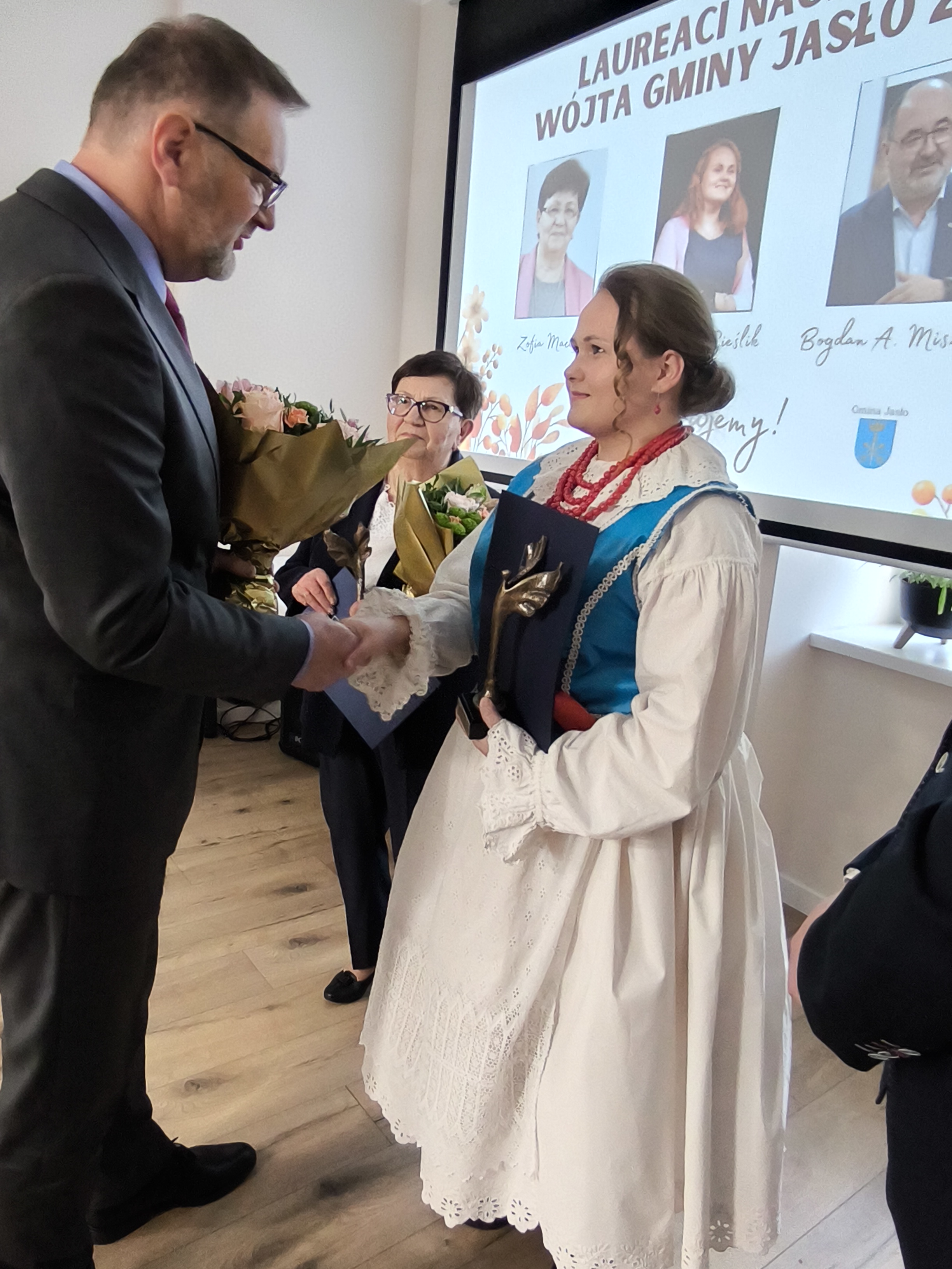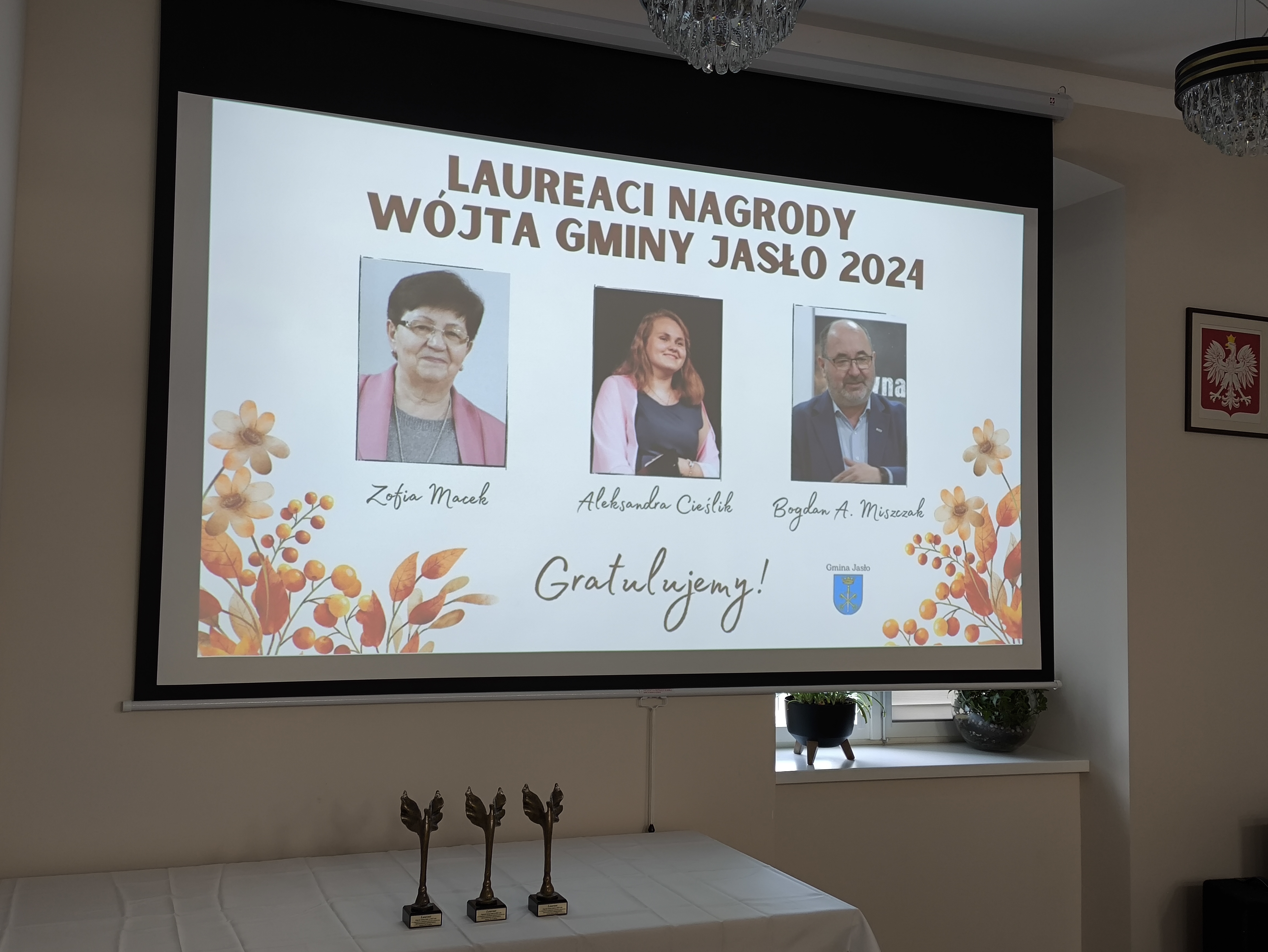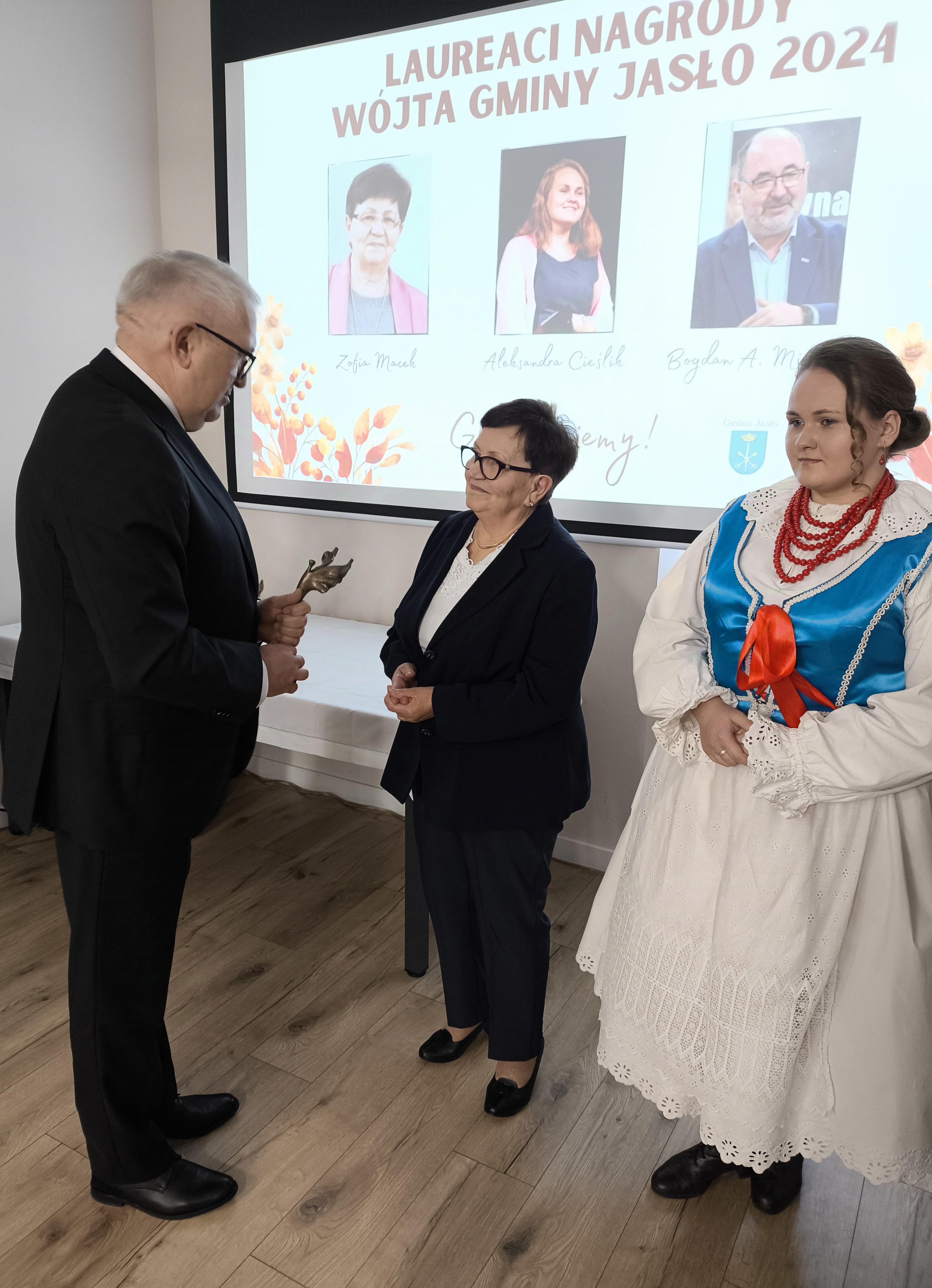Zofia Macek – pisarka, autorka publikacji historycznych związanych z Gminą Jasło, a także serii bajek dla dzieci, Aleksandra Cieślik – śpiewaczka i skrzypaczka związana z Kapelą Ludową Trzcinicoki, Bogdan Miszczak – producent filmowy, twórca dokumentów fabularyzowanych opowiadających o losach wybitnych Polaków pochodzących z Podkarpacia, związanych również z Gminą Jasło, zostali laureatami Nagrody Wójta Gminy Jasło w roku 2024 za osiągnięcia w dziedzinie twórczości artystycznej, upowszechniania i ochrony kultury.