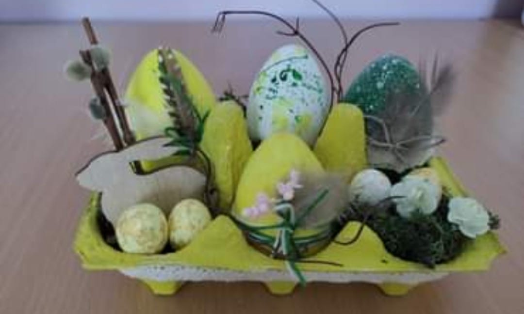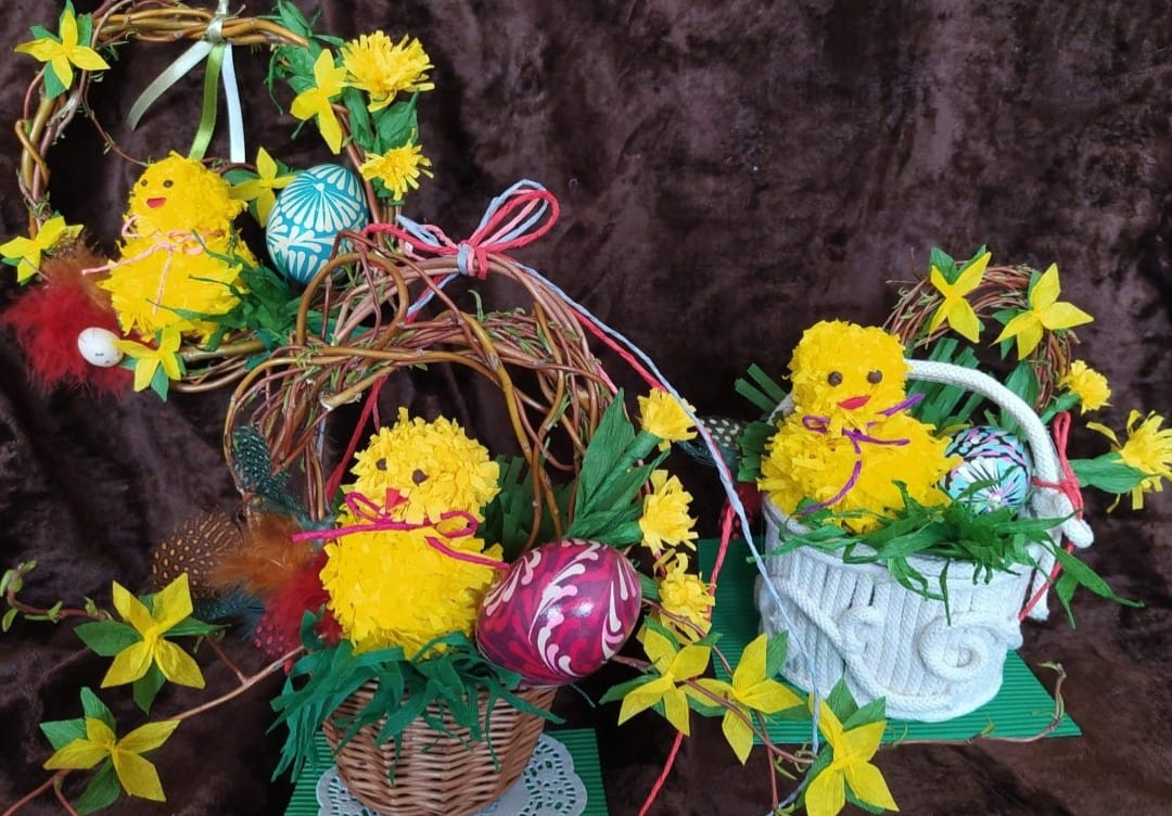 Stroiki wielkanocne wykonane przez świetlice Gminnego Ośrodka Kultury w Jaśle.