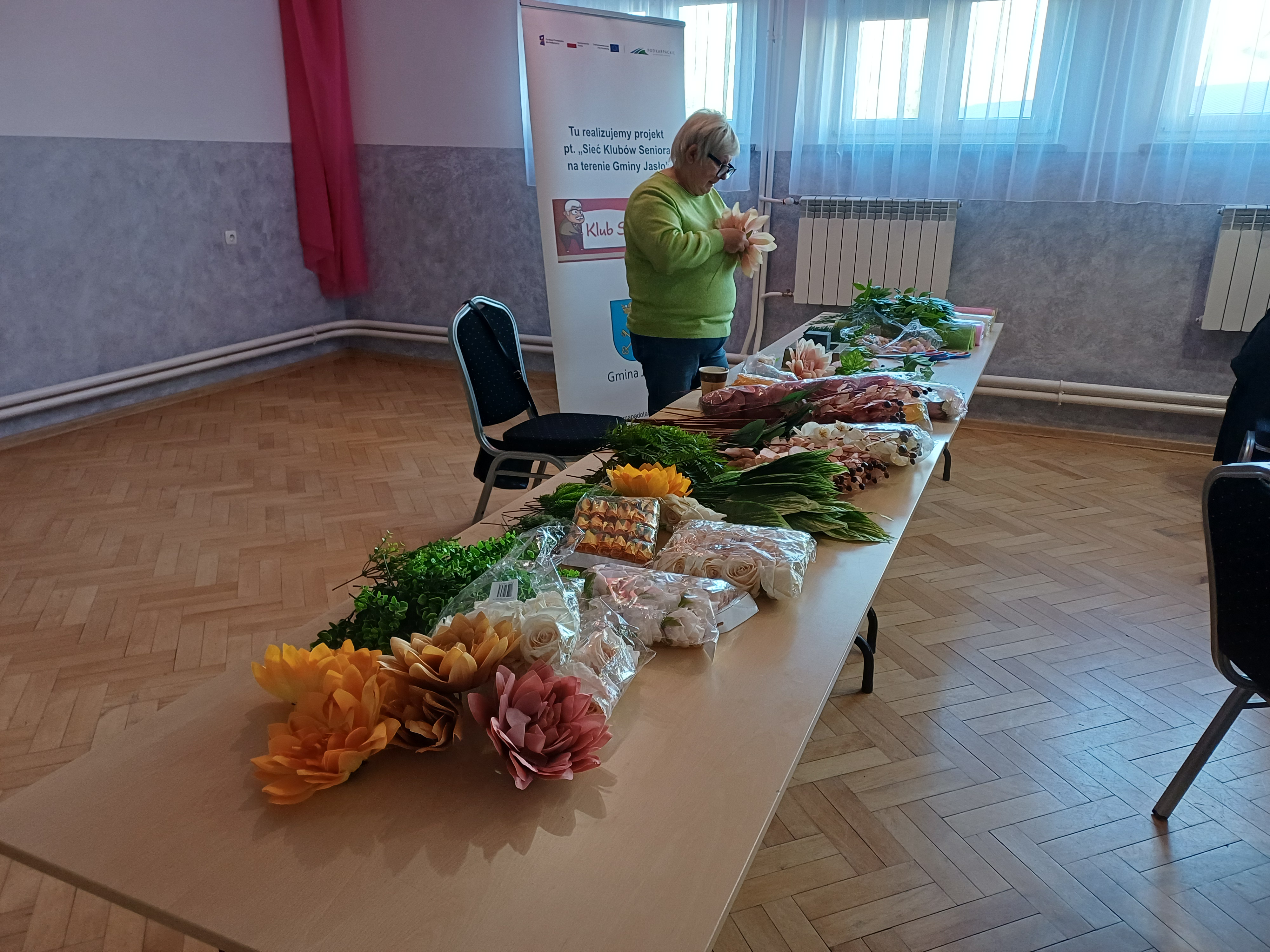 W drugiej połowie października w Klubach Seniora Gminy Jasło odbyły się warsztaty artystyczne, poświęcone przygotowaniu kompozycji kwiatowych z myślą o zbliżającym się Święcie Zmarłych. Uczestnicy mieli okazję nauczyć się tworzenia trwałych dekoracji z wykorzystaniem różnych materiałów oraz poznali różnorodne techniki, takie jak praca z floretem, mocowanie elementów klejem oraz tworzenie stabilnych form. Zajęcia cieszyły się ogromnym zainteresowaniem klubowiczów, którzy aktywnie uczestniczyli w tworzeniu dekoracji pod czujnym okiem przedstawicielki firmy ISOFT z Rzeszowa, odpowiedzialnej za prowadzenie warsztatów. Materiały do dekoracji zostały dostarczone przez wspomnianą firmę.