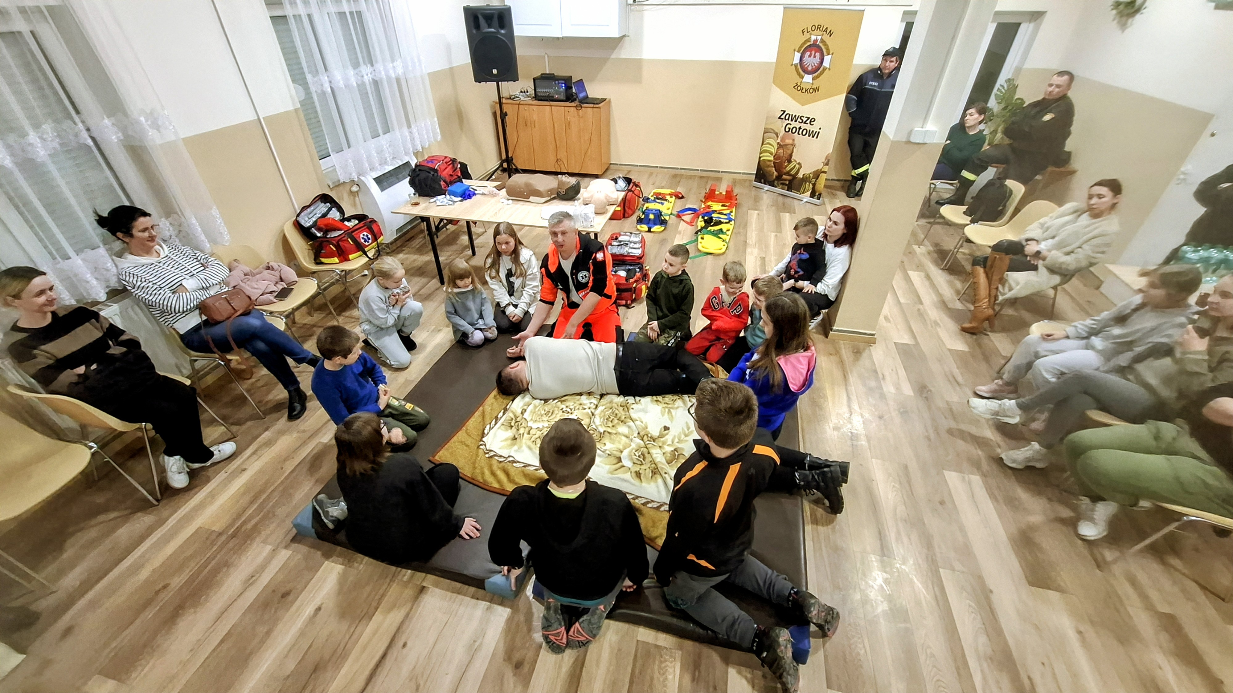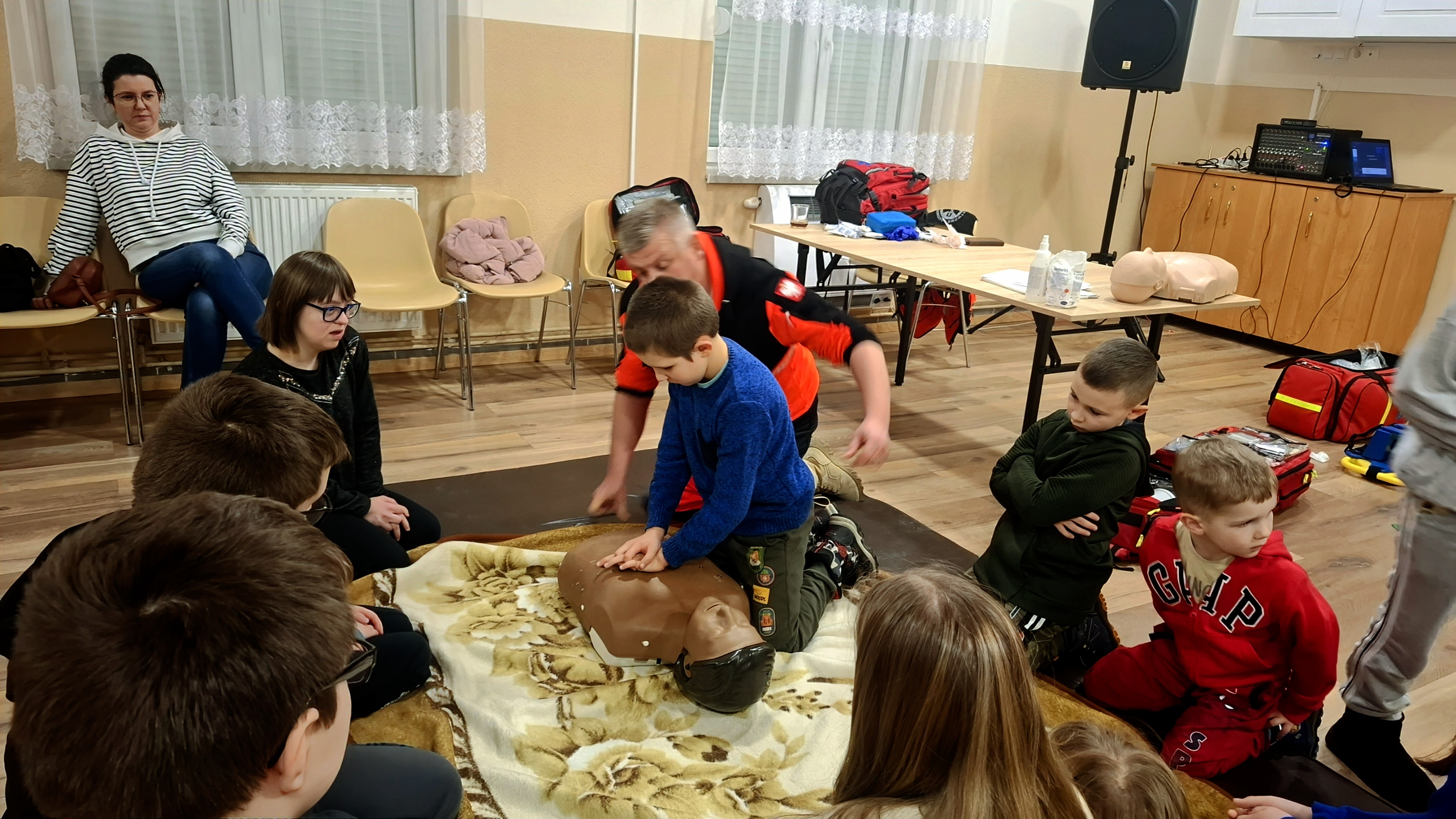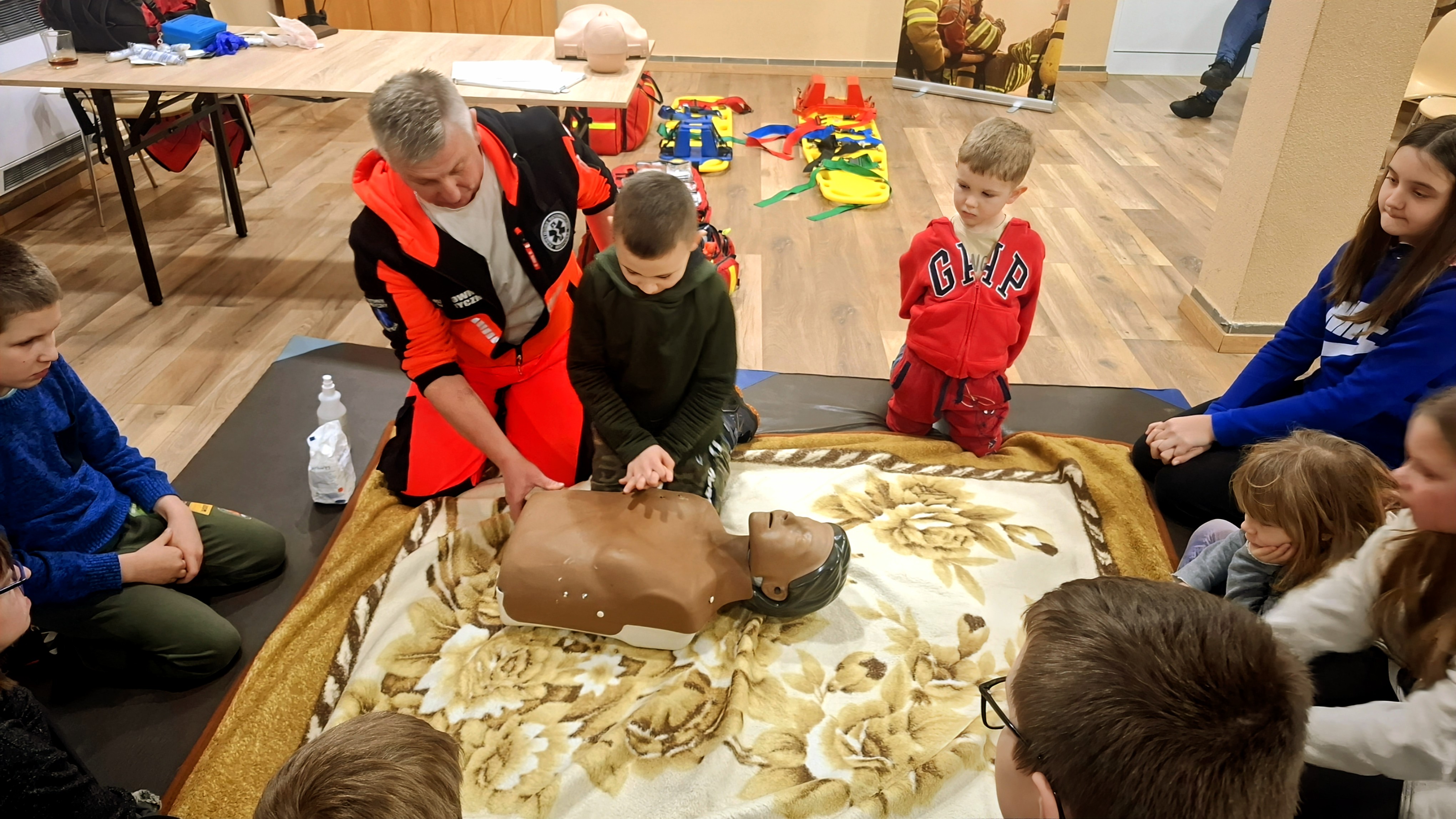 Pokaz poprowadził doświadczony ratownik medyczny Pan Mariusz , który w przystępny sposób przekazał uczestnikom niezbędną wiedzę z zakresu pierwszej pomocy. Podczas zajęć omówiono wszystkie kluczowe aspekty udzielania pomocy w nagłych przypadkach, takie jak: