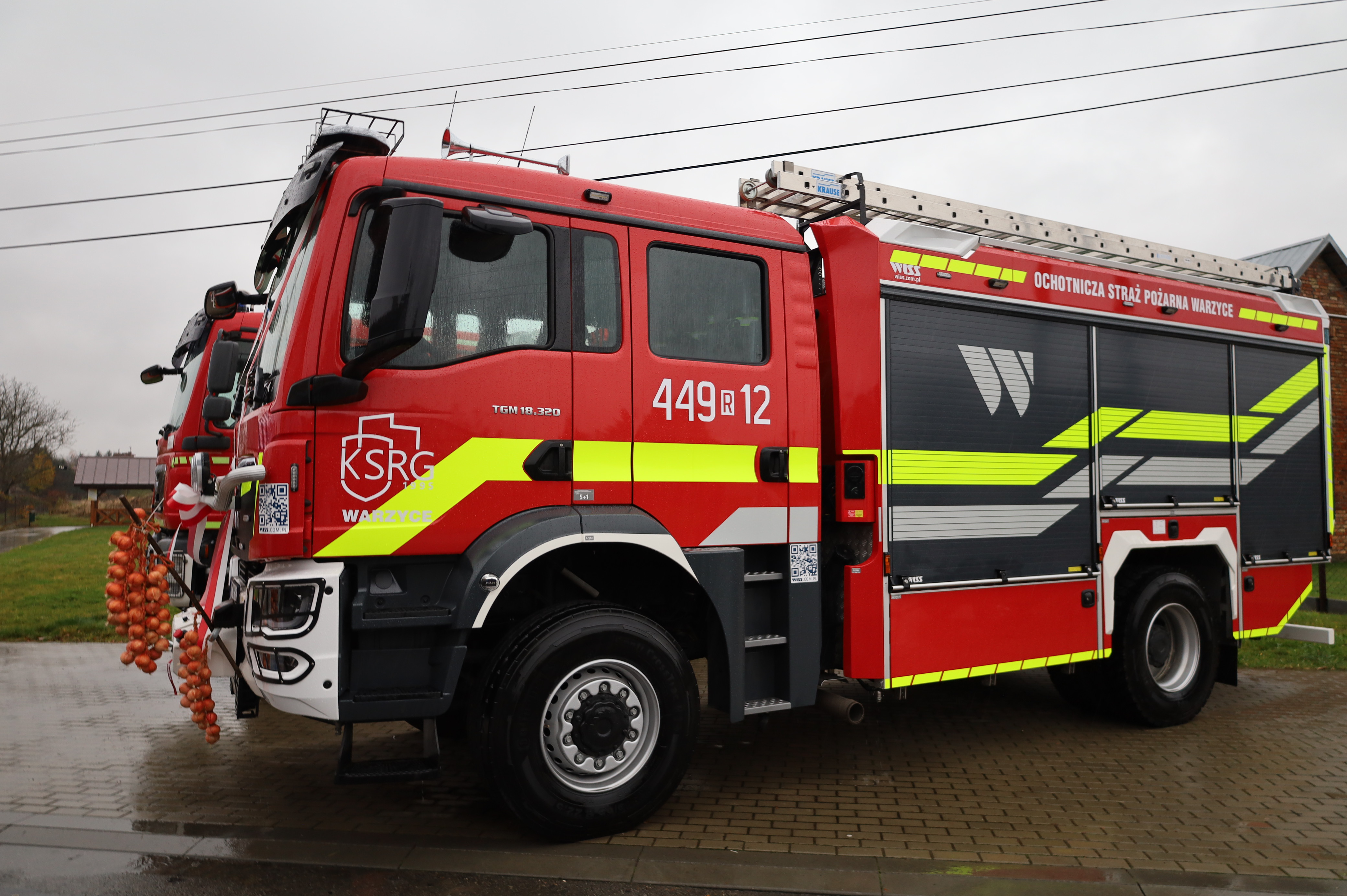 Pojazd to nowy średni samochód ratowniczo - gaśniczy na podwoziu MAN TGM 18.320 o napędzie 4x4, posiada jednomodułową kabinę 6 osobową. Samochód wyposażony jest w zbiornik wody o pojemności 4000 l wody oraz zbiornik środka pianotwórczego o pojemności 400l. Posiada autopompę o wydajności 2350 l/min, działko wodno-pianowe oraz linię szybkiego natarcia. Fabrycznie nowy samochód wyprodukowany w 2025 r., został zakupiony za kwotę 1 377 600,00zł z czego 500 000 zł to dofinansowanie Komendy Głównej Państwowej Straży Pożarnej. Pozostała kwota to dotacja dla jednostki OSP Warzyce z budżetu Gminy Jasło w wysokości 877 600,00 zł.