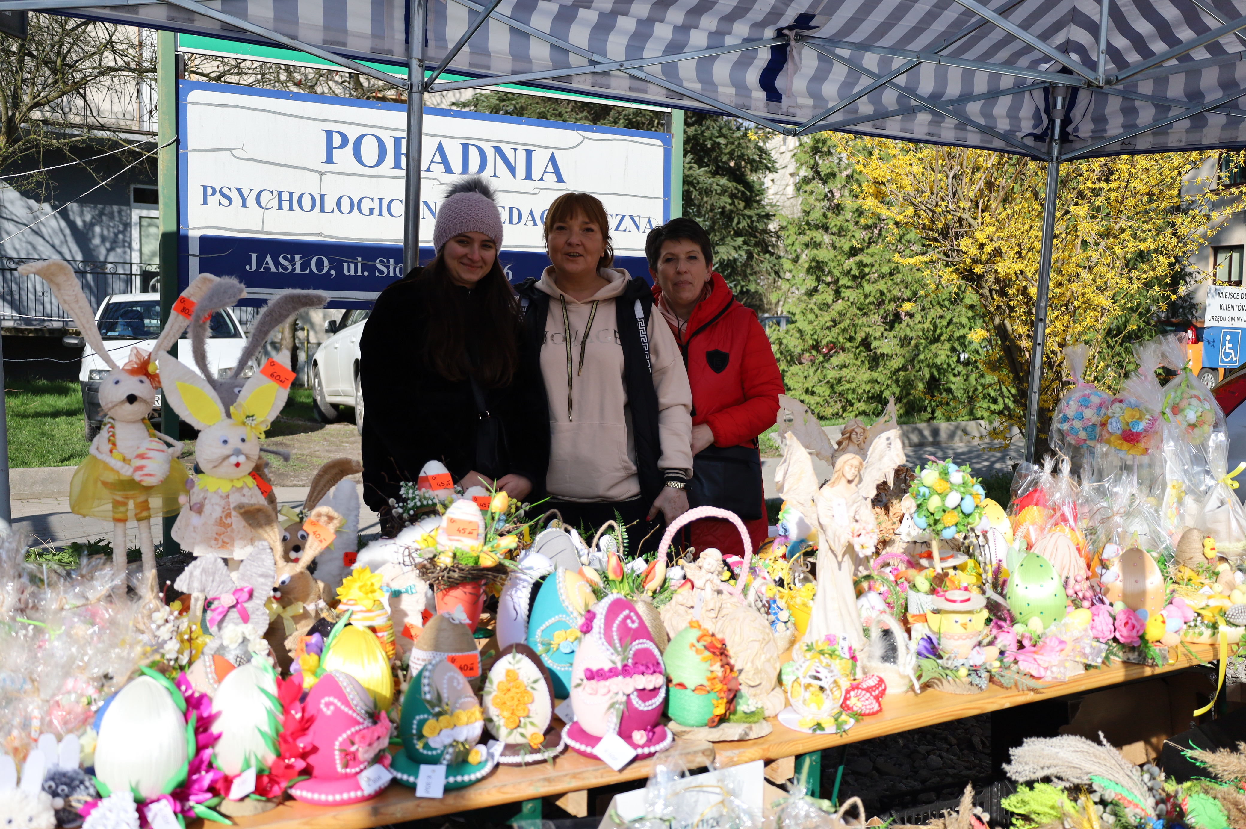 Zapraszamy na kiermasz wielkanocny przy Urzędzie Gminy Jasło. Panie z Gminny Ośrodek Kultury w Jaśle przygotowały świąteczne ozdoby.