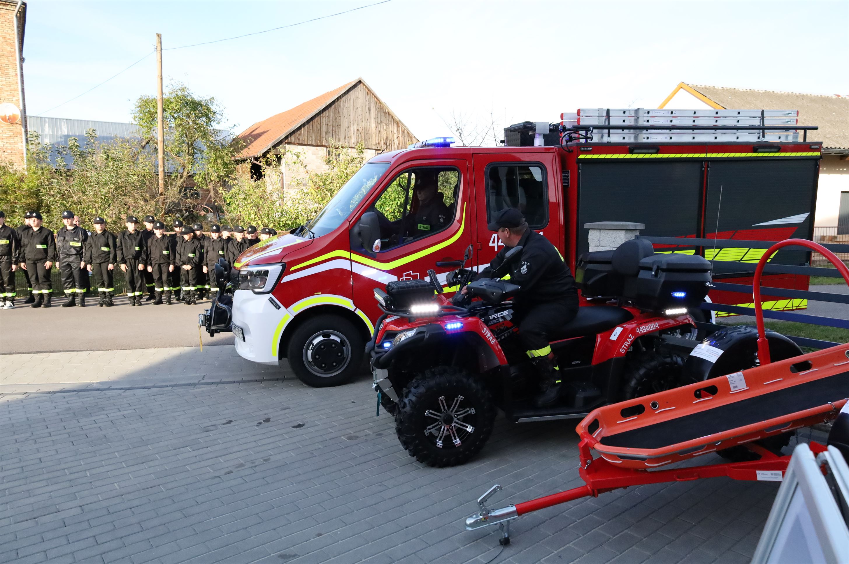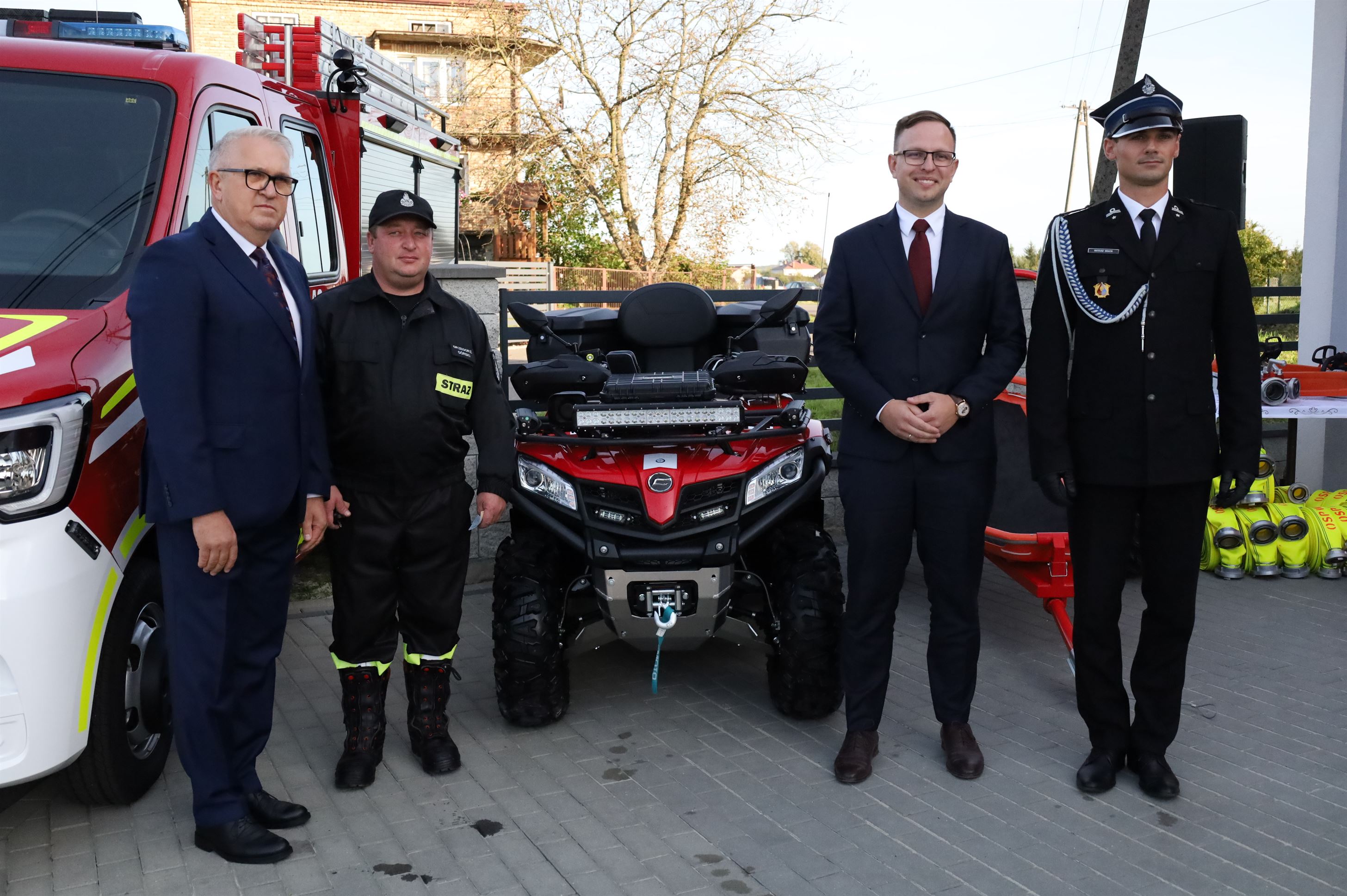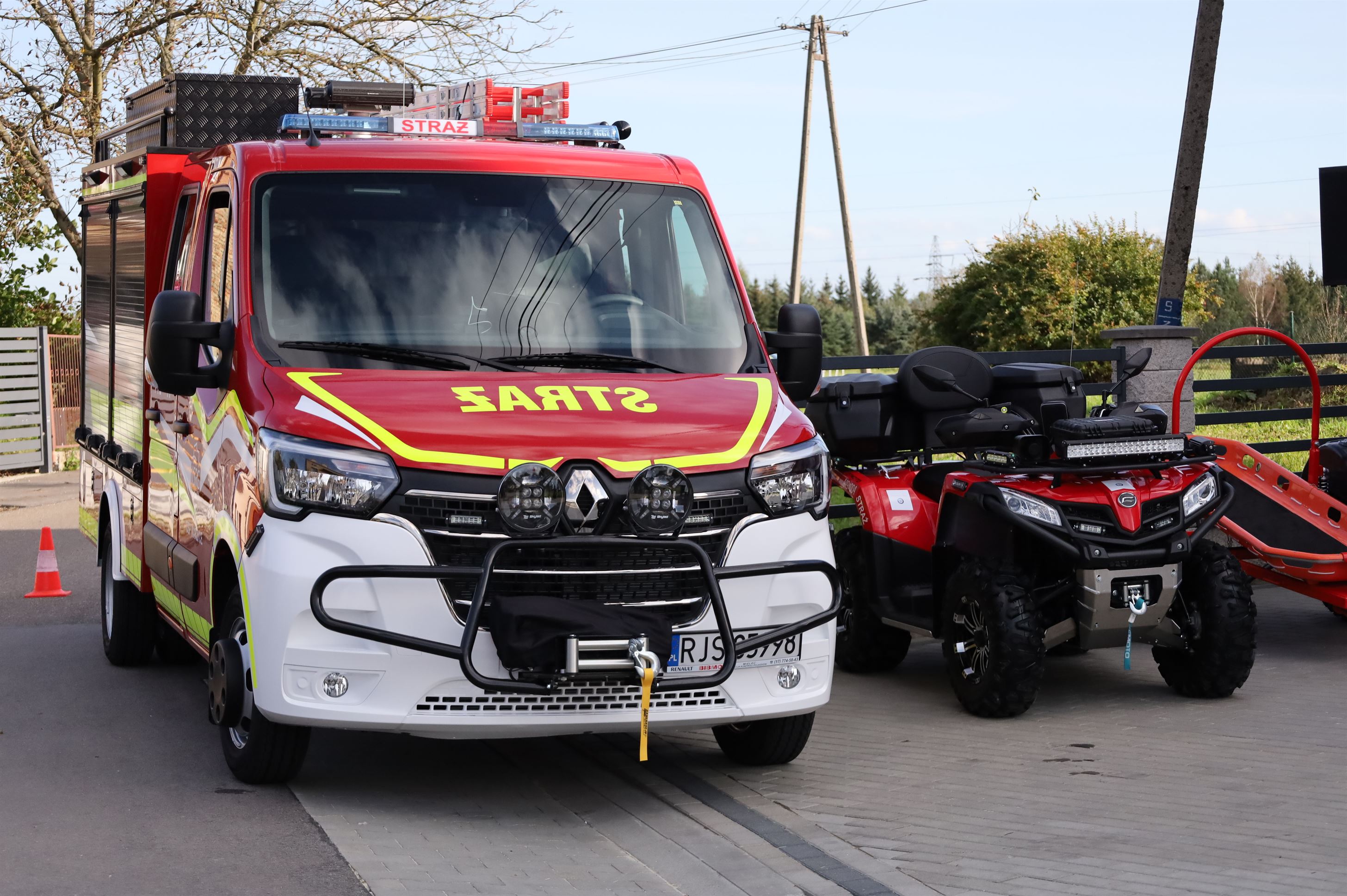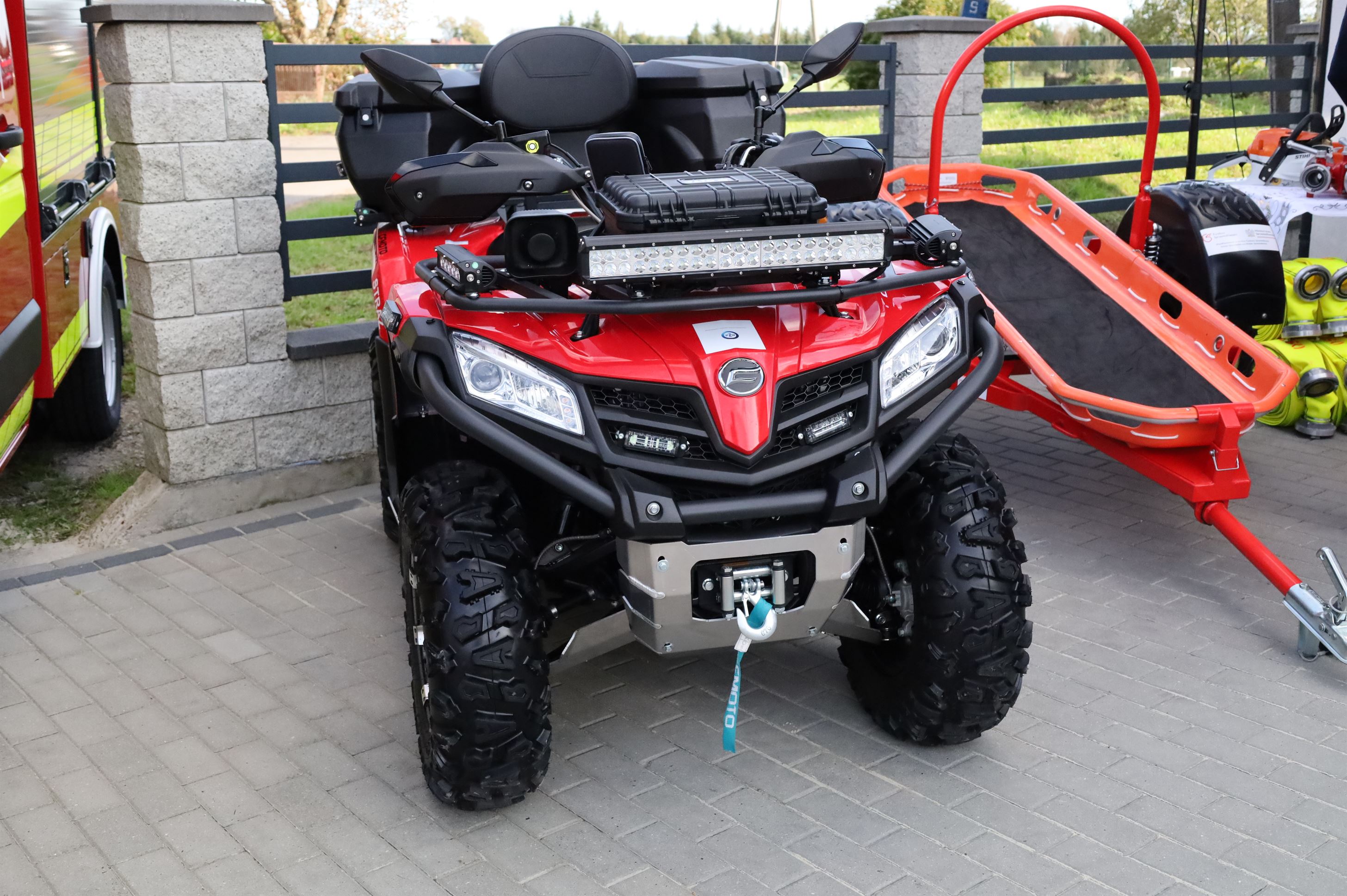 Pojazd typu Quad CF Moto 520L doposażony w kufer, sygnały świetlno-dźwiękowe, wyciągarkę, pług, radiostację, aluminiową osłonę podwozia, dwa kaski z intercom, oświetlenie pola pracy oraz przyczepkę ratowniczą z noszami koszowymi. Zakup quada wyniósł 50 000 zł. Dofinansowanie z Funduszu Prewencyjnego PZU to 20 000 zł. Wkład własny gminy to 30 000 zł. Zakup przyczepki ratowniczej o wartości 14 900 zł był możliwy dzięki dofinansowaniu z Funduszu Sprawiedliwości.