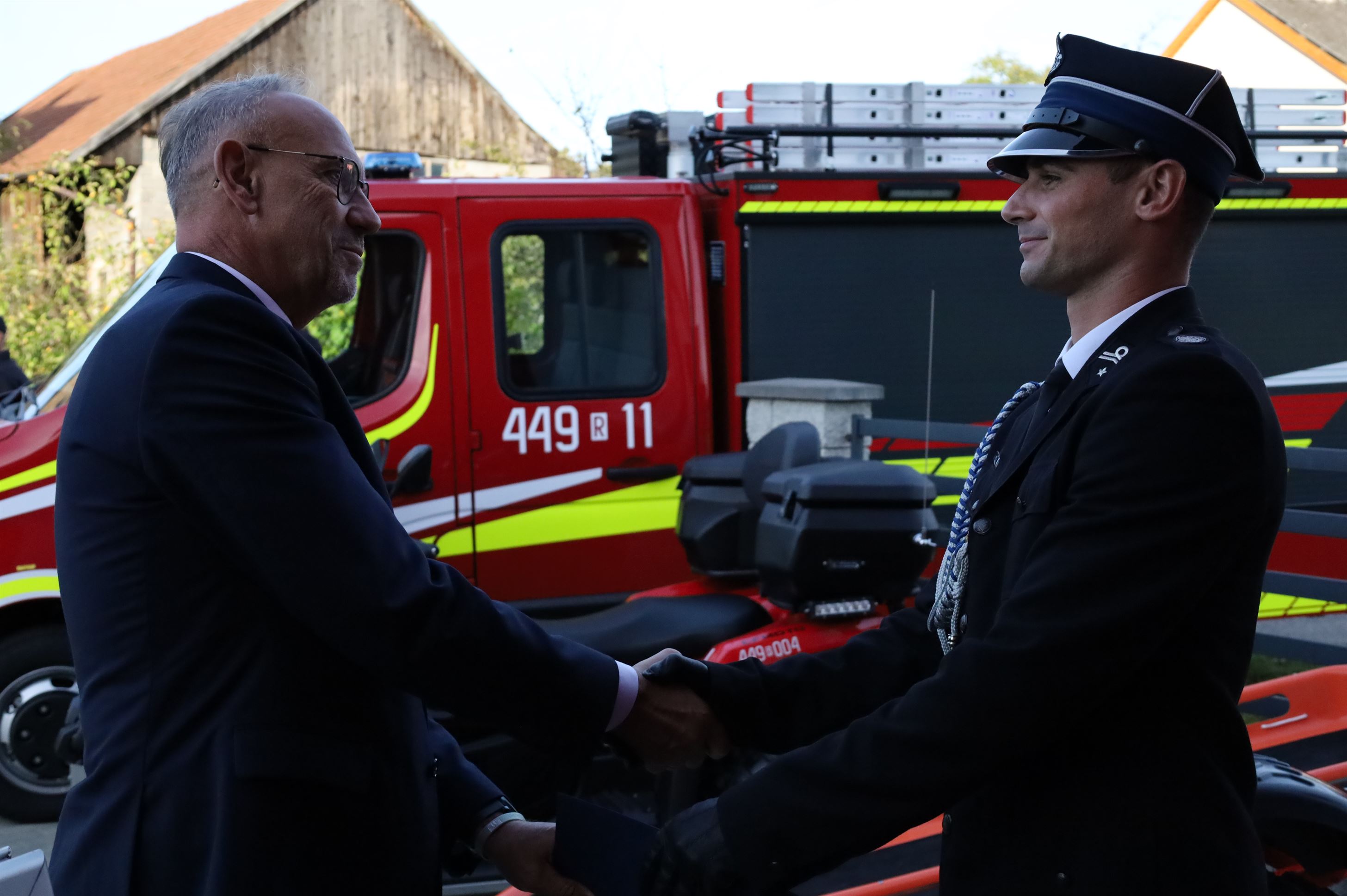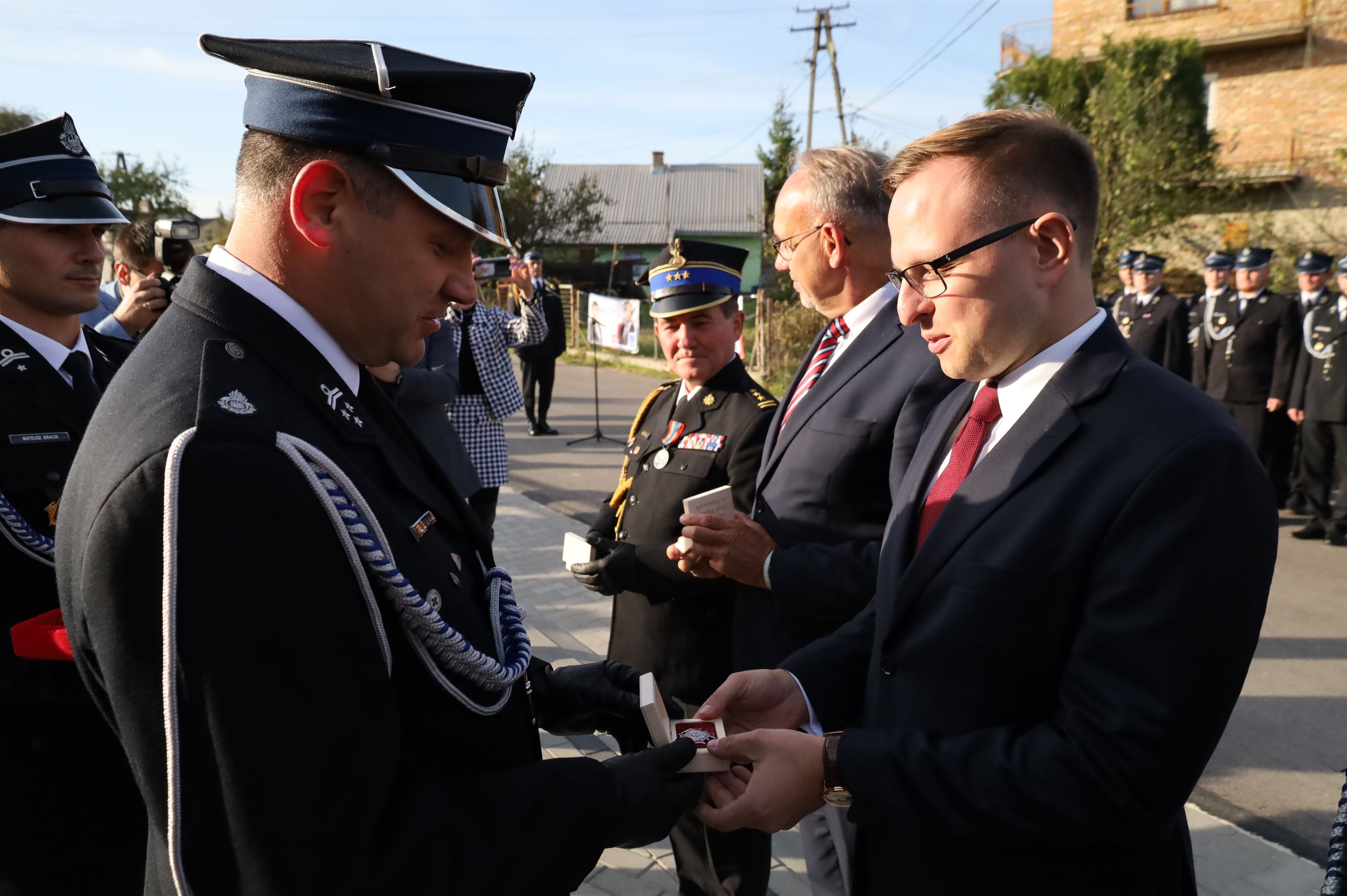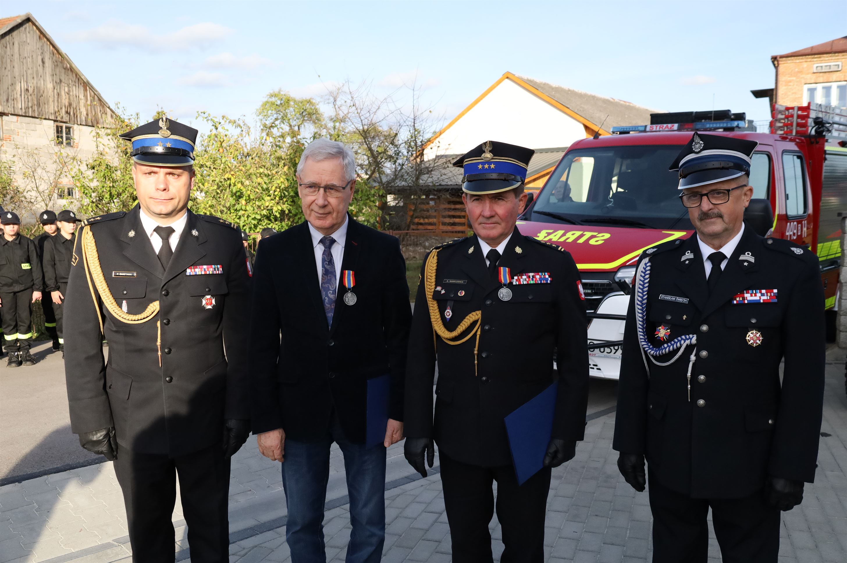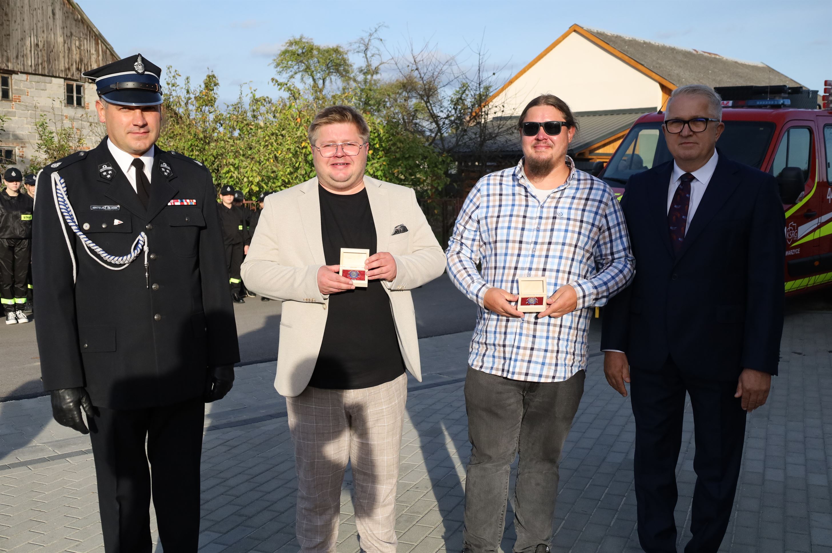 Wicestarosta jasielski Stanisław Pankiewicz oraz Zastępca Podkarpackiego Komendanta Wojewódzkiego PSP w Rzeszowie Andrzej Marczenia zostali uhonorowani odznaką „Za zasługi dla pożarnictwa powiatu jasielskiego”.