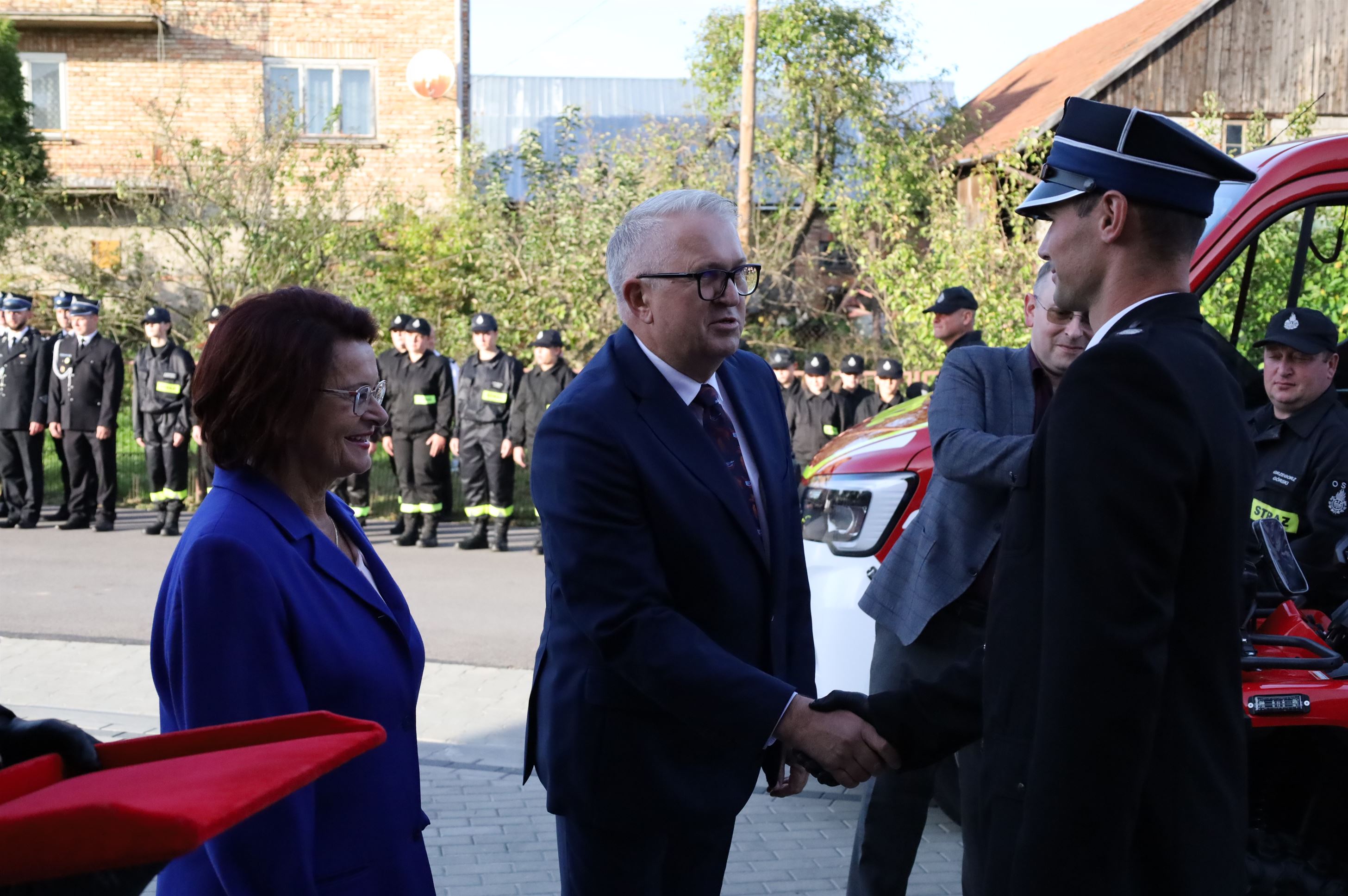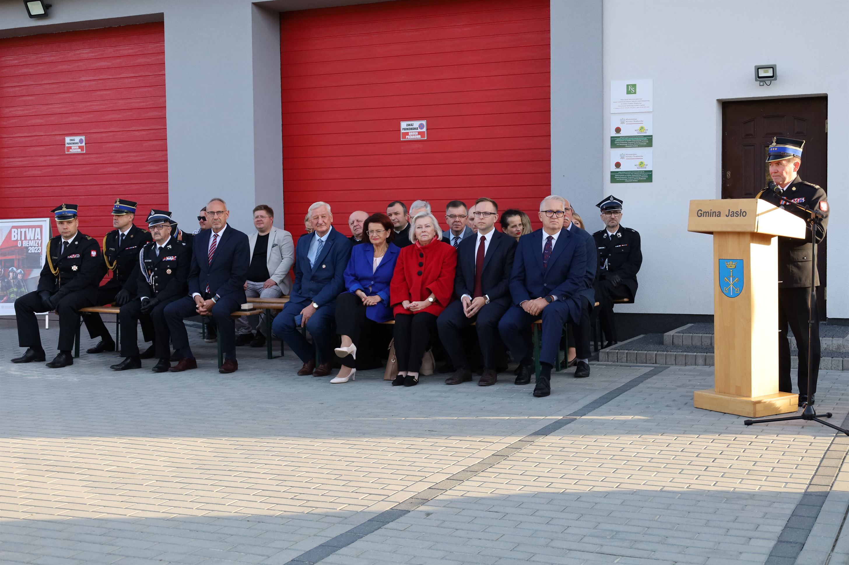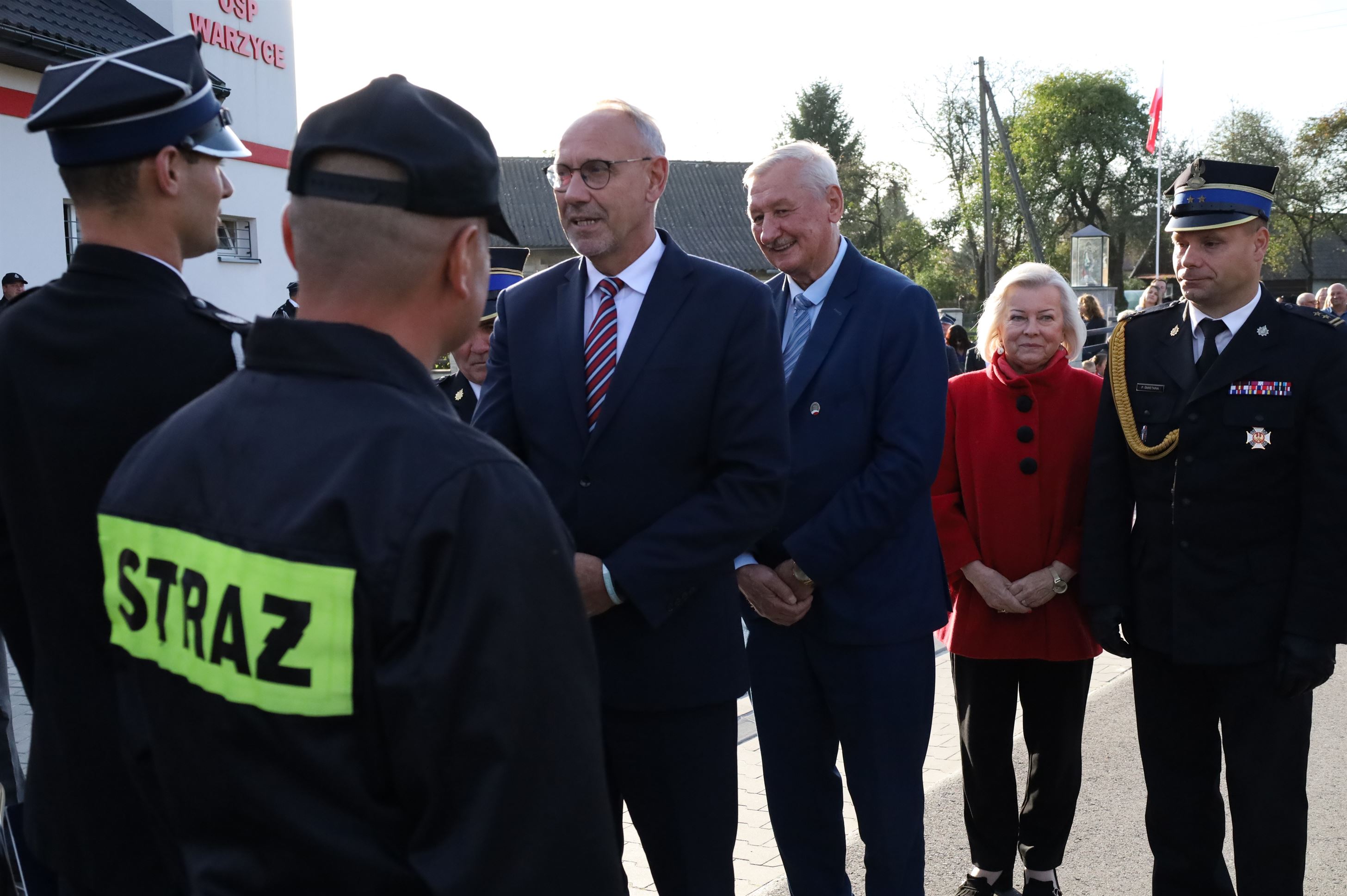 W oficjalnym przekazaniu sprzętu udział wzięli: Alicja Zając – Senator RP, Maria Kurowska – Poseł na Sejm RP, Piotr Rycerski – Szef Gabinetu Politycznego Ministra Aktywów Państwowych, Adam Pawluś – Starosta jasielski, Stanisław Pankiewicz – Wicestarosta jasielski, Andrzej Marczenia – Zastępca Podkarpackiego Komendanta Wojewódzkiego PSP w Rzeszowie, Adam Skiba – Prezes WFOŚiGW w Rzeszowie, Piotr Śmietana – Komendant Powiatowy PSP w Jaśle, Stanisław Święch – Prezes Zarządu Oddziału Powiatowego ZOSP RP w Jaśle, Wojciech Piękoś – Wójt Gminy Jasło, Małgorzata Dubiel – Sekretarz Gminy Jasło, Janusz Pawlik – Skarbnik Gminy Jasło, Józef Dziedzic – Przewodniczący Rady Gminy Jasło wraz z radnymi, ks. Wacław Rybka – Kapelan Strażaków OSP Gminy Jasło, ks. Daniel Kosiba – Proboszcz parafii Warzyce, ks. Mariusz Godek – Wikary parafii Warzyce, Piotr Ochwat – Dyrektor SP Warzyce, Joanna Duć-Acela – Dyrektor Gminnego Ośrodka Kultury w Jaśle oraz Małgorzata Jakubowska – Pracownik Gminnego Ośrodka Kultury w Jaśle.