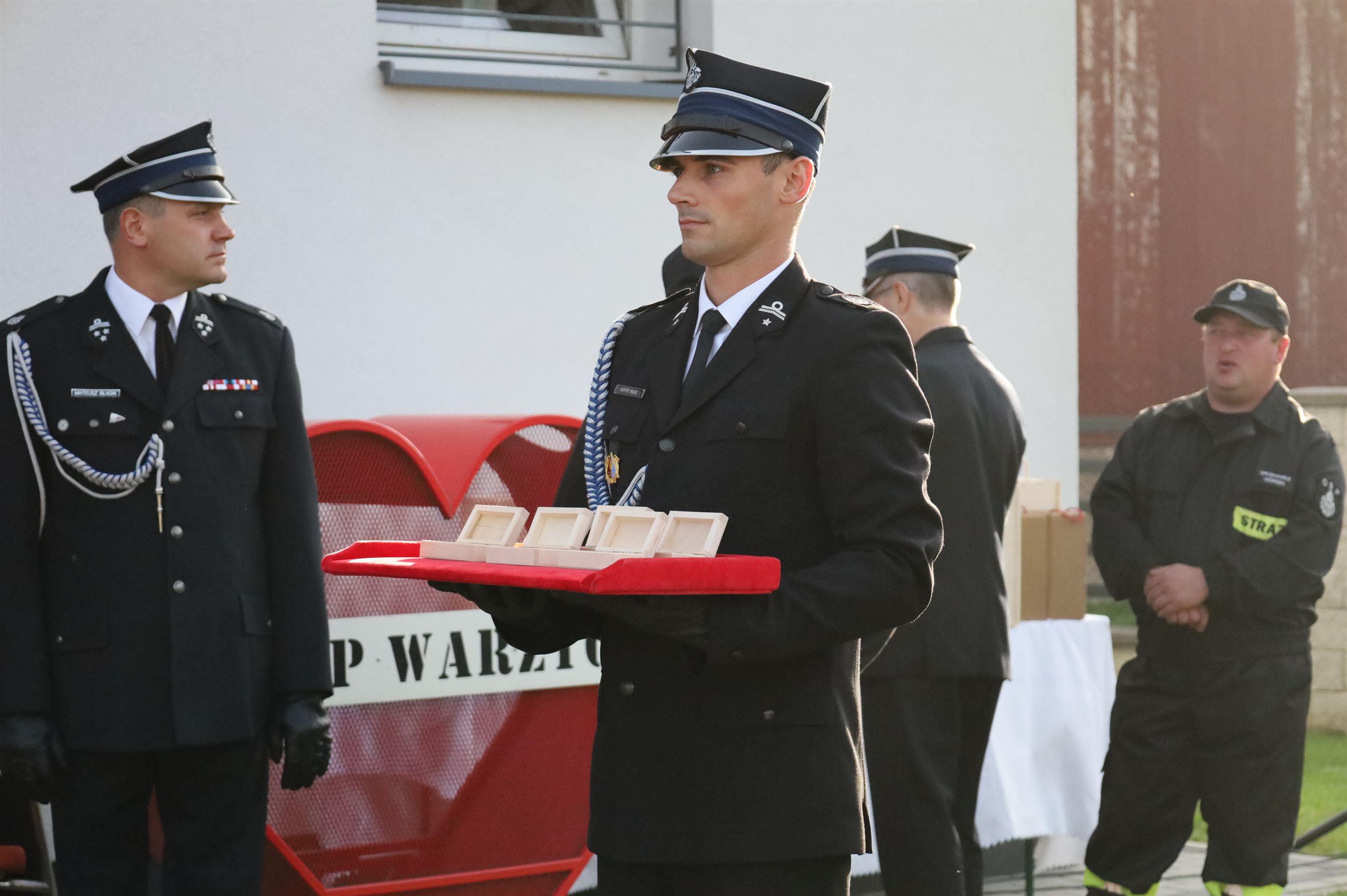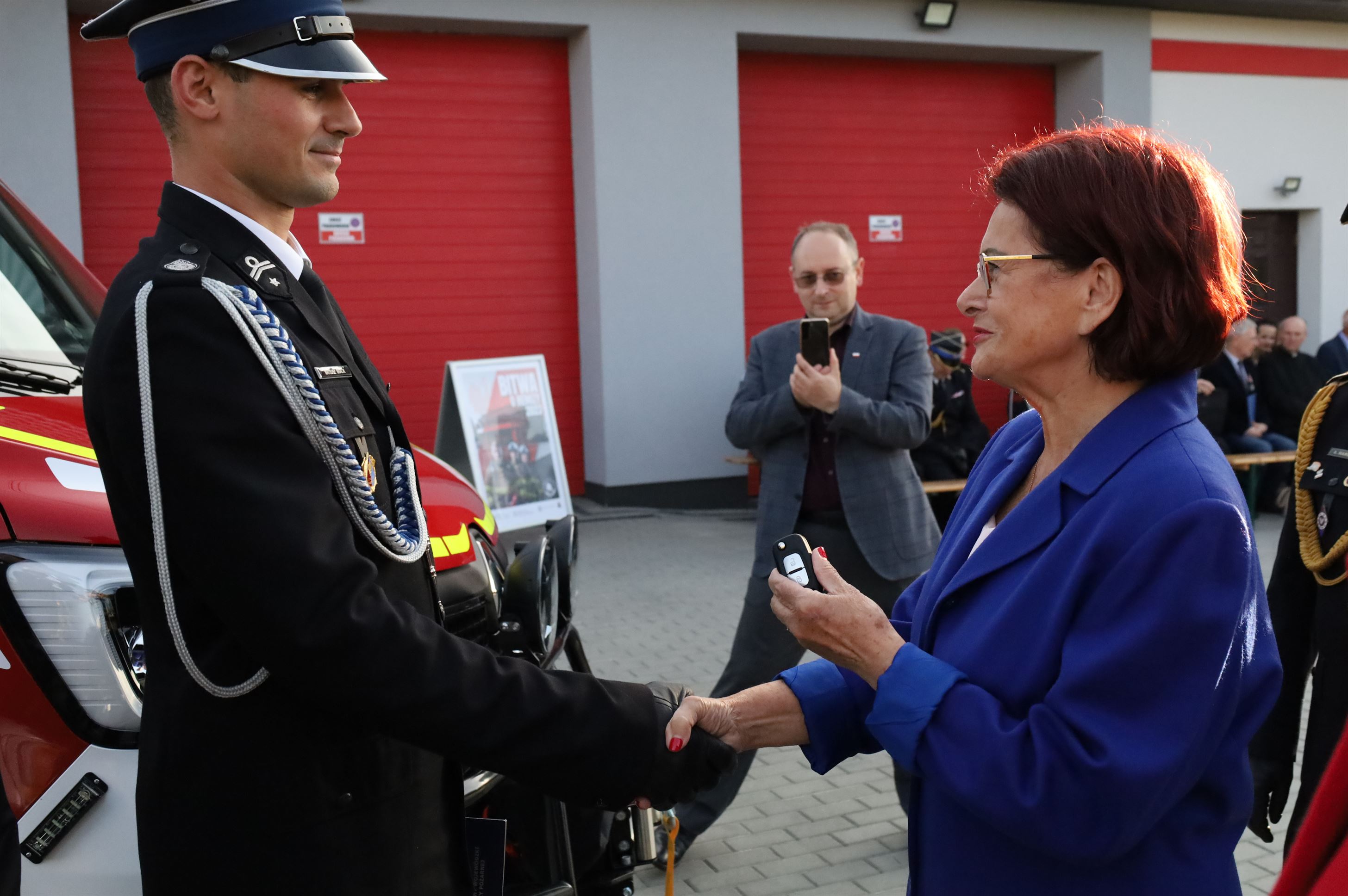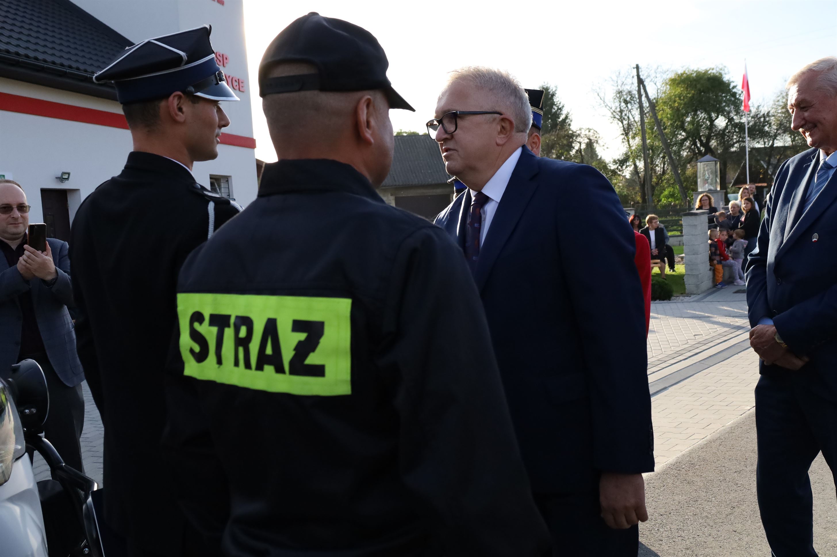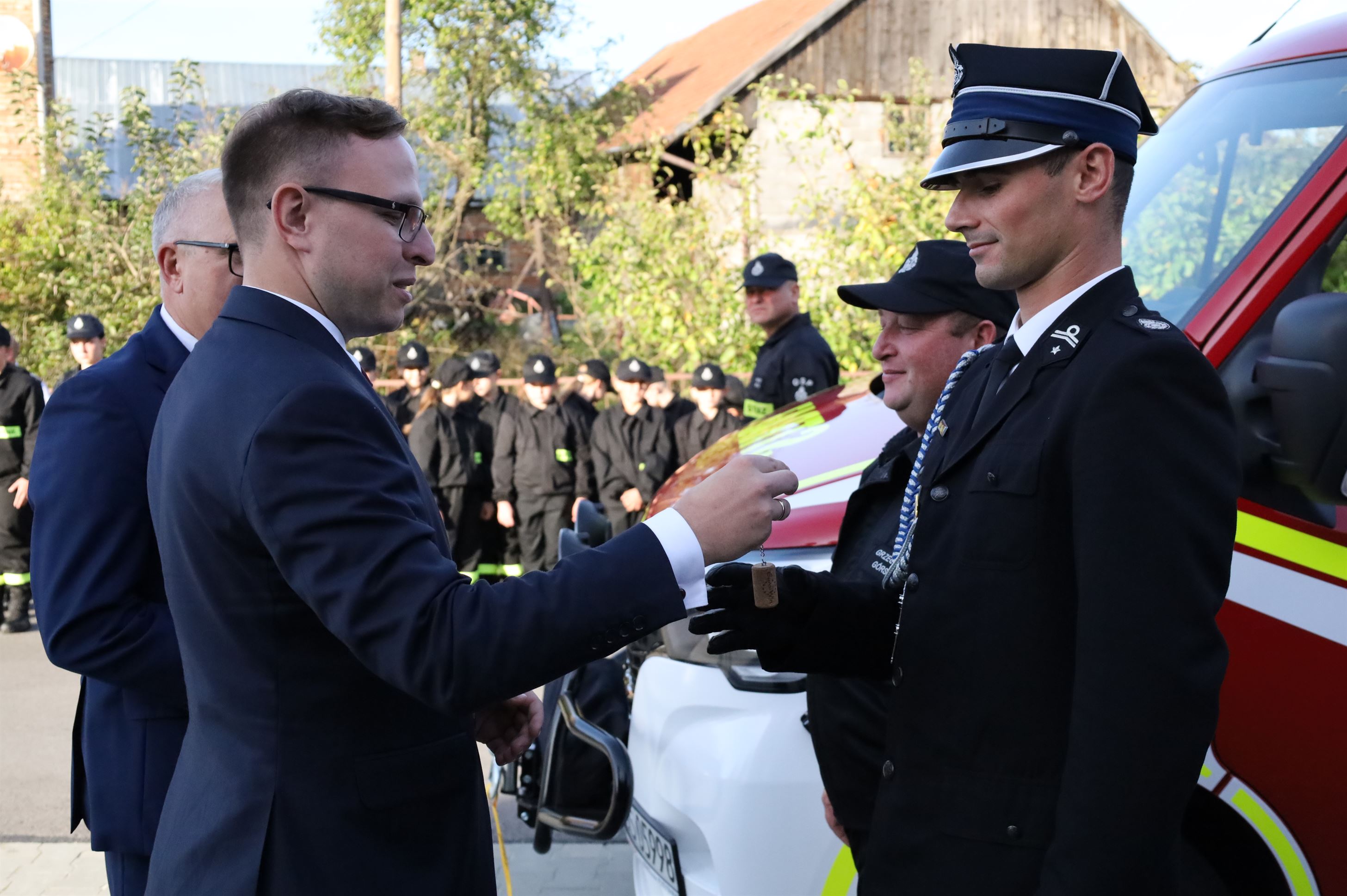W oficjalnym przekazaniu sprzętu udział wzięli: Alicja Zając – Senator RP, Maria Kurowska – Poseł na Sejm RP, Piotr Rycerski – Szef Gabinetu Politycznego Ministra Aktywów Państwowych, Adam Pawluś – Starosta jasielski, Stanisław Pankiewicz – Wicestarosta jasielski, Andrzej Marczenia – Zastępca Podkarpackiego Komendanta Wojewódzkiego PSP w Rzeszowie, Adam Skiba – Prezes WFOŚiGW w Rzeszowie, Piotr Śmietana – Komendant Powiatowy PSP w Jaśle, Stanisław Święch – Prezes Zarządu Oddziału Powiatowego ZOSP RP w Jaśle, Wojciech Piękoś – Wójt Gminy Jasło, Małgorzata Dubiel – Sekretarz Gminy Jasło, Janusz Pawlik – Skarbnik Gminy Jasło, Józef Dziedzic – Przewodniczący Rady Gminy Jasło wraz z radnymi, ks. Wacław Rybka – Kapelan Strażaków OSP Gminy Jasło, ks. Daniel Kosiba – Proboszcz parafii Warzyce, ks. Mariusz Godek – Wikary parafii Warzyce, Piotr Ochwat – Dyrektor SP Warzyce, Joanna Duć-Acela – Dyrektor Gminnego Ośrodka Kultury w Jaśle oraz Małgorzata Jakubowska – Pracownik Gminnego Ośrodka Kultury w Jaśle.
