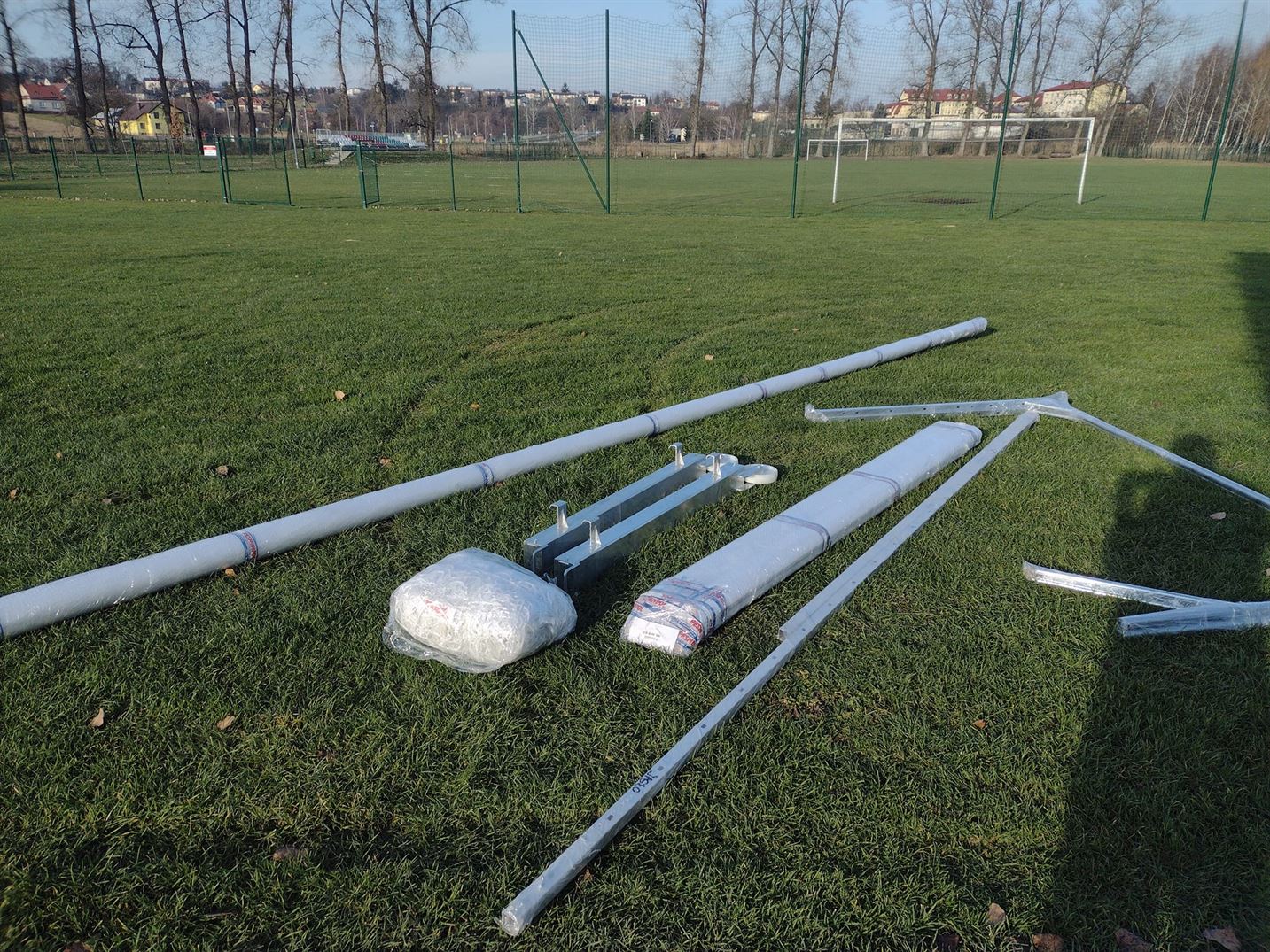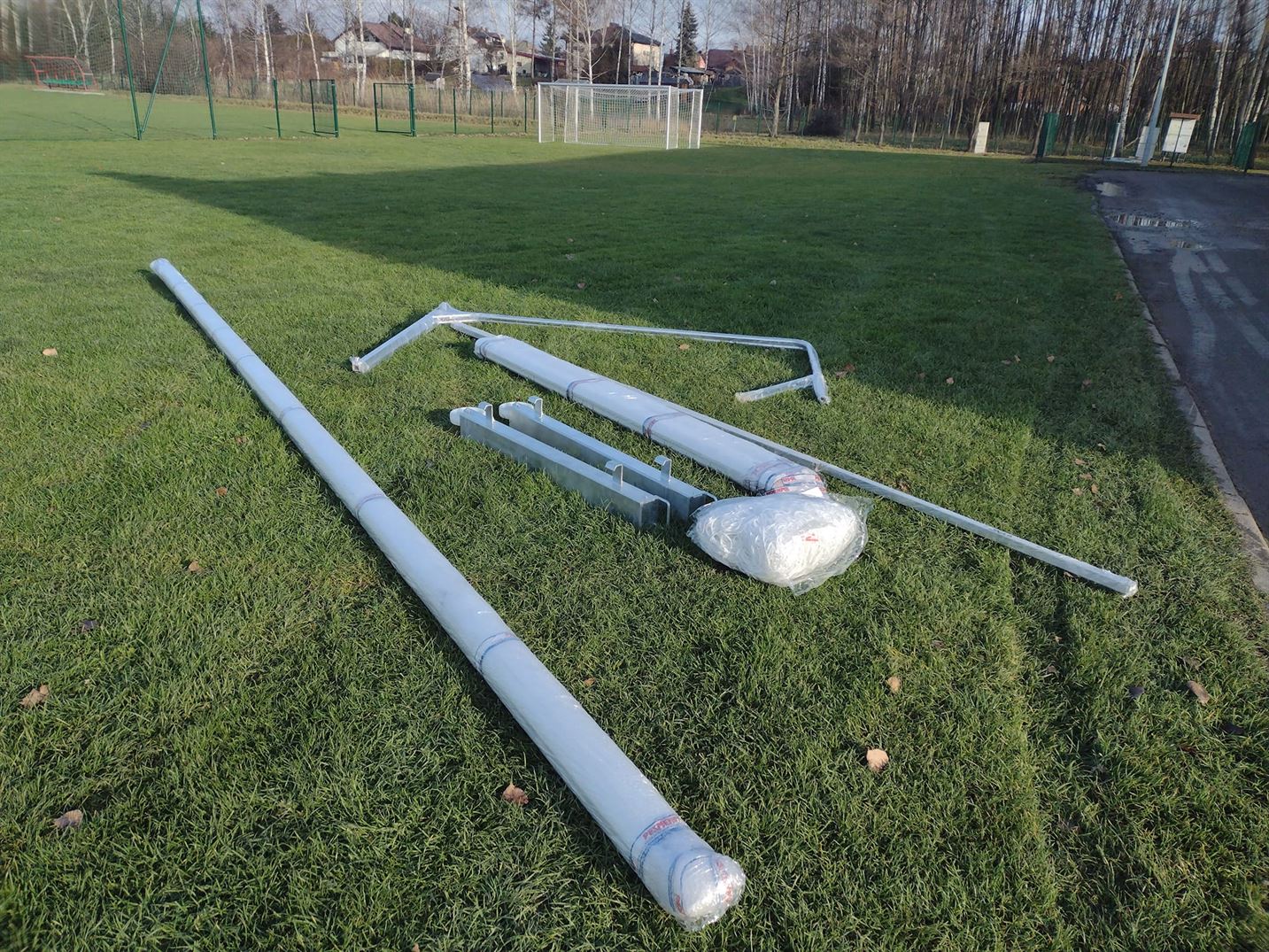 OKS Sobniów zainwestował w przenośną bramkę do piłki nożnej z siatką i obciążnikiem na kółkach.