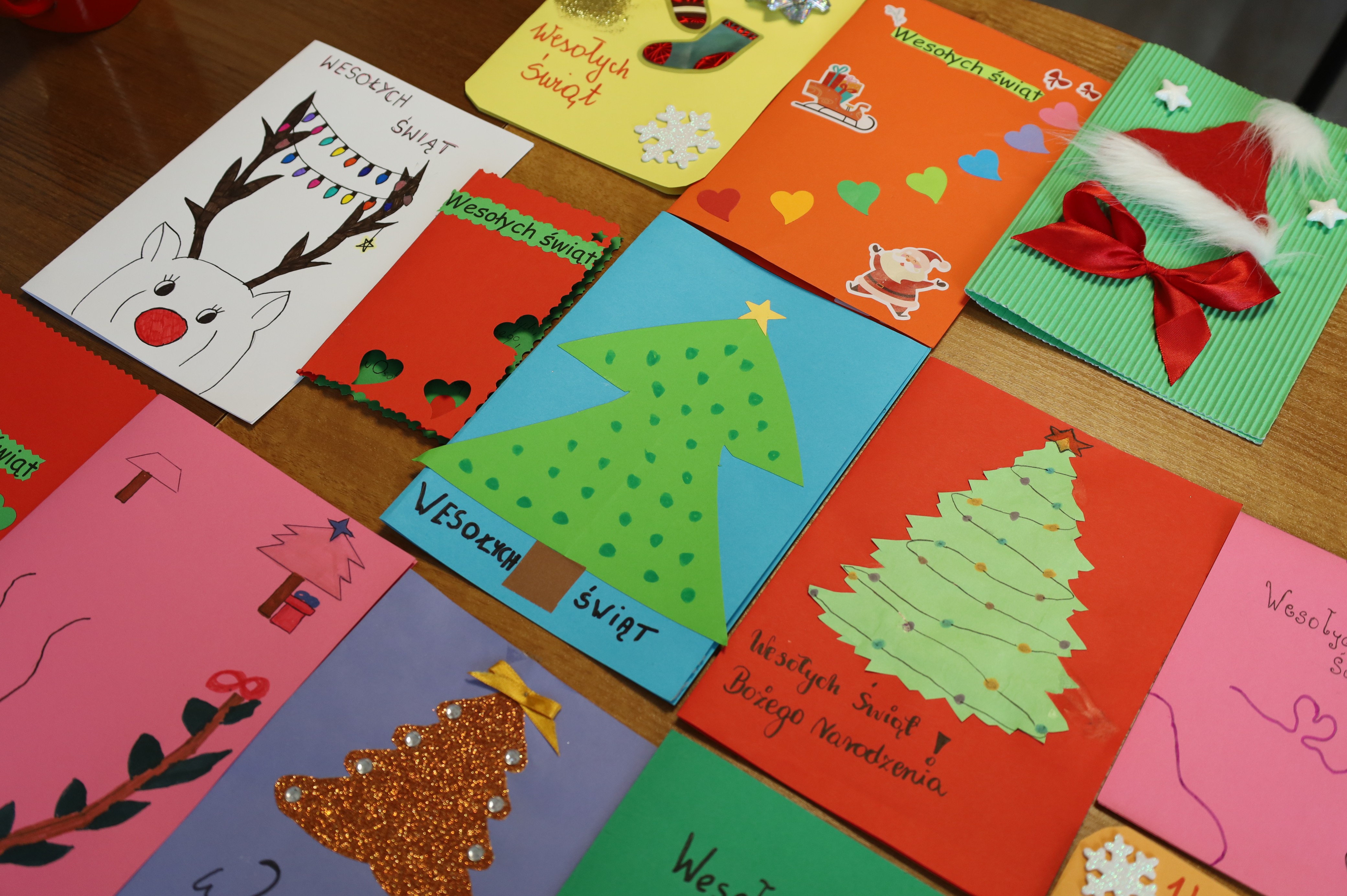 - kartki świąteczne wykonane przez uczniów Szkoły Podstawowej nr 1 w Osobnicy,