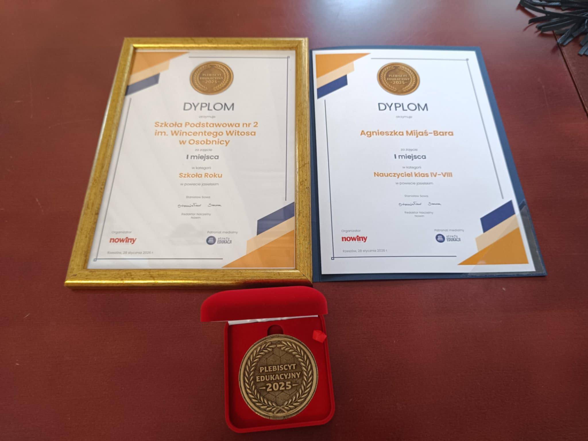 Szkoła Podstawowa Nr 2 w Osobnicy zdobyła I miejsce w Plebiscycie Edukacyjnym 2025, uzyskując tytuł Szkoły Roku w powiecie jasielskim. Jednocześnie Pani Agnieszka Mijaś-Bara została uhonorowana tytułem Nauczyciela Roku klas IV–VIII w powiecie jasielskim. Wyróżnienie to stanowi wyraz uznania dla jej pasji, profesjonalizmu oraz ogromnego zaangażowania wkładanego w codzienną pracę z uczniami.
