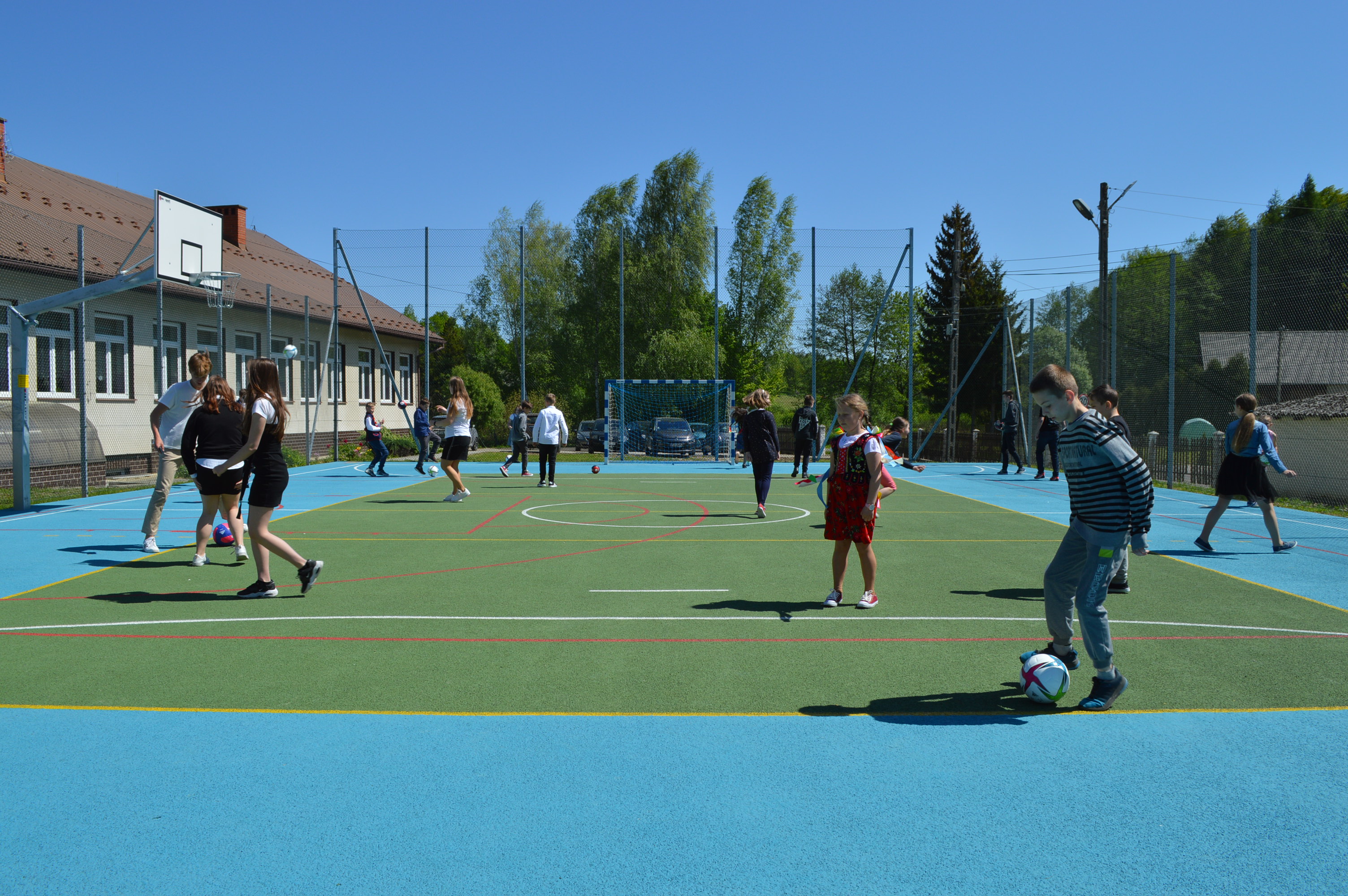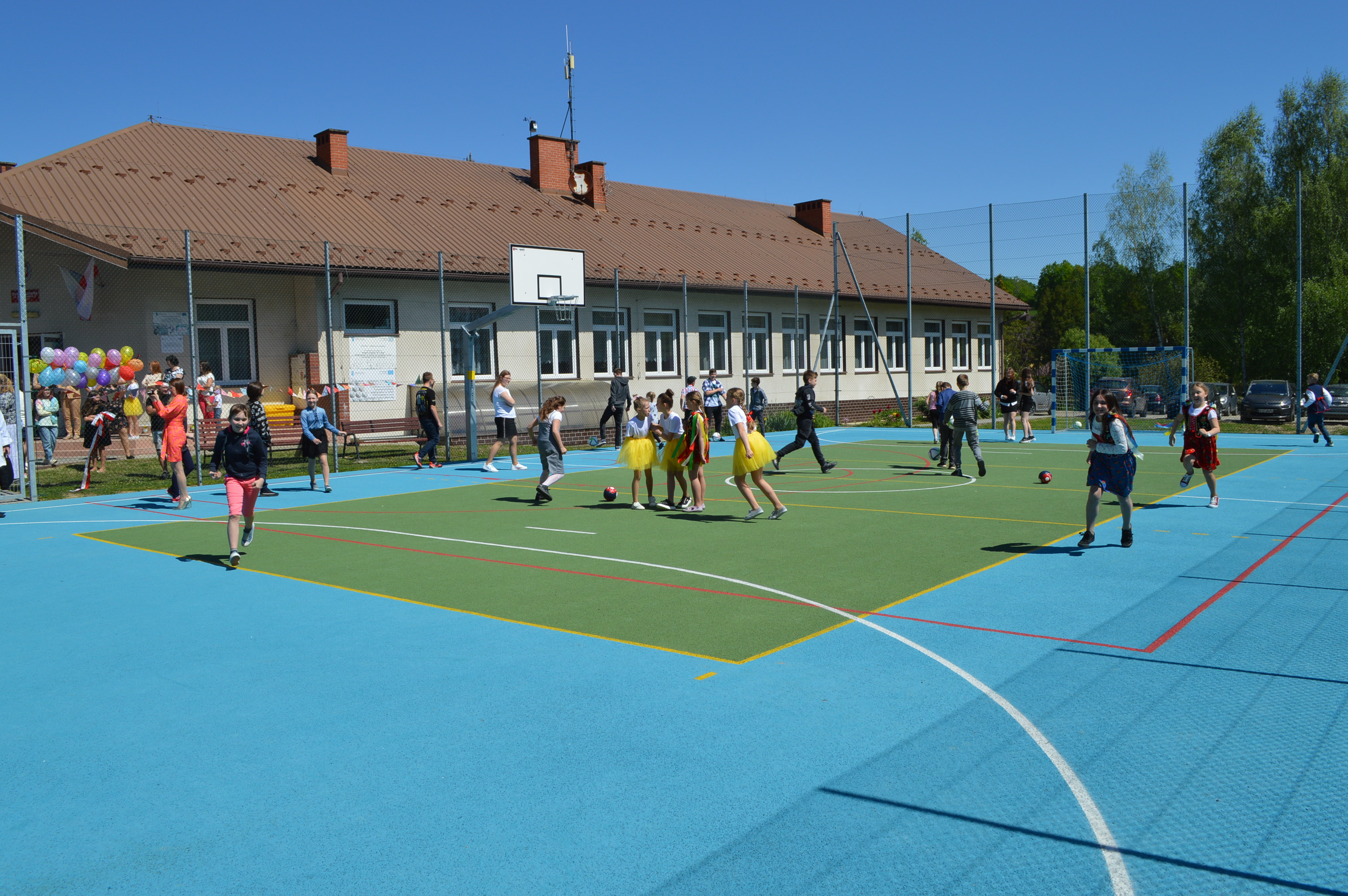 Otwarcie powyższego obiektu sportowego umożliwi nie tylko uczniom Szkoły, ale również lokalnej społeczności uprawianie wielu dyscyplin sportowych m.in. piłki nożnej i ręcznej, siatkówki oraz koszykówki.
