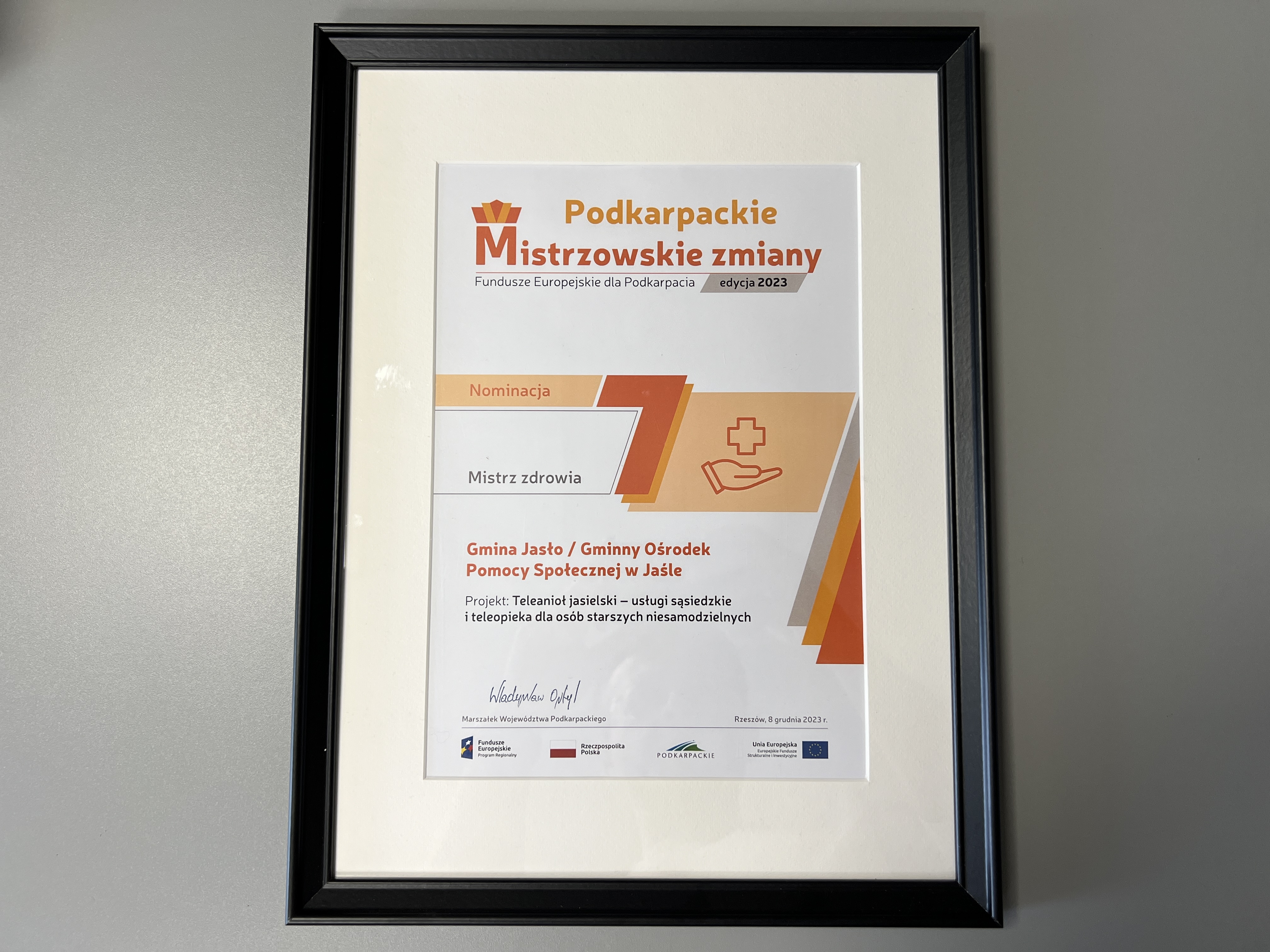 Gminny Ośrodek Pomocy Społecznej w Jaśle wyróżniony za Projekt „Teleanioł jasielski – usługi sąsiedzkie i teleopieka dla osób starszych niesamodzielnych”.