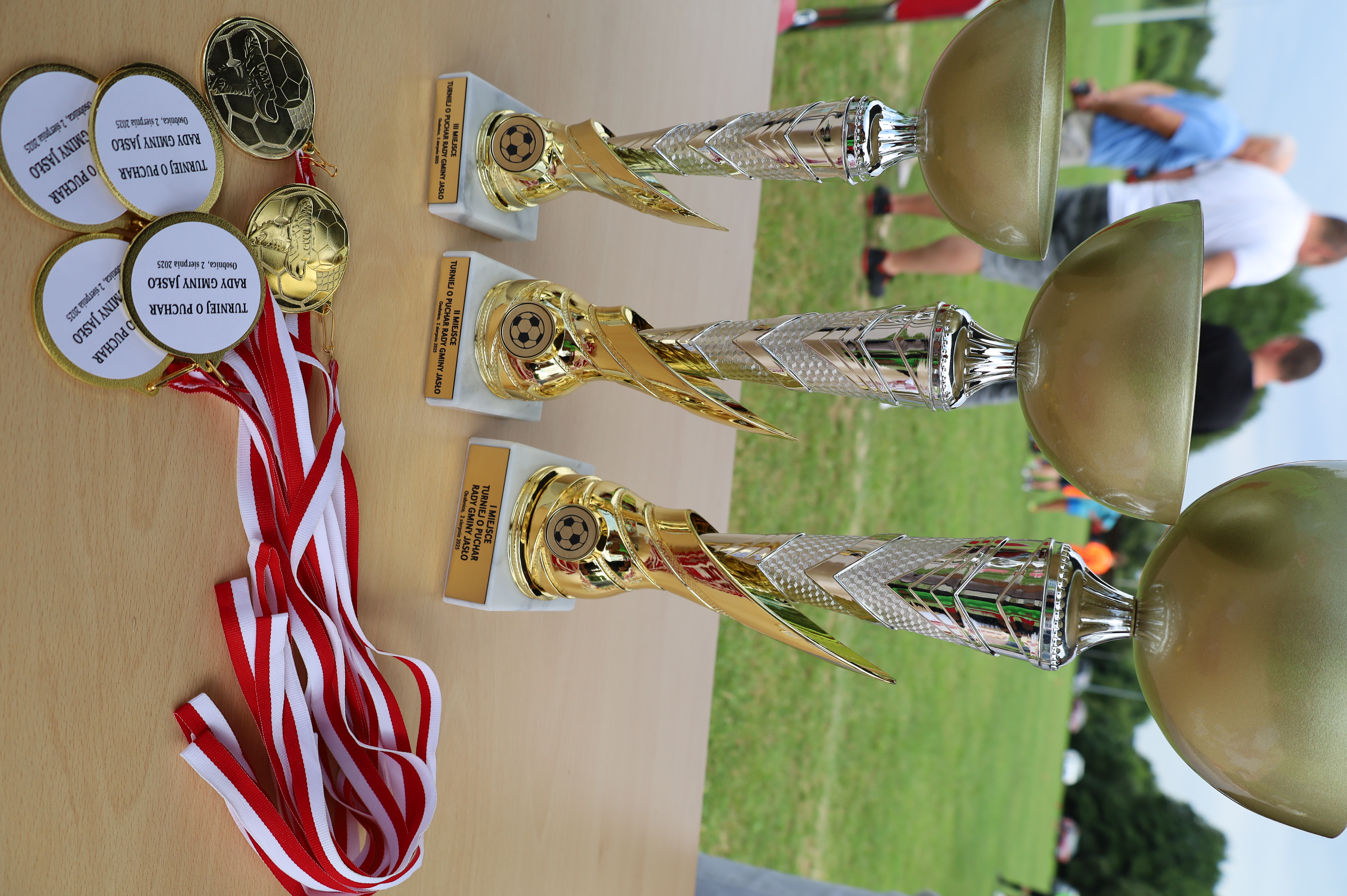 Pamiątkowe medale dla wszystkich zawodników wręczyli Radni Rady Gminy Jasło. Puchar zwycięzcom wręczył Przewodniczący Rady Gminy Jasło Krzysztof Brągiel.