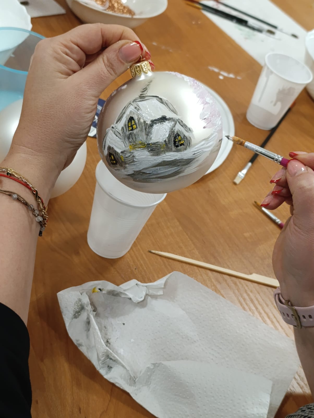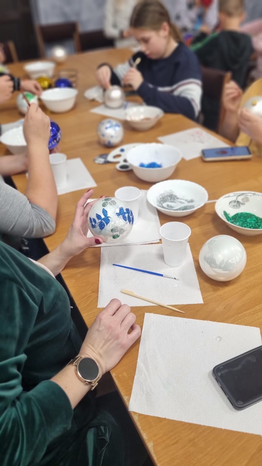 Warsztaty zdobienia bombek choinkowych w Szebniach